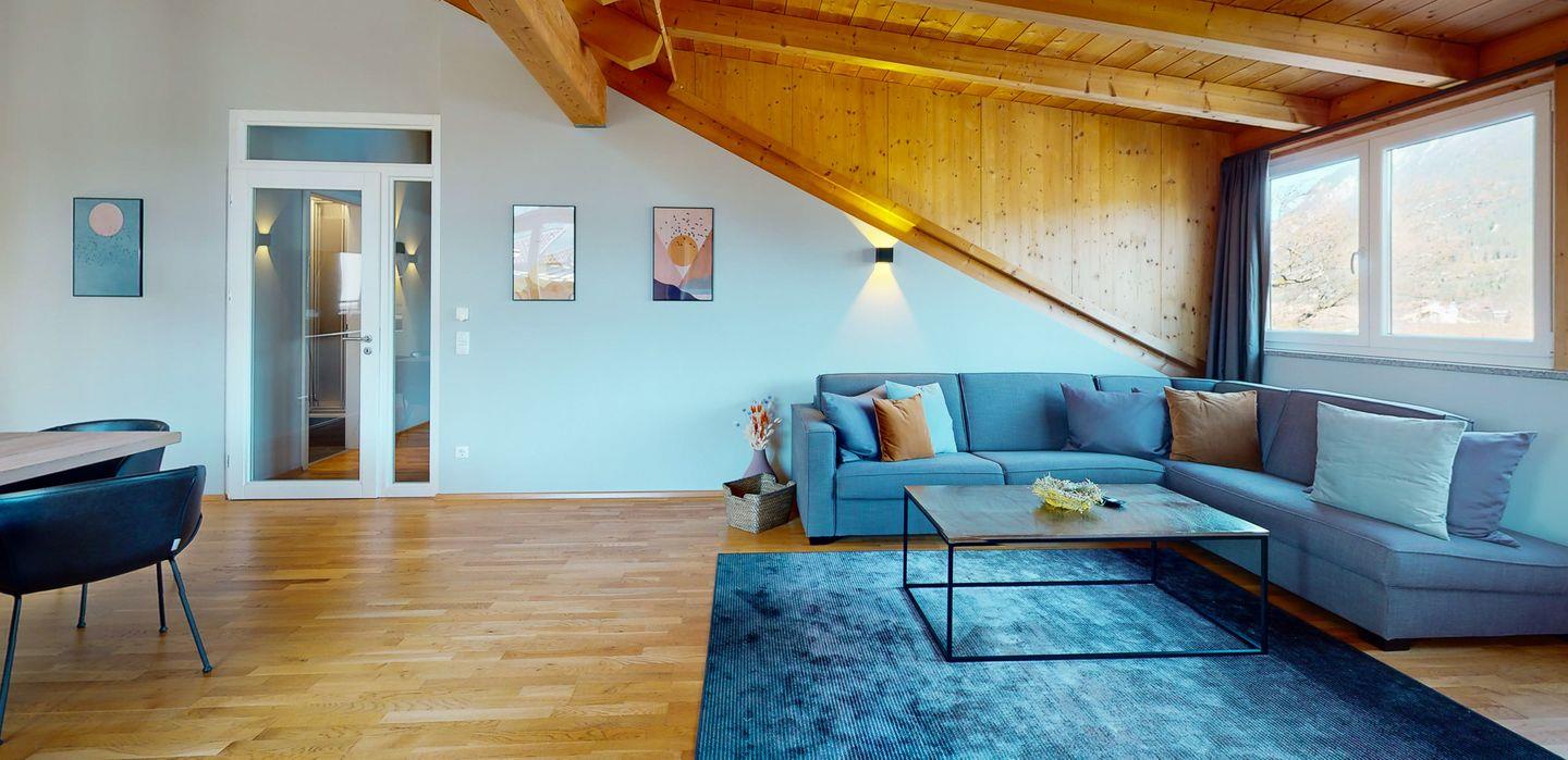 Nach einem ereignisreichen Tag in den Bergen können Sie sich in der Wohnung "Weitsicht.Lodge" zurücklehnen und den Blick auf die majestätischen Gipfel der Alpen genießen. Ob auf dem Balkon oder in der gemütlichen Wohnzimmer-Ecke - hier können Sie die Eindrücke des Tages Revue passieren lassen und sich auf weitere unvergessliche Erlebnisse freuen.
