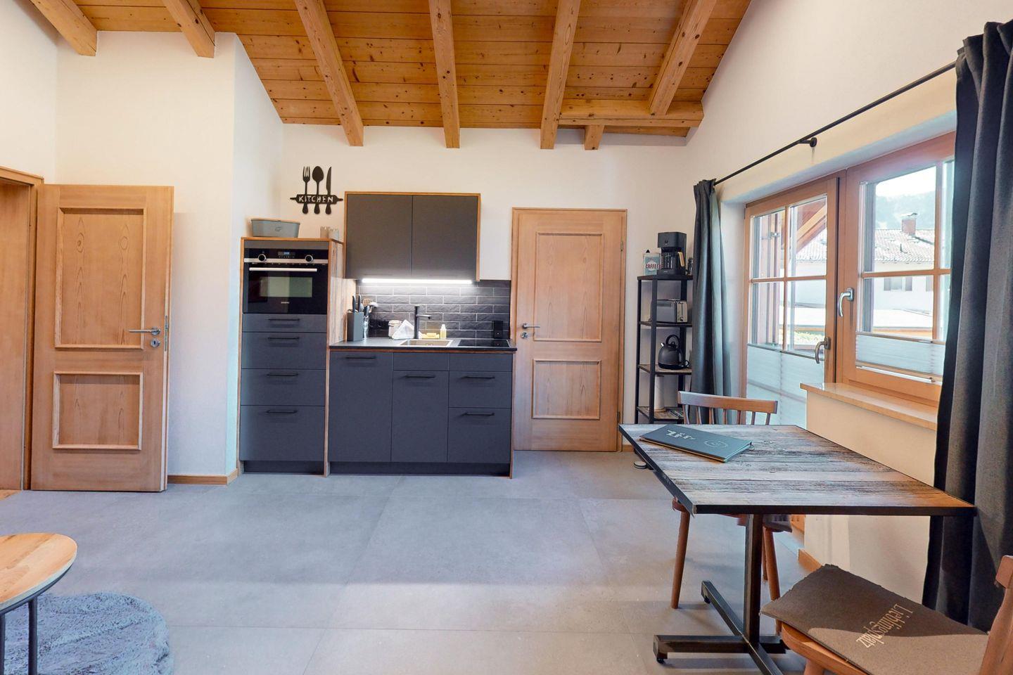 Willkommen in der Ferienwohnung “Hoamat 7” – der perfekte Ort für alle, die im Urlaub eine zweite Heimat mit modernem Charme und Gemütlichkeit in den bayerischen Alpen suchen. Diese helle, einladende Wohnung vereint hochwertige, gekonnt schlichte Einrichtung, mit viel natürlichem Holz und klaren, modernen Linien, was für eine elegante und angenehm warme Atmosphäre sorgt.