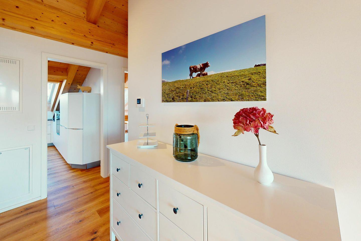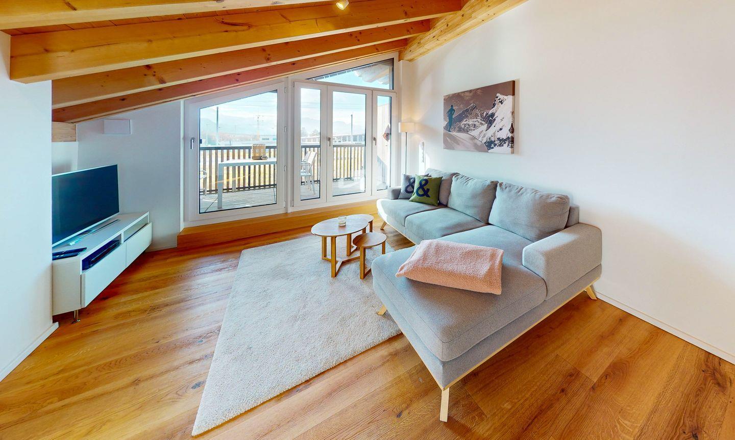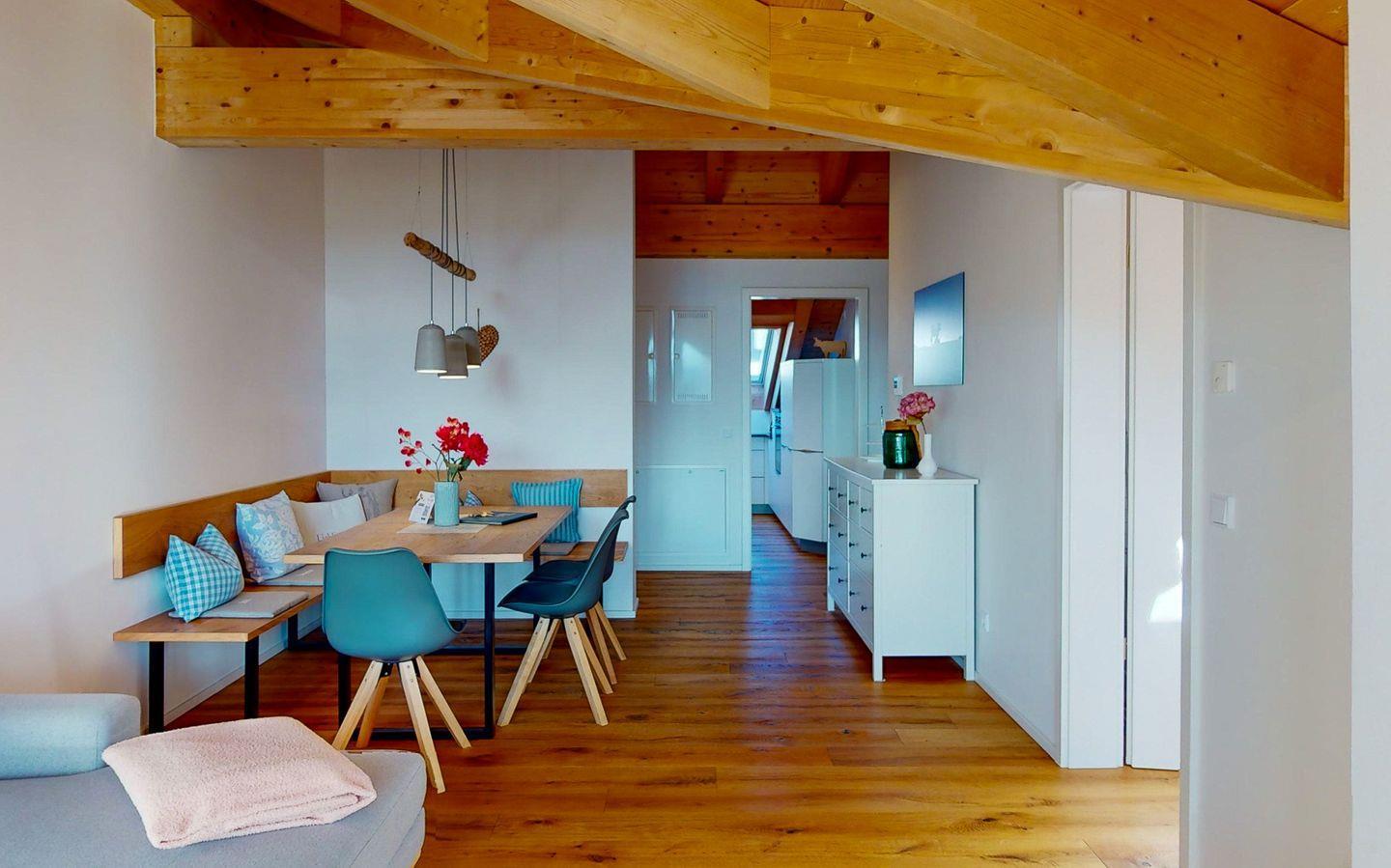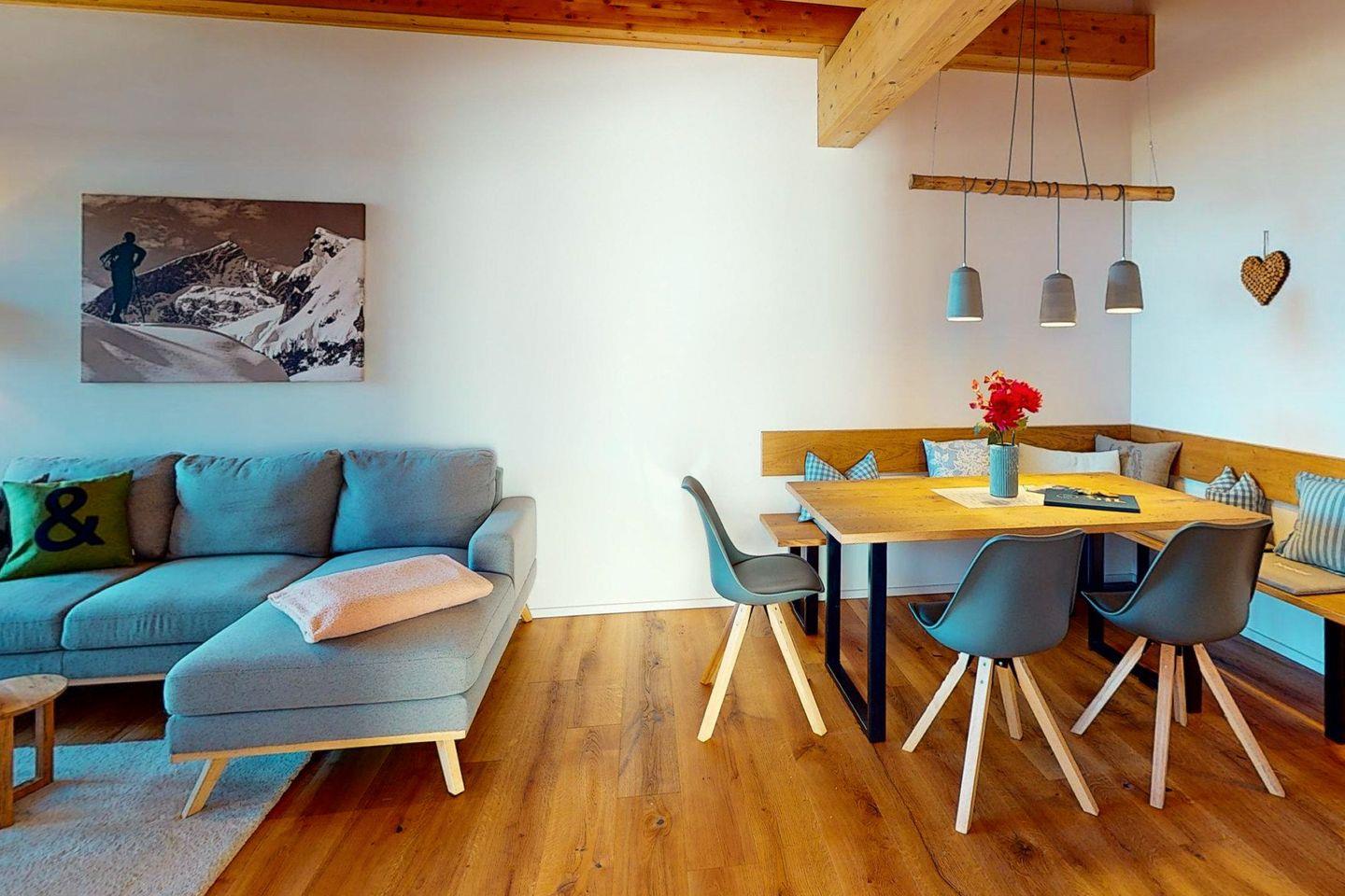 Die stilvolle, zugleich schlichte Einrichtung schafft eine ruhige Atmosphäre – ein Zuhause auf Zeit, das den Charakter der Berge in sich trägt.