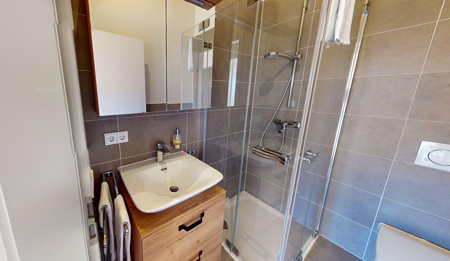 Die Wohnung bietet Platz für bis zu vier Gäste und zwei gemütliche Schlafzimmer. Besonders im ersten Schlafzimmer erwartet Sie ein echtes Highlight: ein liebevoll selbstgeschreinertes Doppelbett aus Zirbenholz. Der feine, natürliche Duft dieses Holzes verbreitet Ruhe und Geborgenheit, verbessert nachweislich die Schlafqualität und sorgt für ein ausgeglichenes Raumklima. Studien belegen, dass Zirbenholz die Herzfrequenz senkt, Stress reduziert und die Regeneration im Schlaf fördert – perfekt auch für alle, die im Urlaub wirklich abschalten möchten.