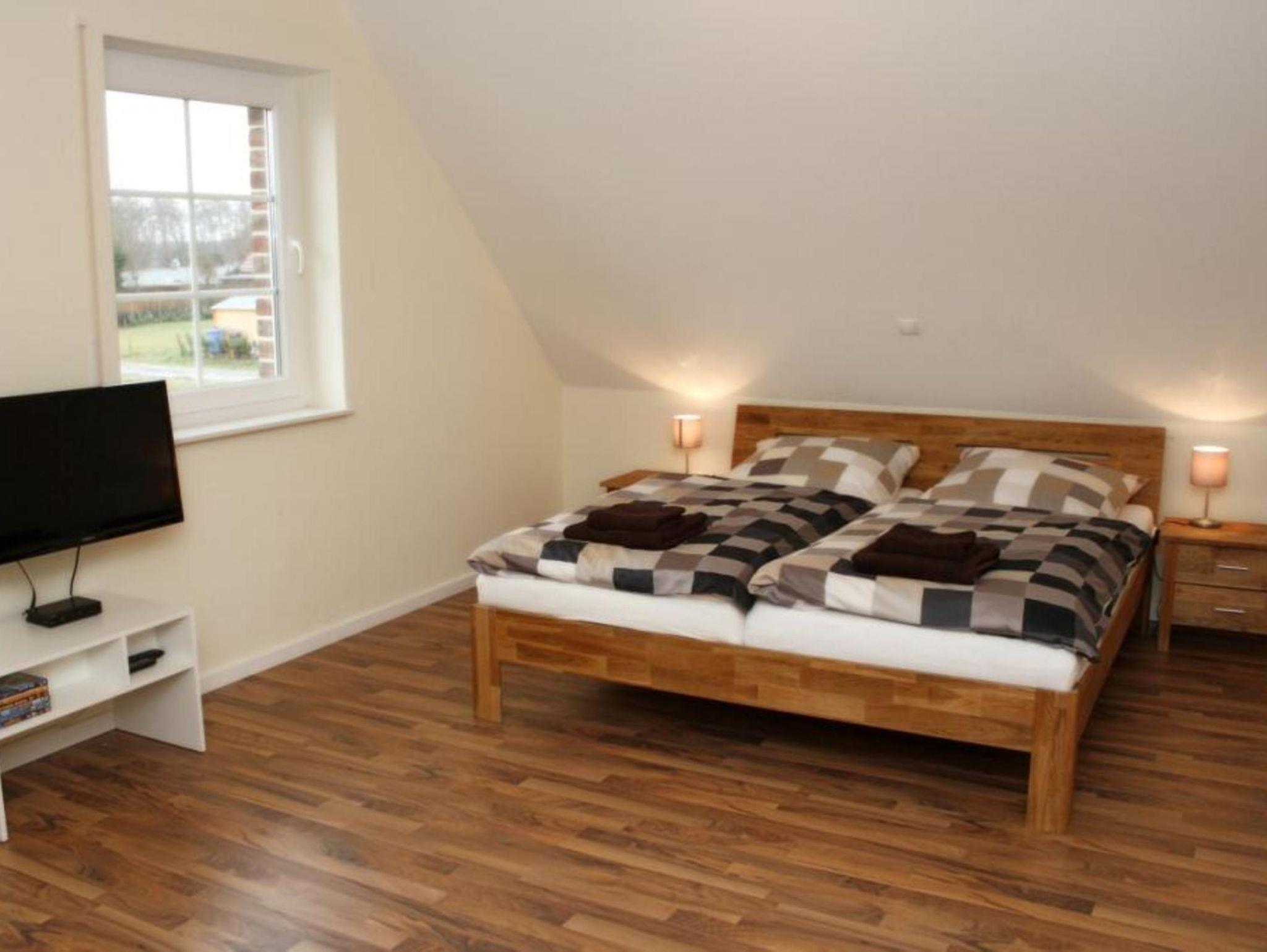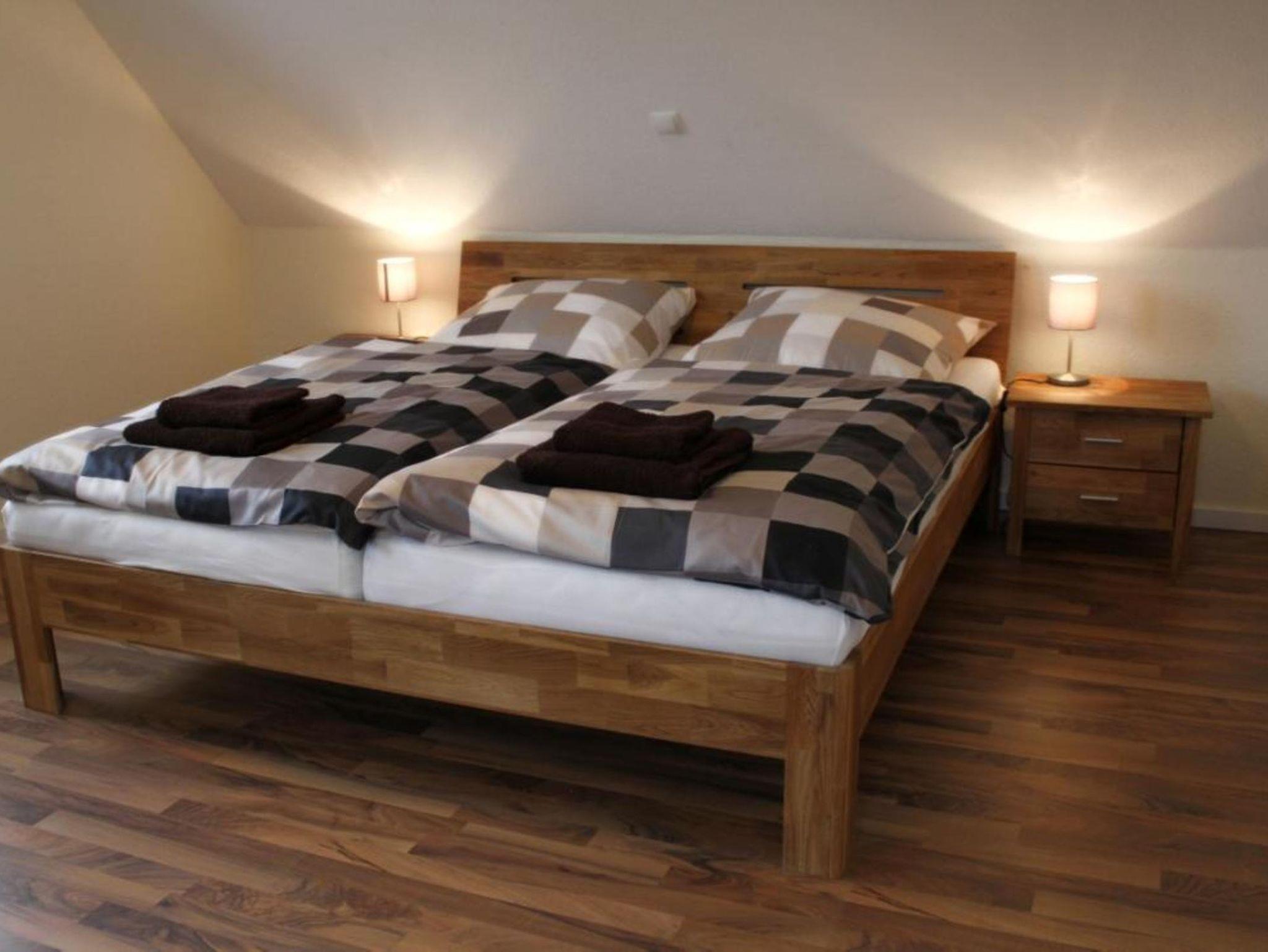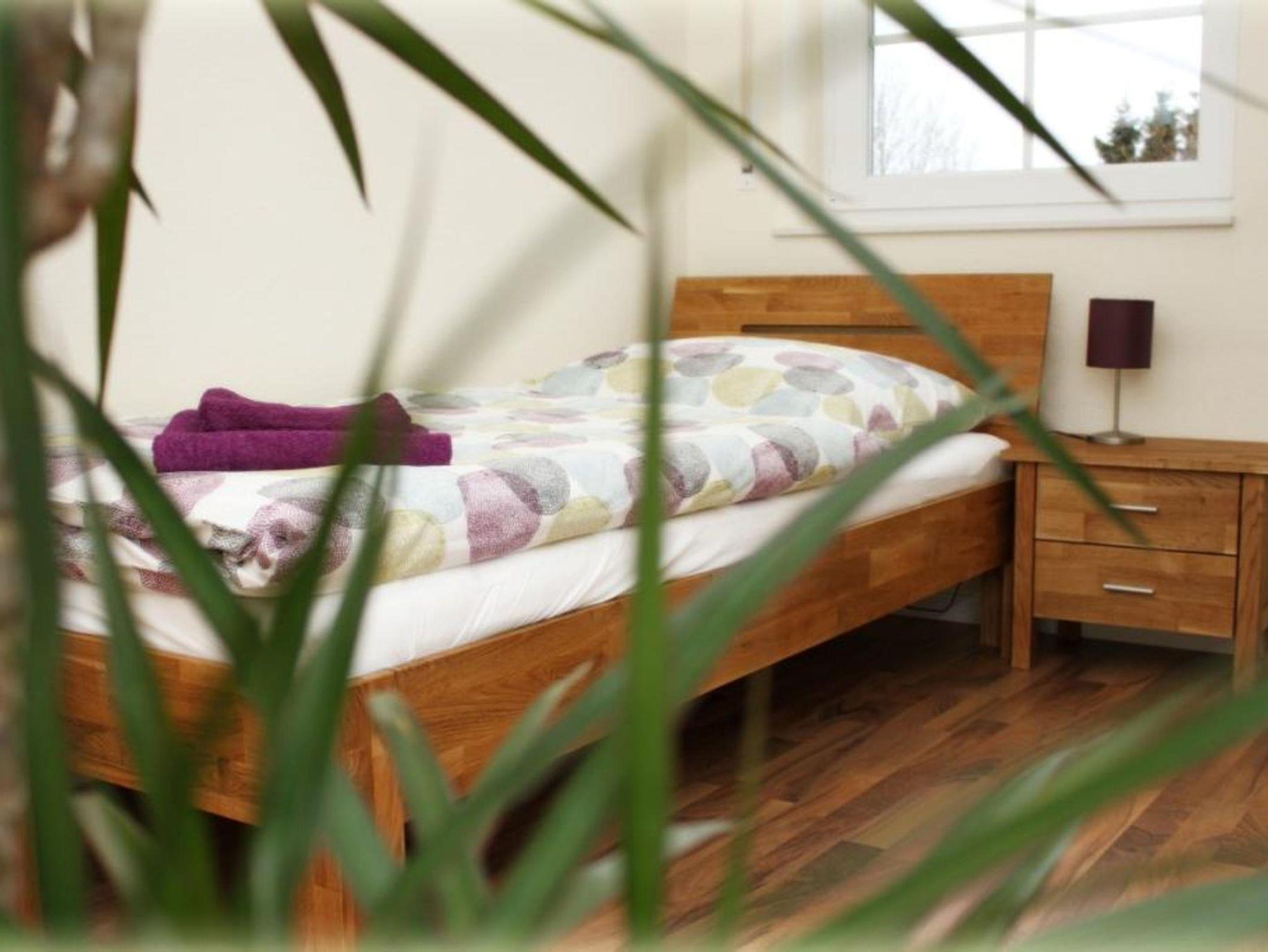 Das Ferienhaus verfügt über sechs Schlafplätze verteilt auf vier Schlafzimmer (zwei Doppelzimmer (je ein Doppelbett mit den Maßen 1,80 m x 2,00 m), zwei Einzelzimmer (je ein Bett mit den Maßen 1,40 m x 2,00 m bzw. 0,90 m x 2,00 m)). Bei Bedarf kann ein Babybett zur Verfügung gestellt werden. Darüber hinaus gibt es zwei Badezimmer, eines im Erdgeschoss und eines im Obergeschoss. Diese sind jeweils mit einer Dusche, Toilette und Waschbecken ausgestattet. Eine Waschmaschine sowie ein Wäscheständer sind ebenfalls vorhanden. Der offene Wohn- und Essbereich ist mit einer modernen Küchenzeile (E-Herd, Spülmaschine, Mikrowelle, Kaffeemaschine, Wasserkocher und Toaster) und einem Esstisch für sechs Personen ausgestattet. Bei Bedarf wird ein Kinderhochstuhl zur Verfügung gestellt. Ebenfalls befindet sich im Wohn- und Essbereich eine Sofaecke, ein Kaminofen sowie ein Flachbildfernseher und eine Wii-Spielekonsole. Ein weiterer Flachbildfernseher befindet sich im Obergeschoss, im Doppelschlafzimmer. Das gesamte Ferienhaus ist mit einer Fußbodenheizung sowie mit WLAN ausgestattet. Ebenso ist das gesamte Haus mit Außenrollläden und z.T. auch Plissees ausgestattet.