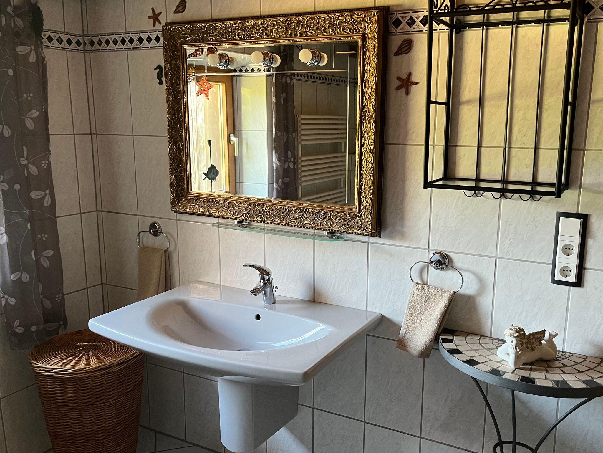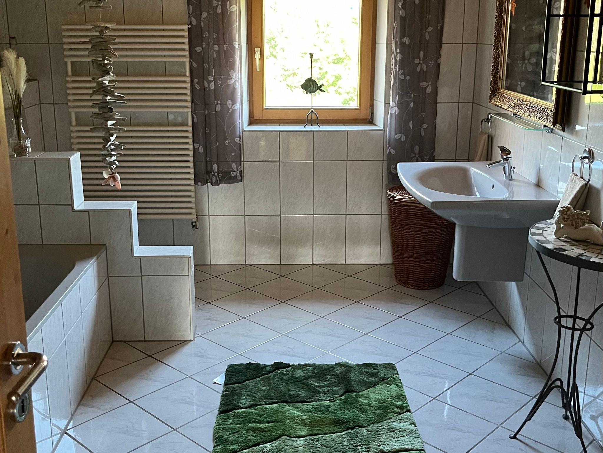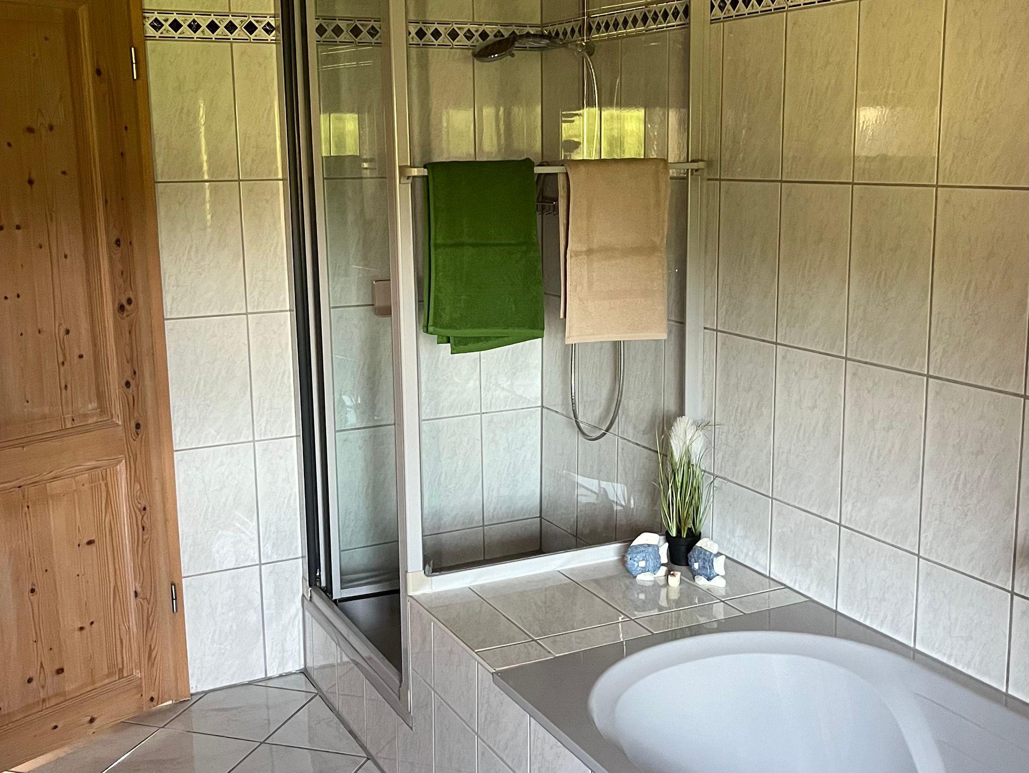 Im Badezimmer verfügen Sie über ein WC, ein Waschbecken, einer Dusche und einer Badewanne.