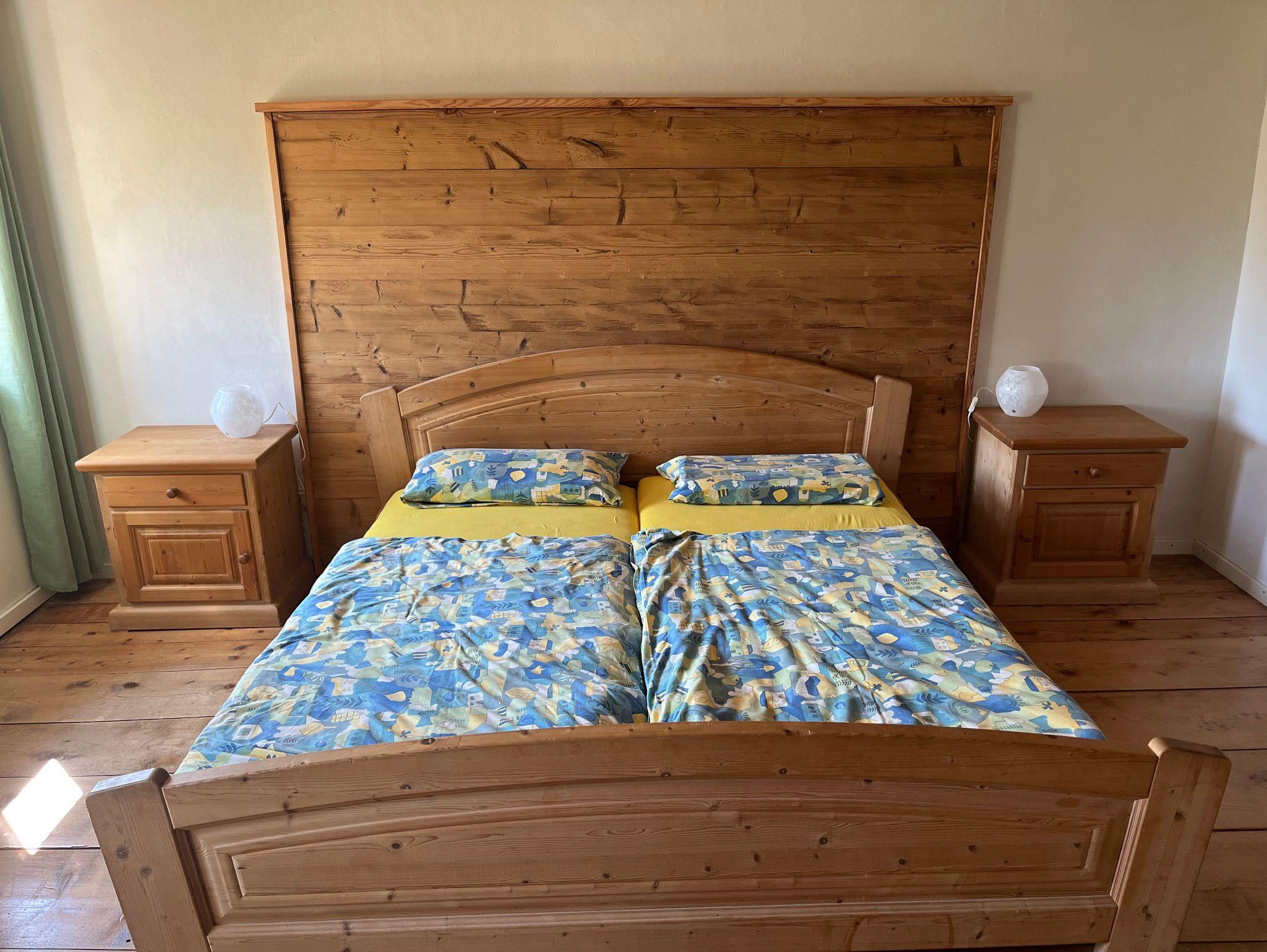 Es gibt ein großes Schlafzimmer mit einem Doppelbett (180x200cm), ein Kinderzimmer mit französischem Bett (140x200cm) und einer Schlafcouch. In jedem Schlafzimmer befinden sich an den Fenstern Verdunkelungsrollos.