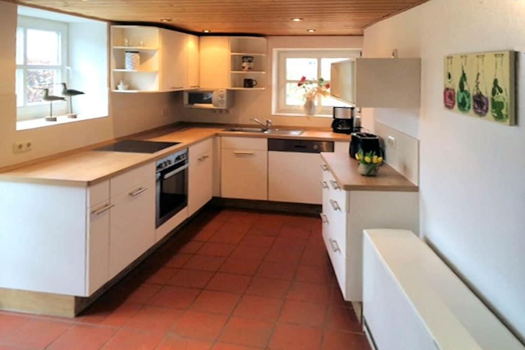 Die Ferienwohnung Nr. 1 bietet im "Landhaus zur Wiek" auf Rügen Platz, Komfort und Entspannung für max. 6 Personen + 1 Kleinkind. Der Name "Storchensicht" der Ferienwohnung deutet die naturnahe, sehr ruhige Lage an. Zwei Schlafzimmer befinden sich im Dachgeschoß, das Wohnzimmer mit anschließender neuer Küche und eines der Schlafzimmer und das Duschbad sind ebenerdig, so ist die Wohnung auch für die Mitnahme eines leicht Gehbehinderten oder älteren Mitreisenden beliebt. Das Landhaus verfügt über Internet/WLAN und Waschmaschine (kostenfrei) und gepflegte Sauna (kostenpflichtig) in einem Nebengebäude. In Abstimmung mit uns ist maximal 1 Hund (aufpreispflichtig) je Wohnung gestattet - nicht mehrere und keine sehr großen, gefährlichen Tiere oder Kampfhunde.. Die Wohnung dient der hochwertigen Erholung unserer Gäste - wir akzeptieren keine typischen Gruppenreisen.