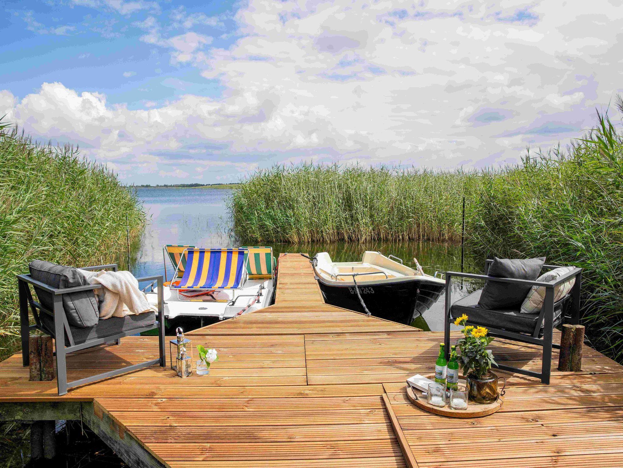 Exklusives Ferienhaus Boddenhuus in Zudar mit eigenem Steg, Ruderboot und traumhaftem Boddenblick.
