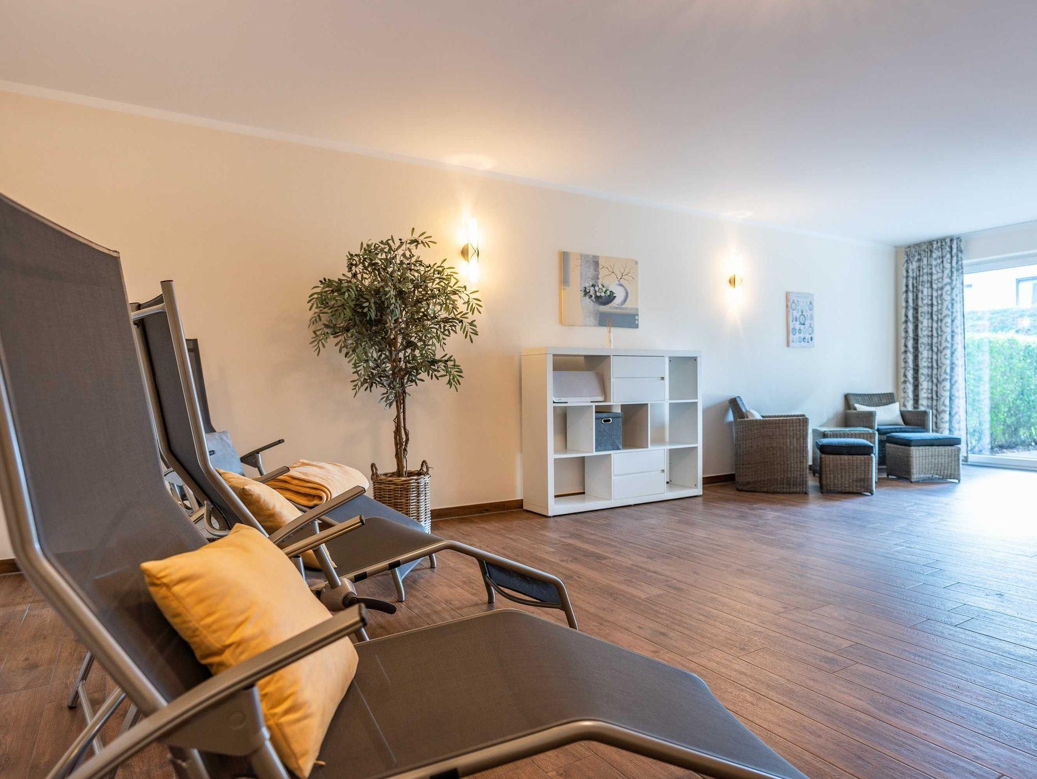 Im Souterrain des Nachbarhauses befindet sich auf 365 m² ein großer Freizeit-, Fitness- und Wellnessbereich (Biosauna, Finnische Sauna, Infrarotkabine, Fitnessraum, Massageraum, Ruheraum, Aufenthaltsraum, Spielzimmer für Kleinkinder, Billard, Tischtennis, Kicker), der Ihnen kostenlos zur Verfügung steht und die Interessen jeden Alters berücksichtigt.
