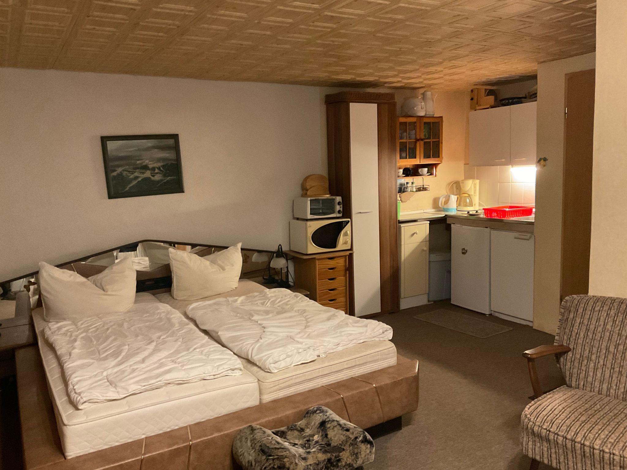 Das Ferienappartement ist ein kombinierter Wohn/Schlafraum mit Pantryküche, Bad mit DU/WC und ist geeignet für 2 Personen mit einer möglichen Kinderaufbettung.