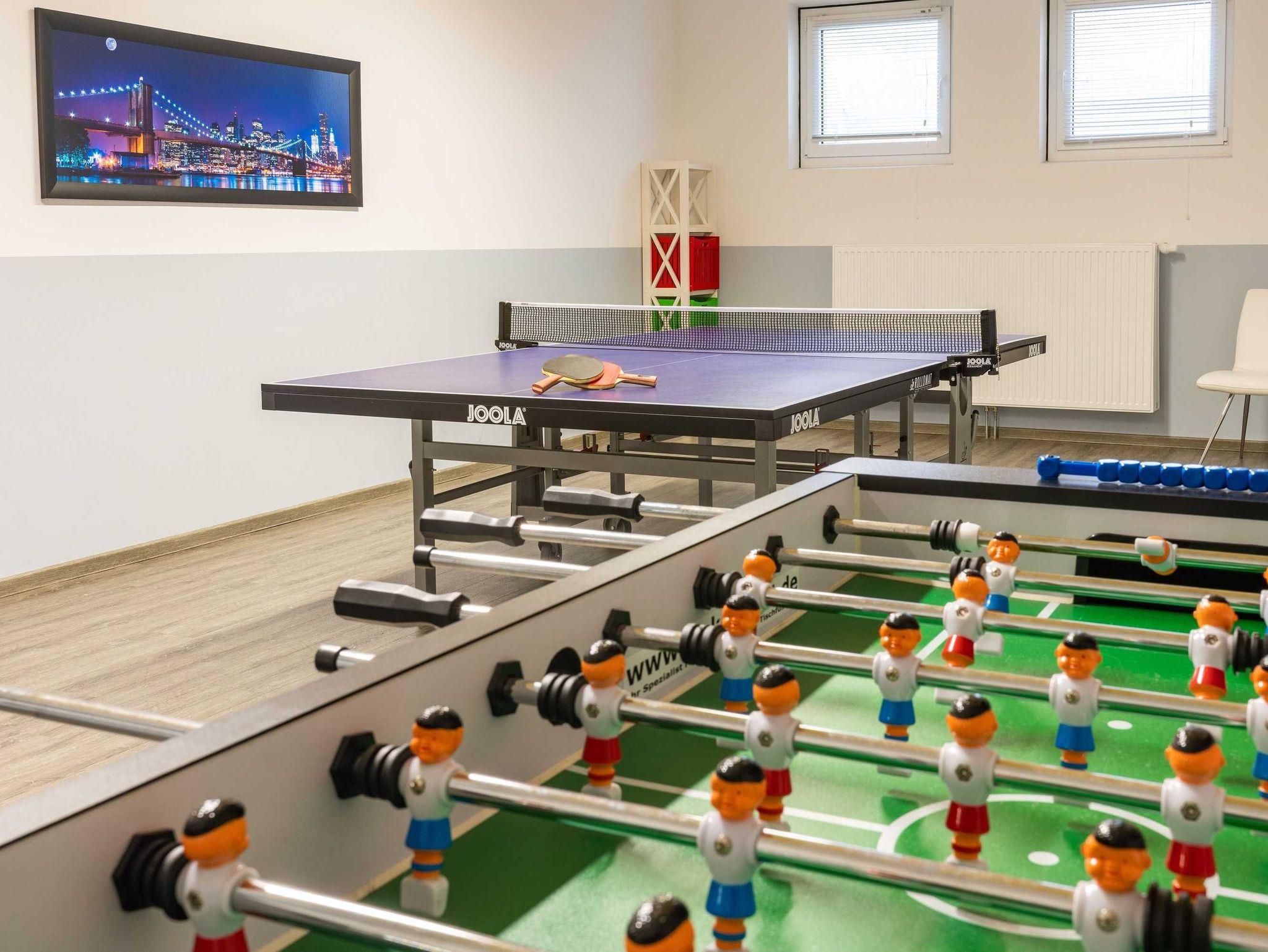 Im Basement der Häuser 1 und 2 befindet sich auf 365 m² ein weiterer Freizeit-, Fitness- und Wellnessbereich mit mehreren Saunen, Fitness-, Massage- und Aufenthaltsraum, Spielzimmer für Kleinkinder, Billard und Kicker, der Ihnen kostenlos zur Verfügung steht und die Interessen jeden Alters berücksichtigt.