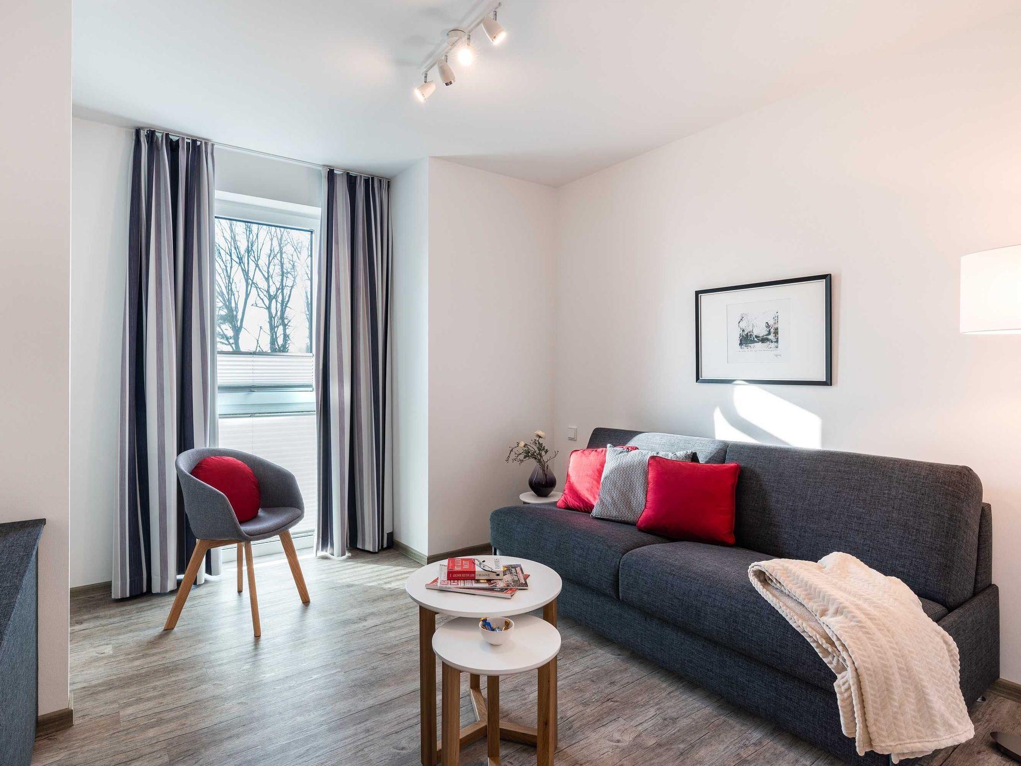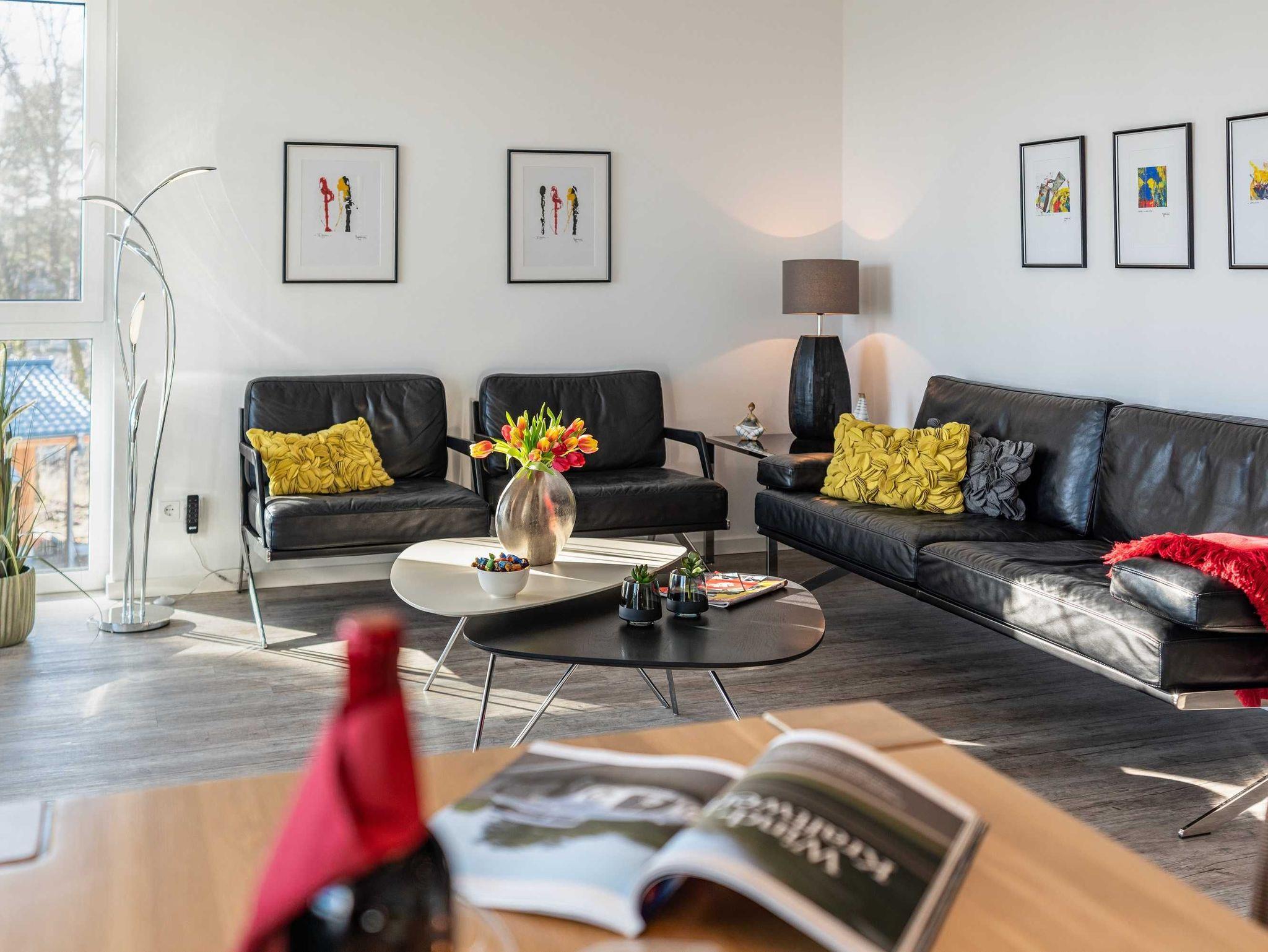 Alle Terrassenwohnungen und Appartements sind anspruchsvoll und modern ausgestattet. Großzügige Rasenflächen mit angelegten Gehwegen umgeben unsere Ferienhäuser. Einzelne Terrassen laden mit Sitzgelegenheiten an der Steilküste zum Verweilen ein.