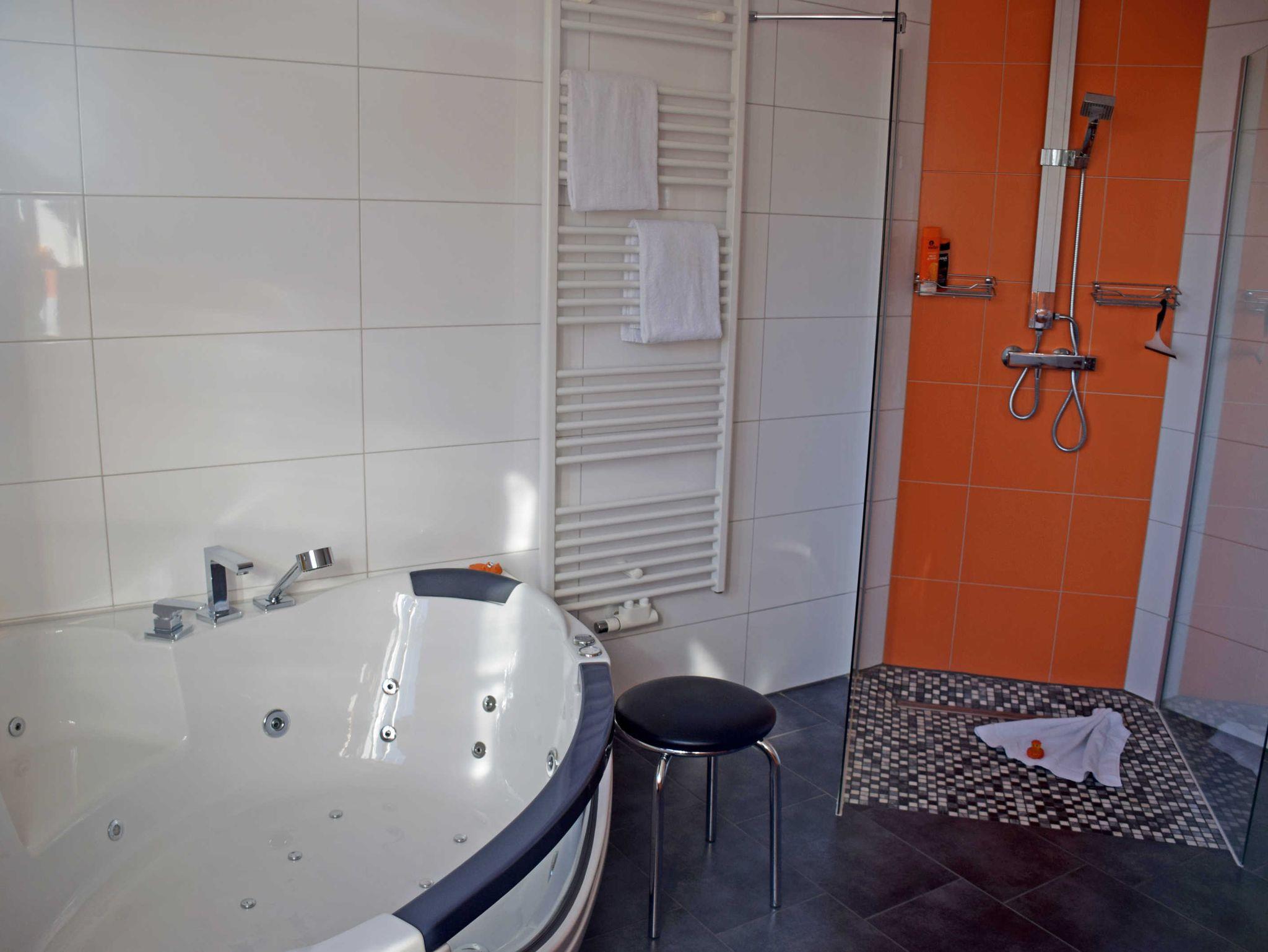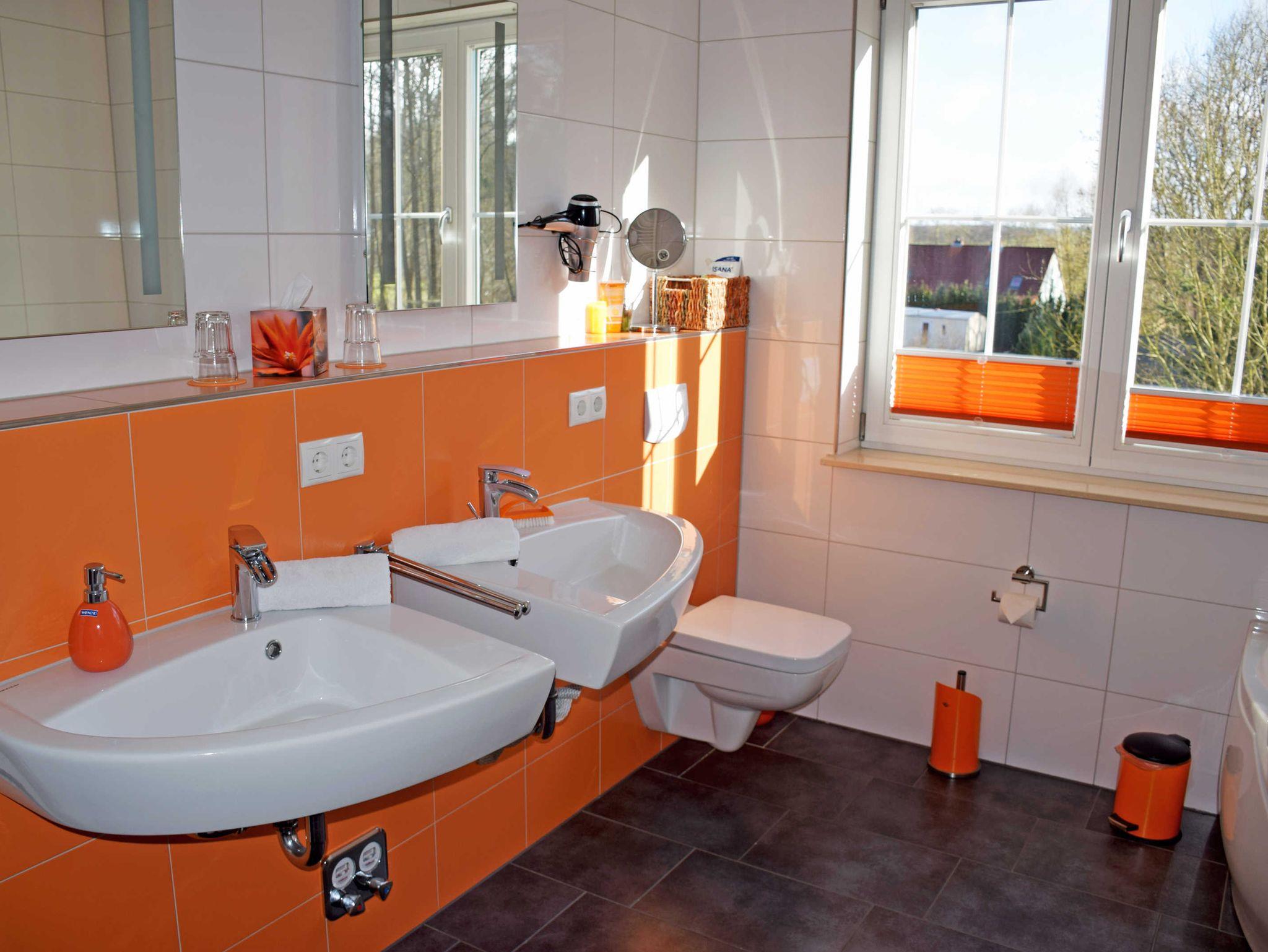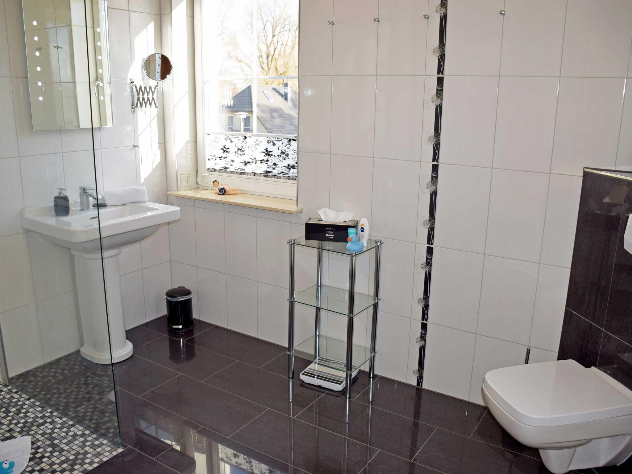 Das moderne Bad ist mit Dusche, Waschtisch, Whirl-Wanne, Handtuchtrockner und WC ausgestattet und verfügt - wie die gesamte Wohnung, über eine angenehme Fußbodenheizung. Auch das zweite Schlafzimmer verfügt über ein separates Bad (ohne Whirlwanne).