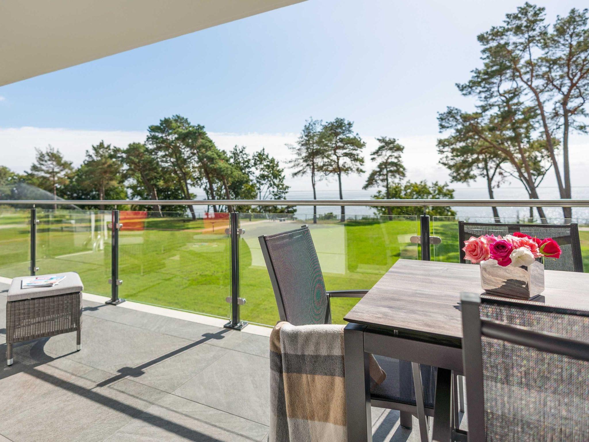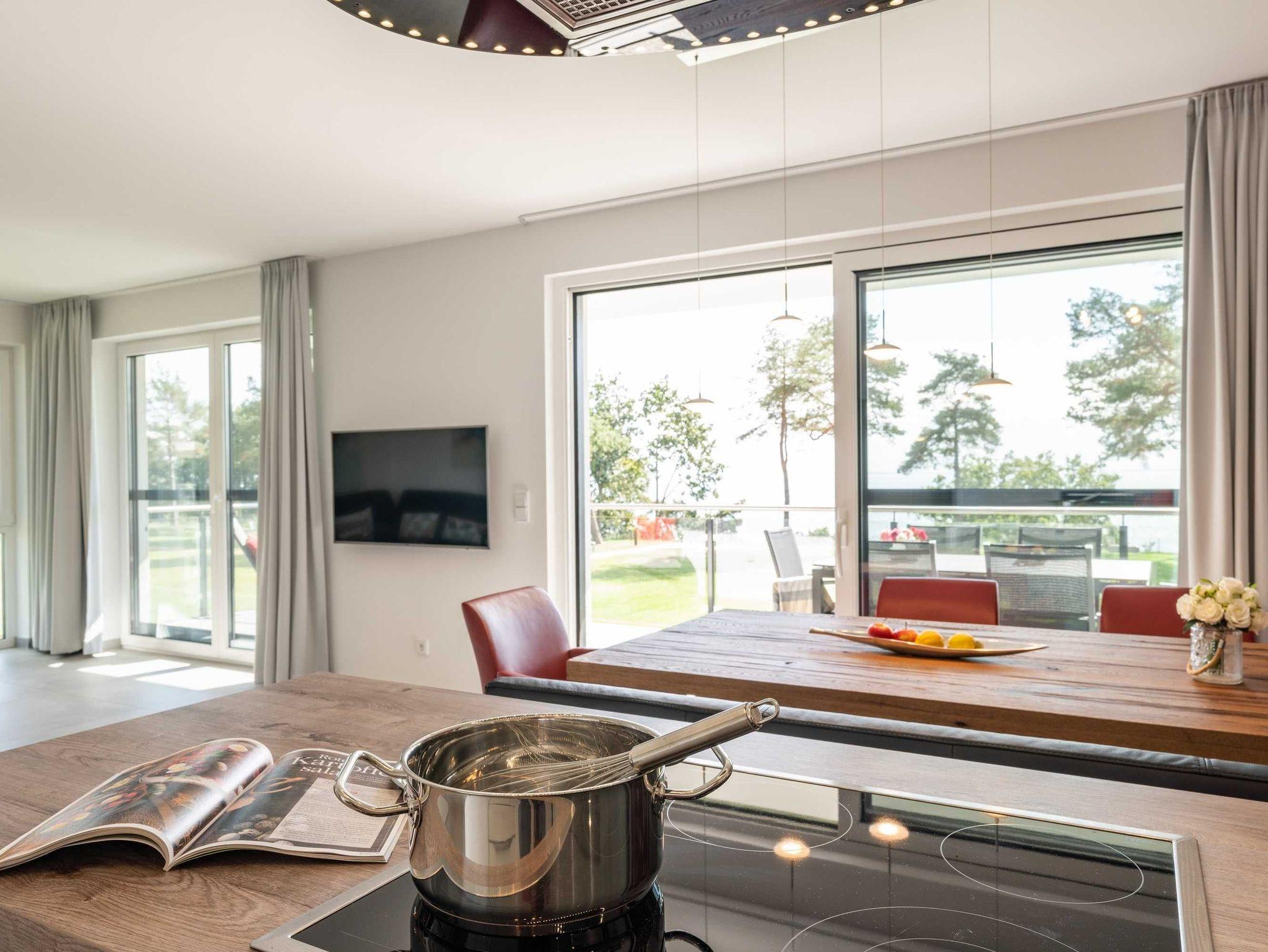 Genießen Sie moderne Eleganz und Wellness mit traumhaftem Blick auf das Stettiner Haff in diesem Apartment auf Usedom.
