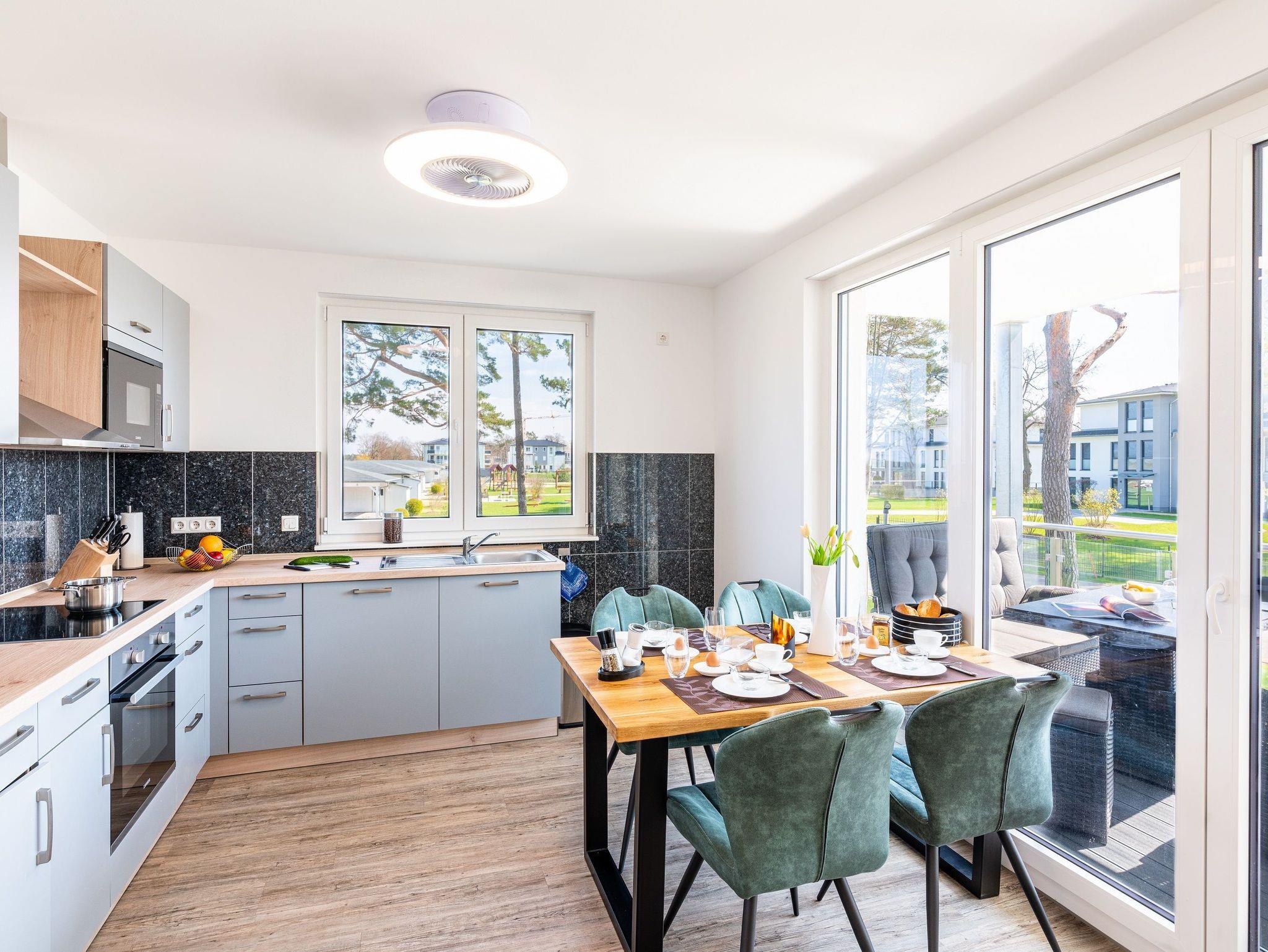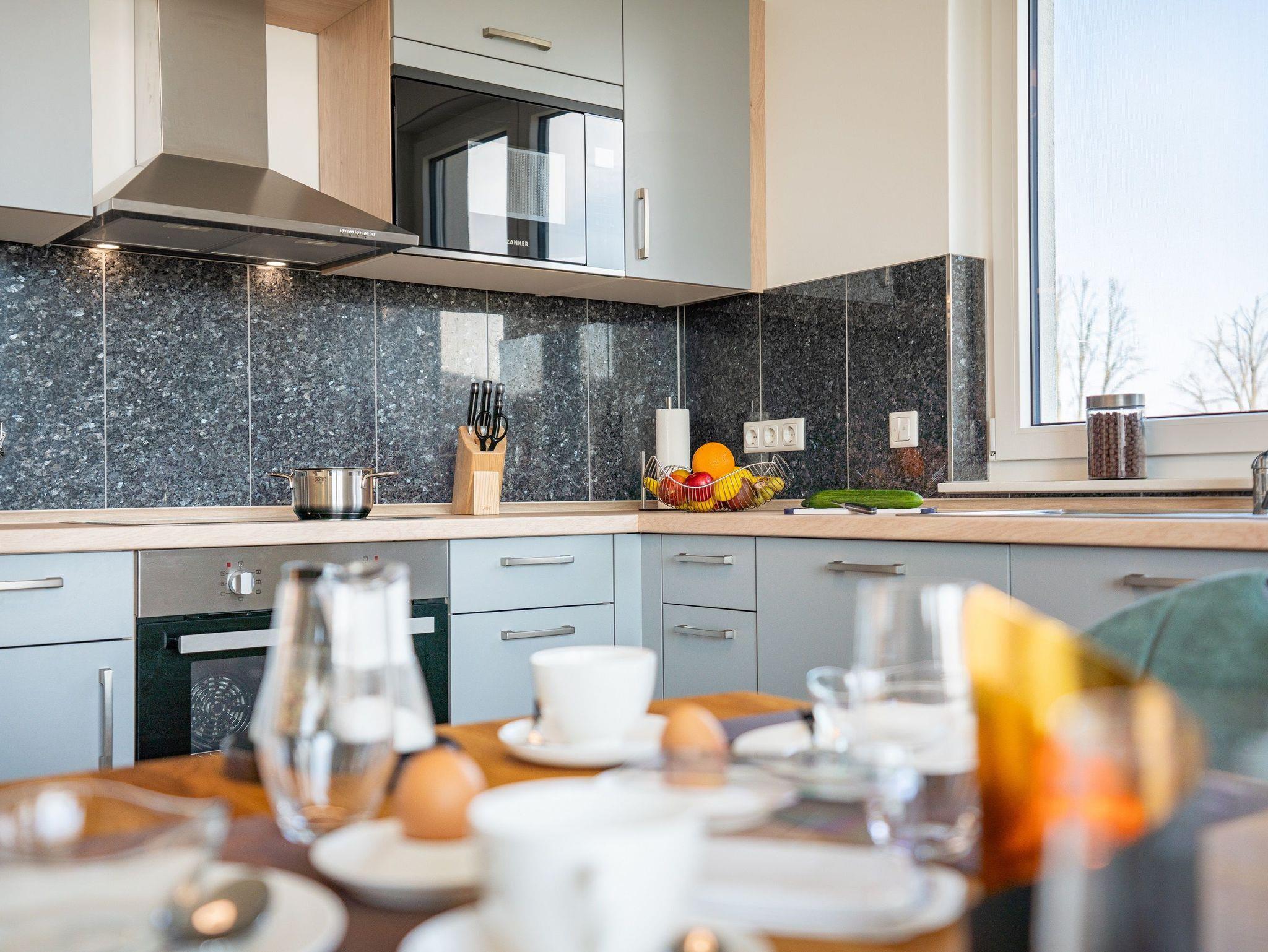 Auf einer Wohnfläche von 87 m² finden vier Erwachsene und ein Kleinkind bis zwei Jahre in dieser modern eingerichteten Ferienwohnung ausreichend Platz für einen entspannten Urlaub am Stettiner Haff auf Usedom.