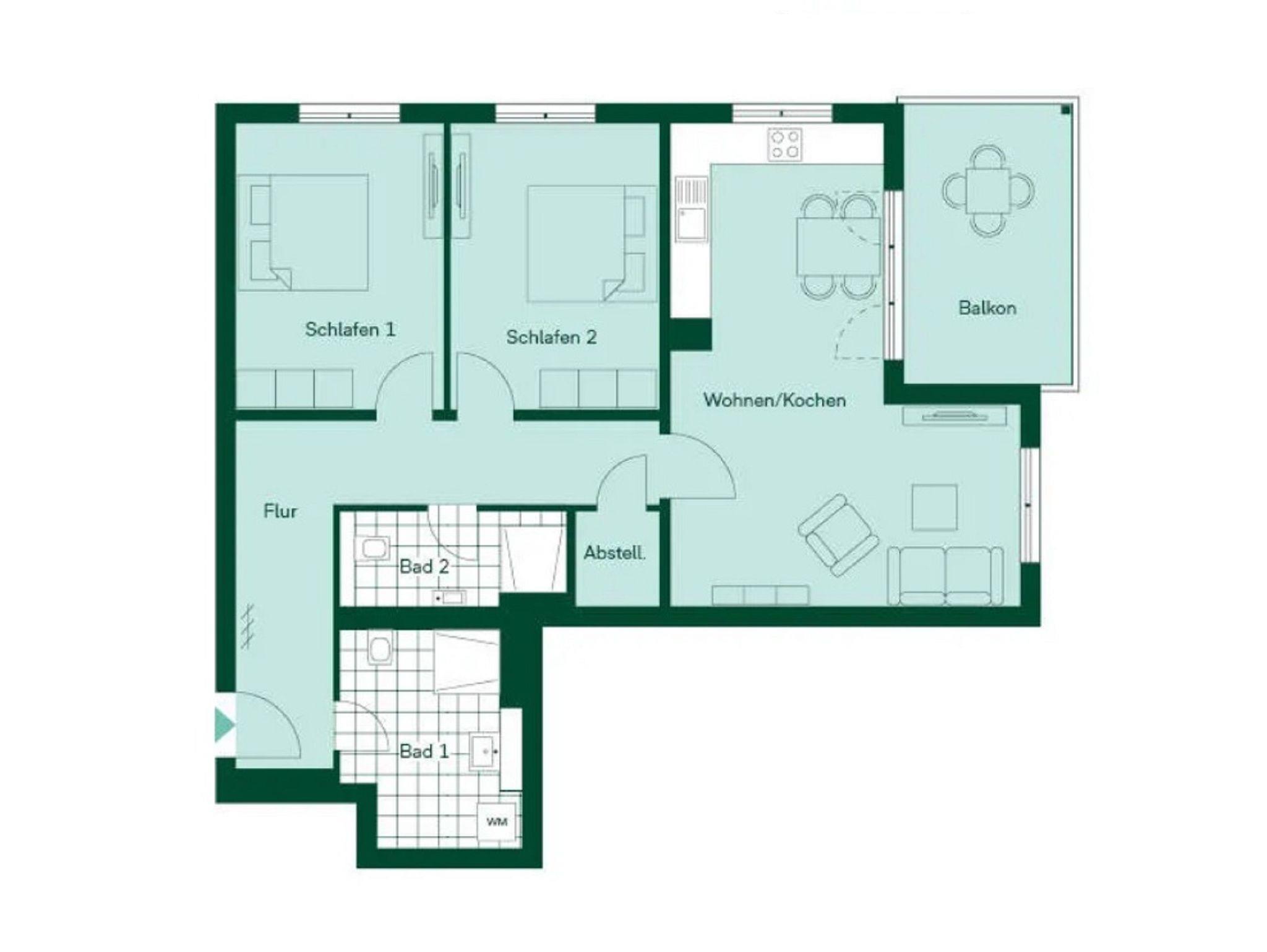Dieses großzügige Ferienapartment befindet sich in der ersten Etage (Aufzug vorhanden) des im Jahre 2022 erbauten Gebäudes Nummer 5 und weist viele behindertenfreundliche Merkmale auf.