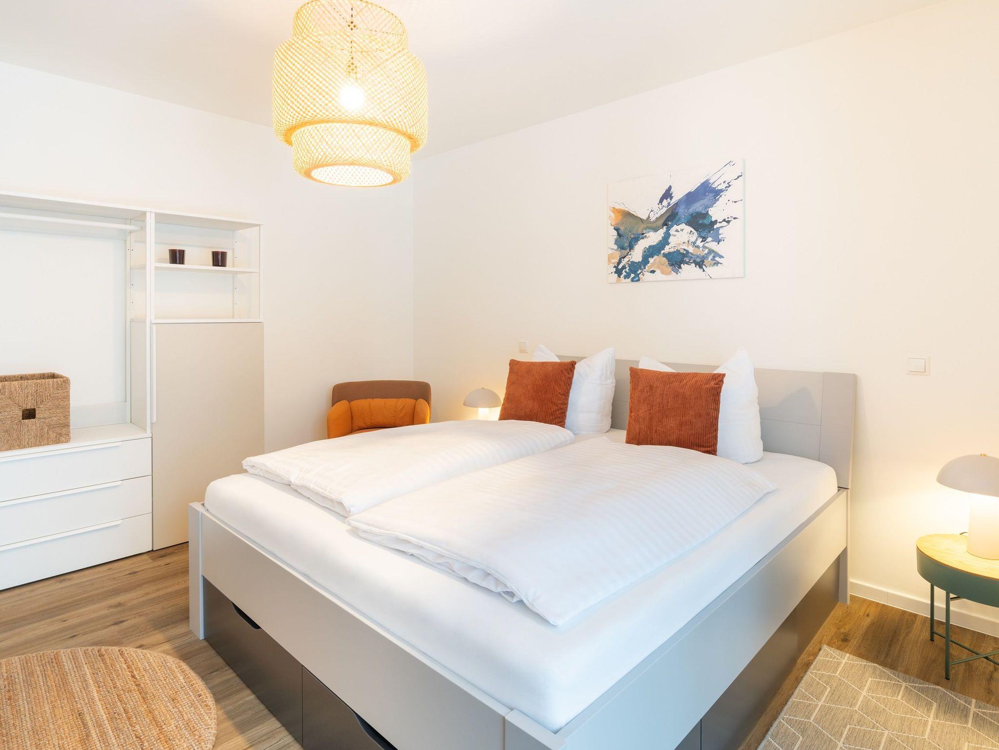 Dieses großzügige Ferienapartment befindet sich in der ersten Etage (Aufzug vorhanden) des im Jahre 2023 erbauten Gebäudes Nummer 4 und weist viele behindertenfreundliche Merkmale auf.