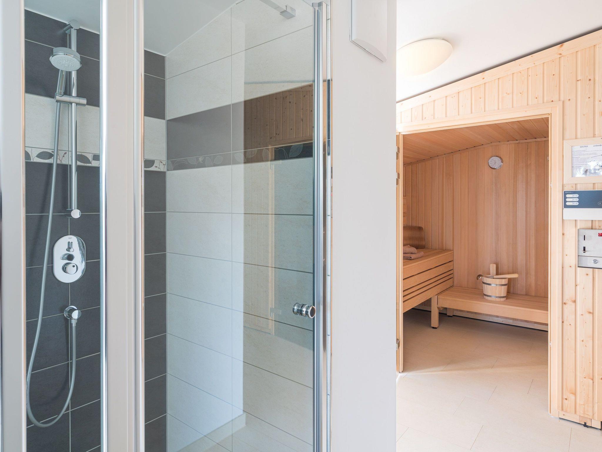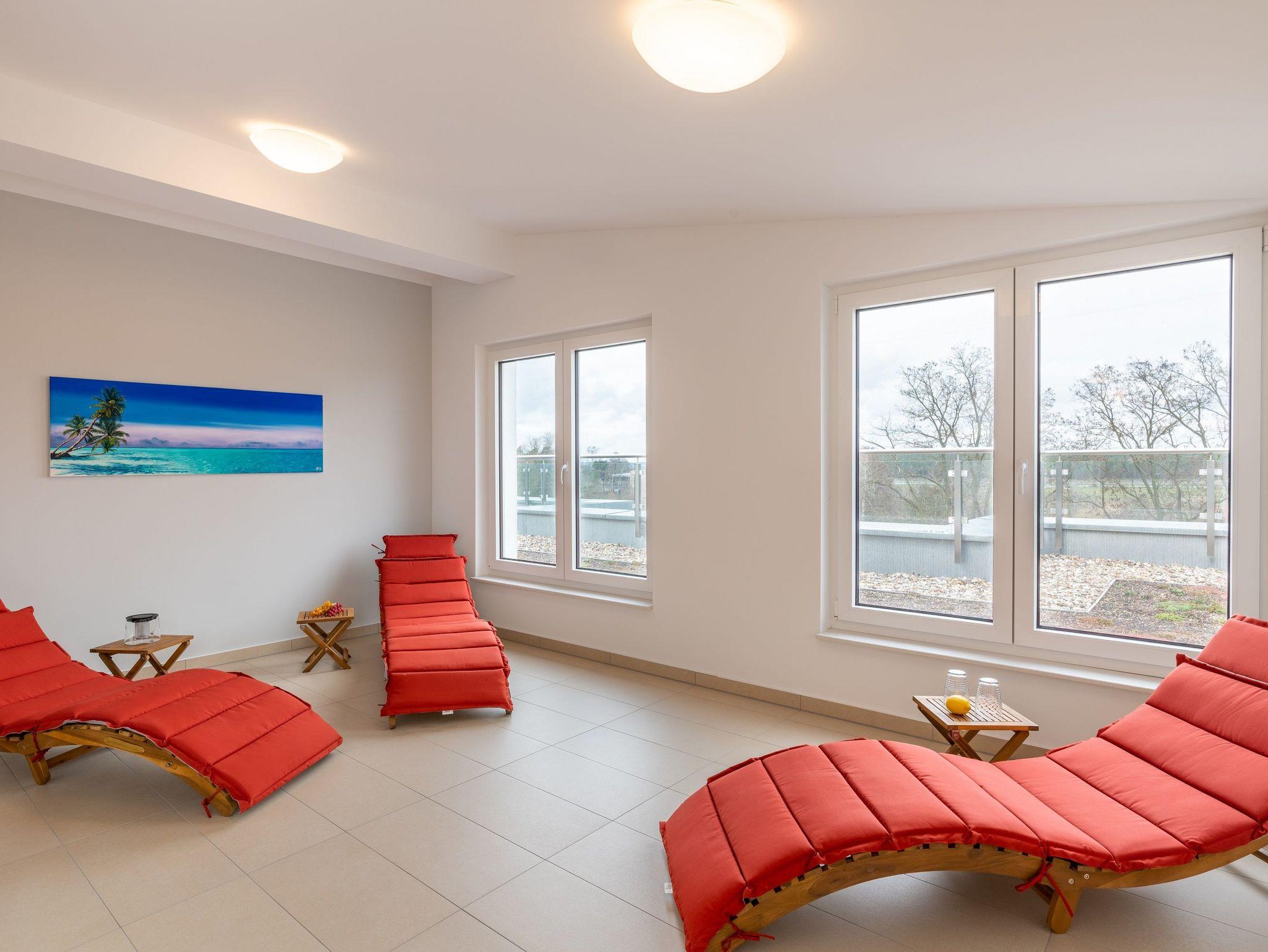 Weit ab von der Hektik und den Besuchermassen öffentlicher Wellnessangebote, finden Sie im Dachgeschoss des Hauses auf 190 m² die Ruhe, die Sie sich verdient haben. Entspannen Sie im hauseigenen, kostenfreien Wellnessbereich mit drei Saunen. Genießen Sie die klare Ostseeluft auf der großen angrenzenden Dachterrasse.