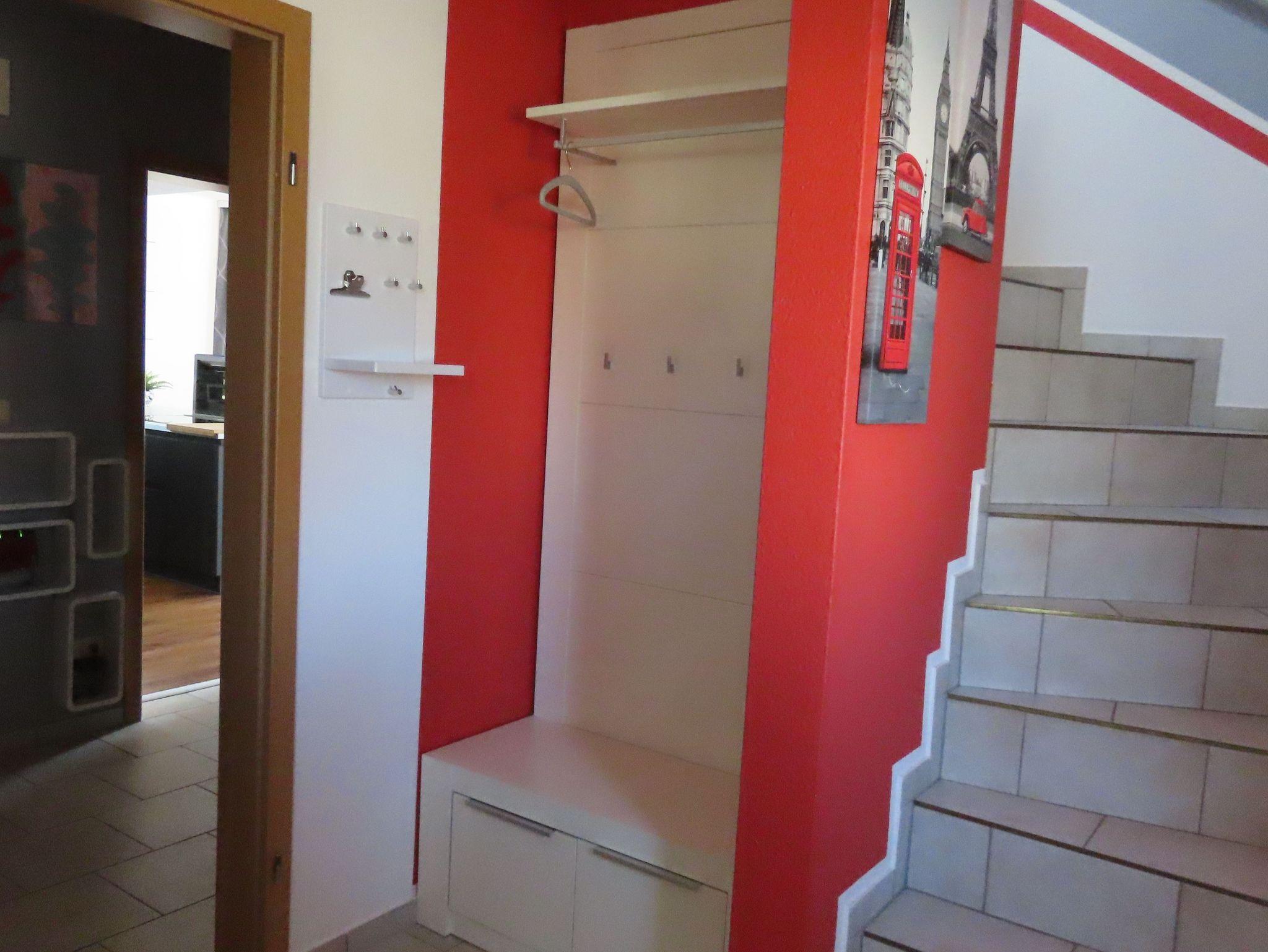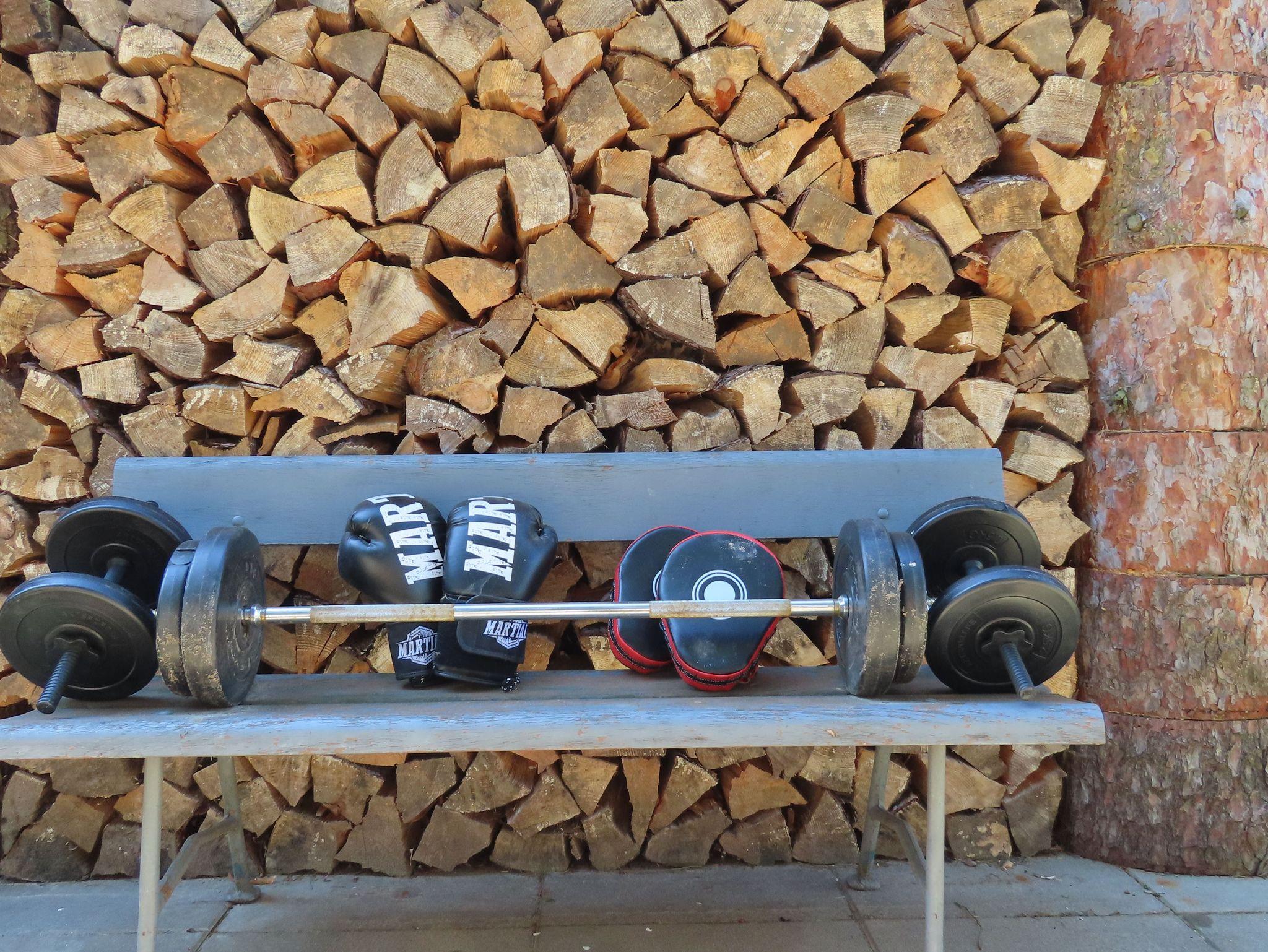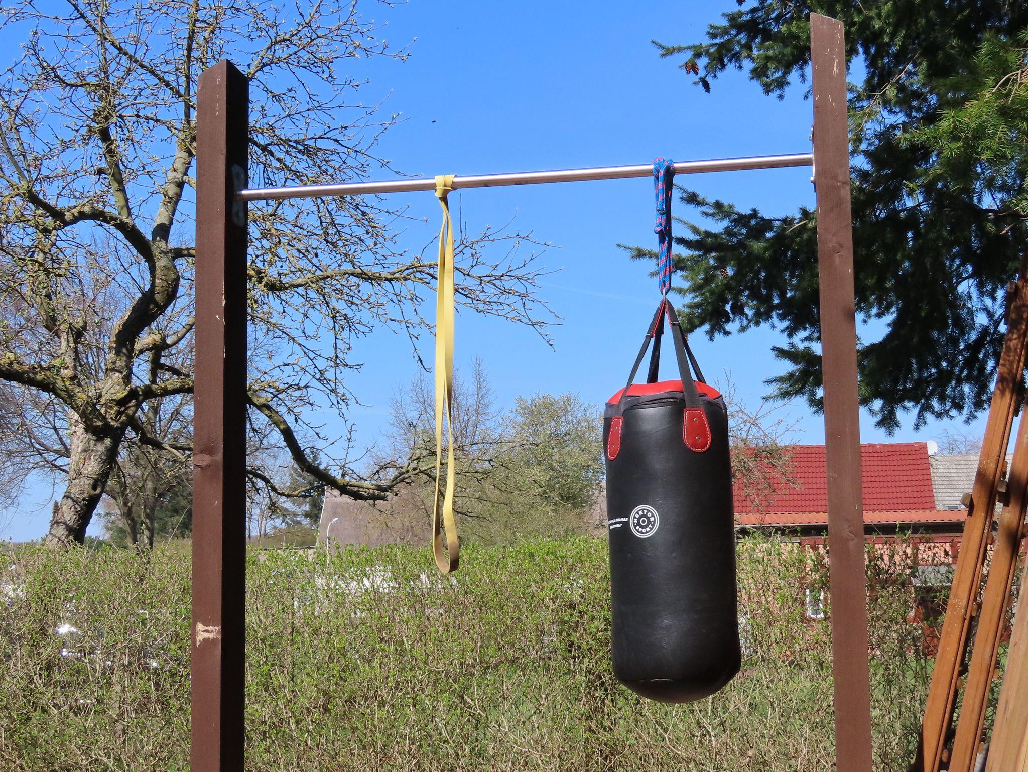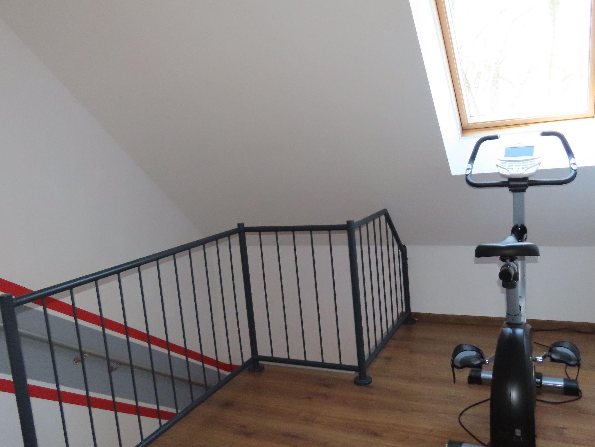 - Sportgeräte (Heimtrainerfahrrad im Obergeschoss; im Garten Klimmzugstange und Dip-Stationen)