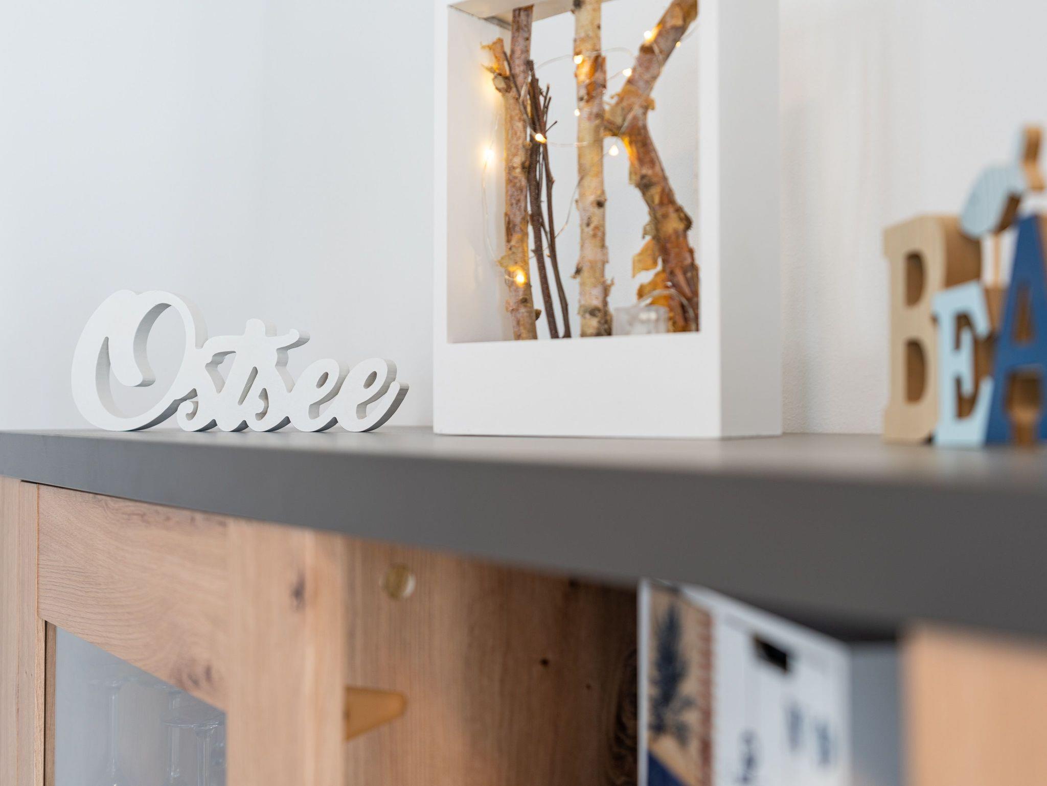 Auf einer Wohnfläche von 61 m² finden drei Erwachsene und ein Kleinkind bis zwei Jahre (im Babybett) in dieser modern eingerichteten Ferienwohnung ausreichend Platz für einen entspannten Urlaub am Stettiner Haff auf Usedom.