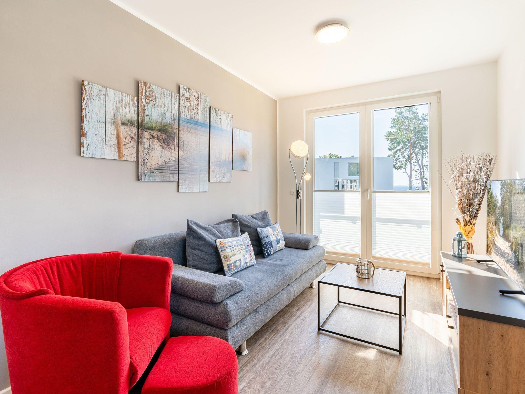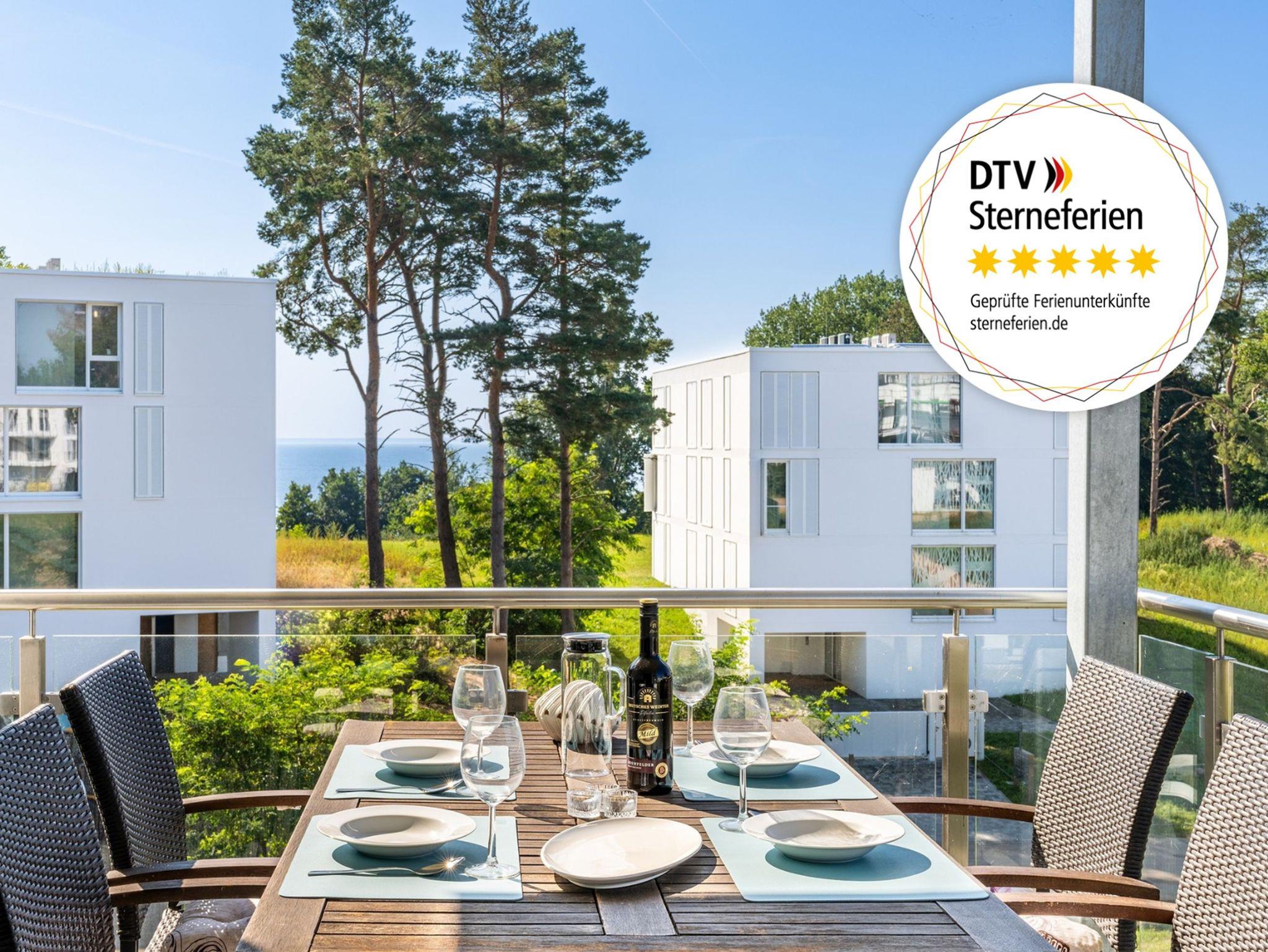 Modernes 5-Sterne-Apartment in ruhiger Lage auf Usedom mit Balkon, Sauna und barrierefreiem Zugang.