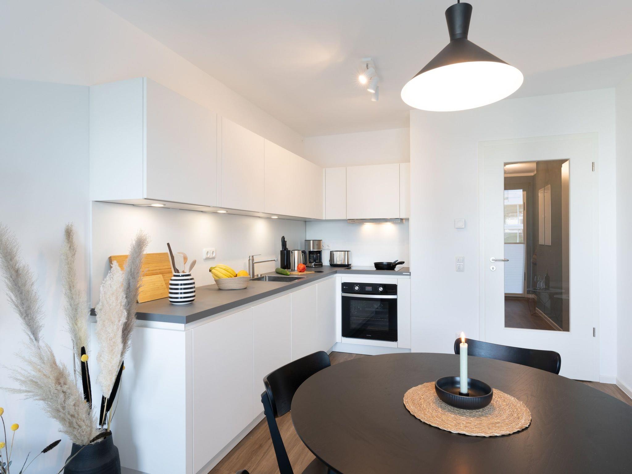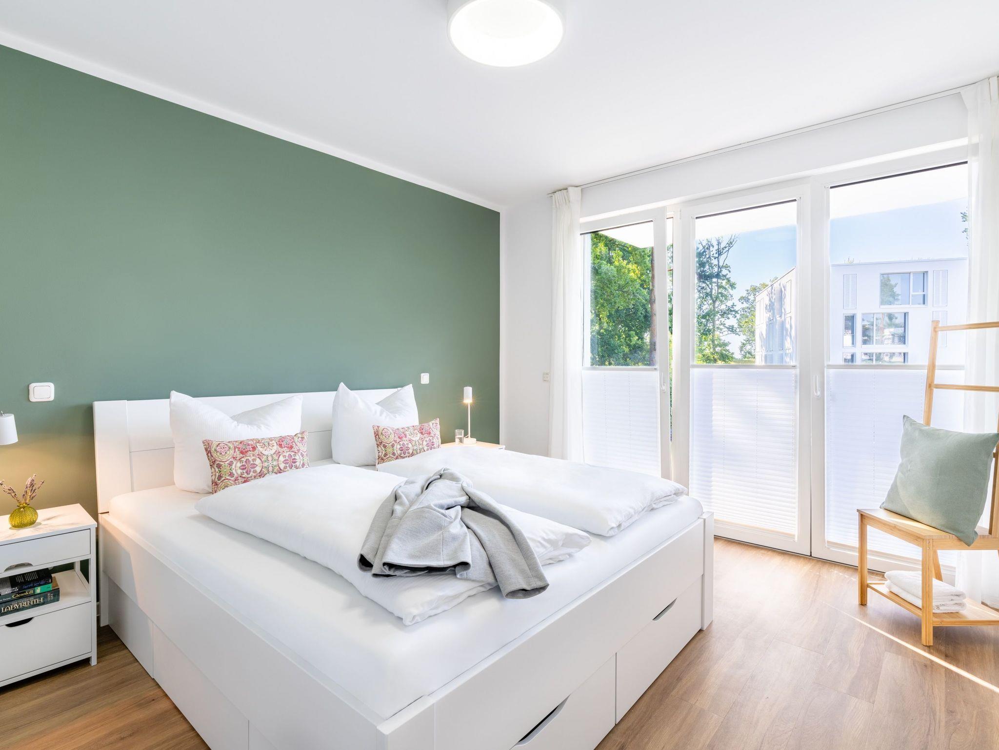 Auf einer Wohnfläche von 63 m² finden drei Erwachsene und ein Kleinkind bis zwei Jahre (im Babybett) in dieser modern eingerichteten Ferienwohnung ausreichend Platz für einen entspannten Urlaub am Stettiner Haff auf Usedom.
