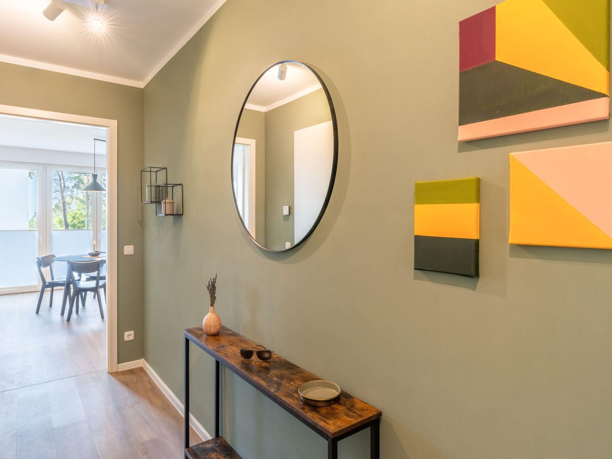 Moderne Terrassenwohnung Haffperle auf Usedom nahe Naturpark Stettiner Haff mit barrierefreiem Komfort und Wellnessbereich.