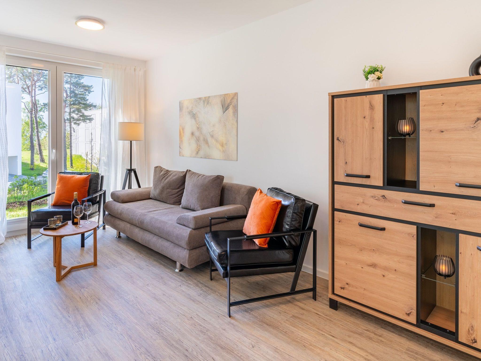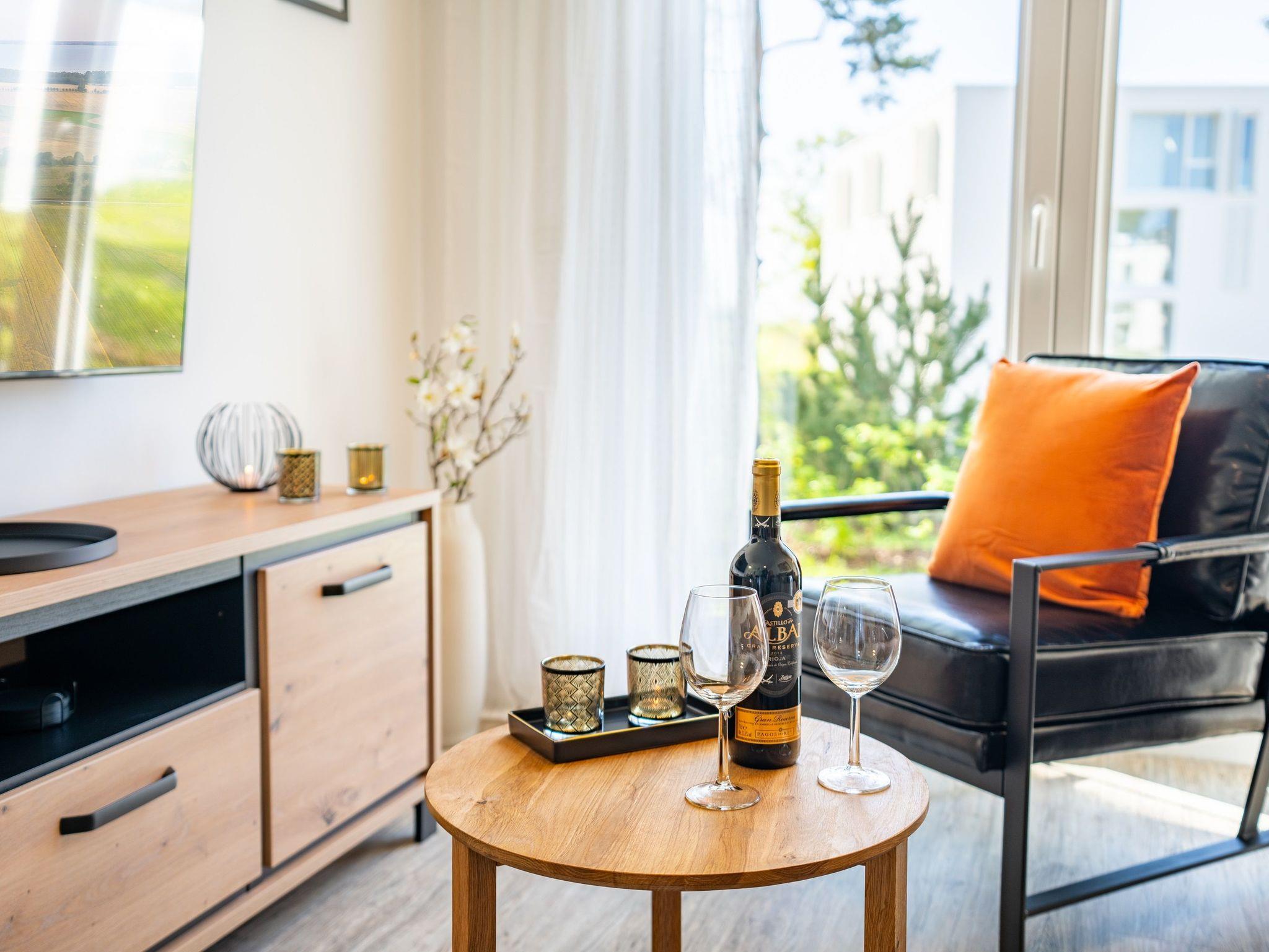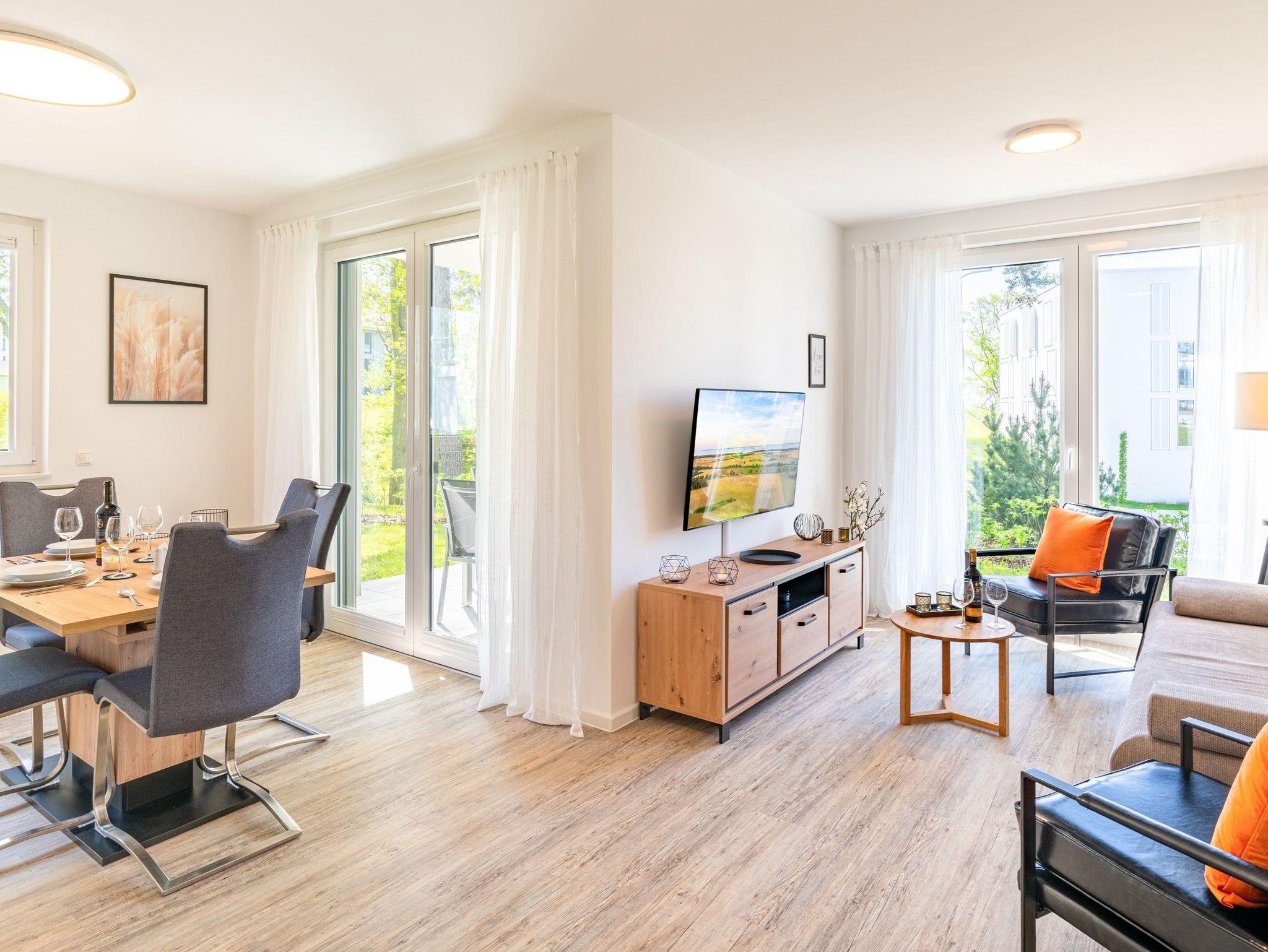 Moderne Terrassenwohnung in ruhiger Lage auf Usedom nahe Naturpark Stettiner Haff mit Sauna und barrierefreiem Komfort.