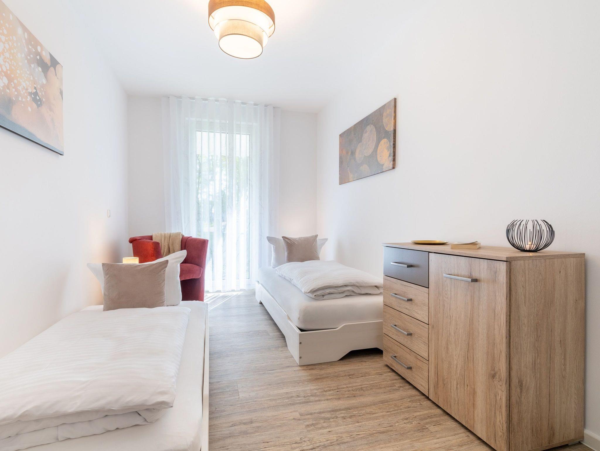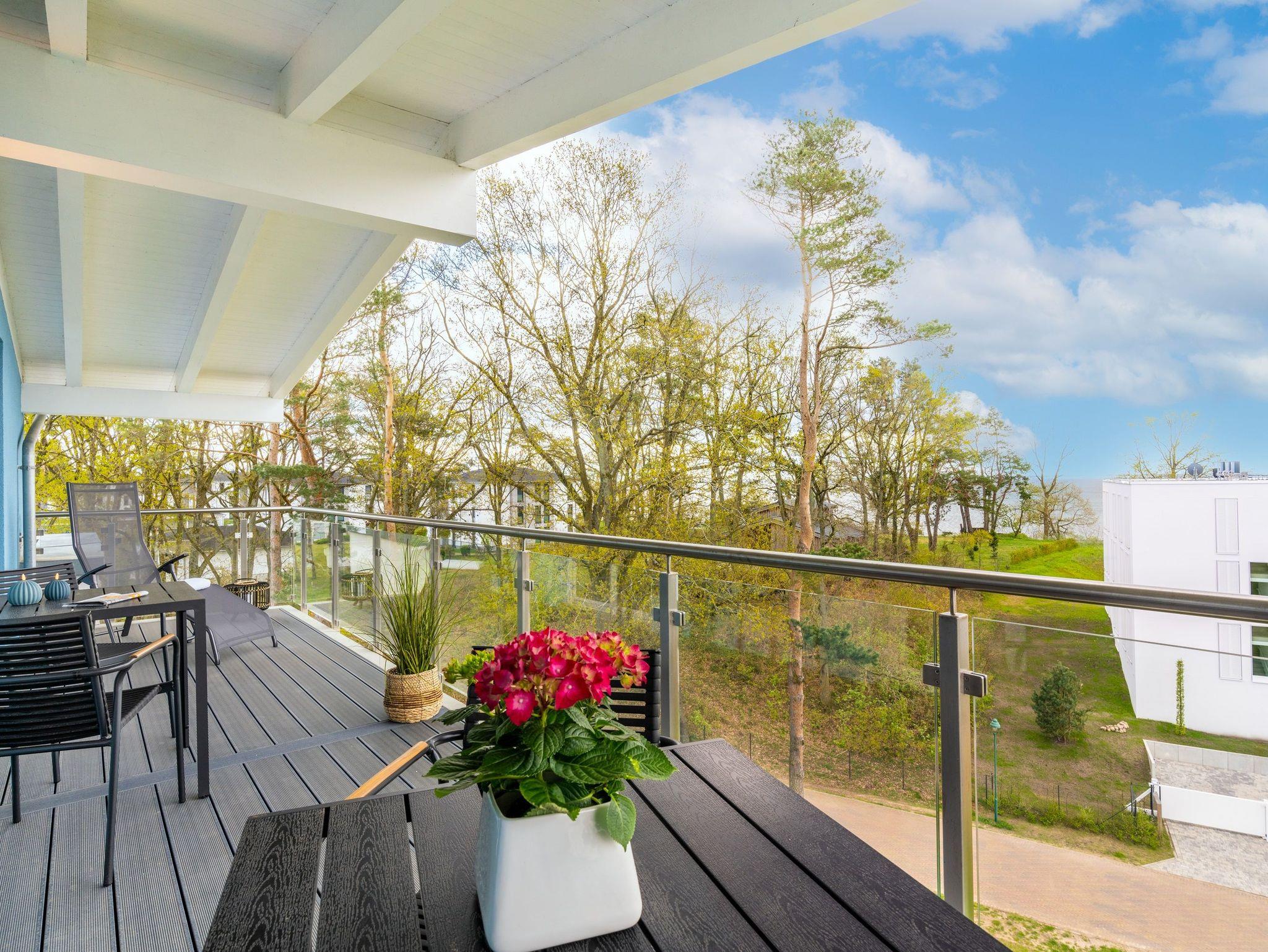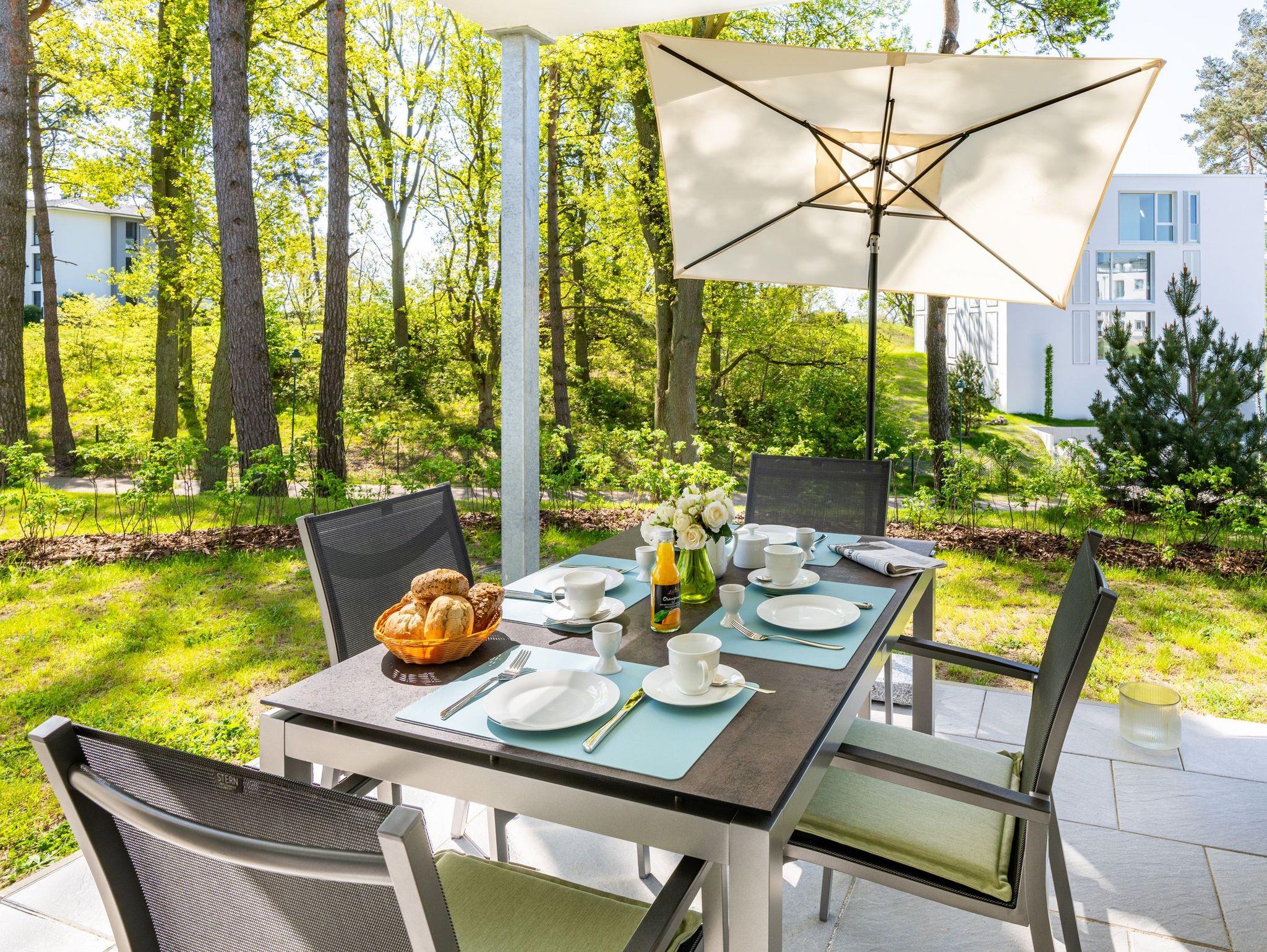 Moderne Terrassenwohnung in ruhiger Lage auf Usedom nahe Naturpark Stettiner Haff mit Sauna und barrierefreiem Komfort.