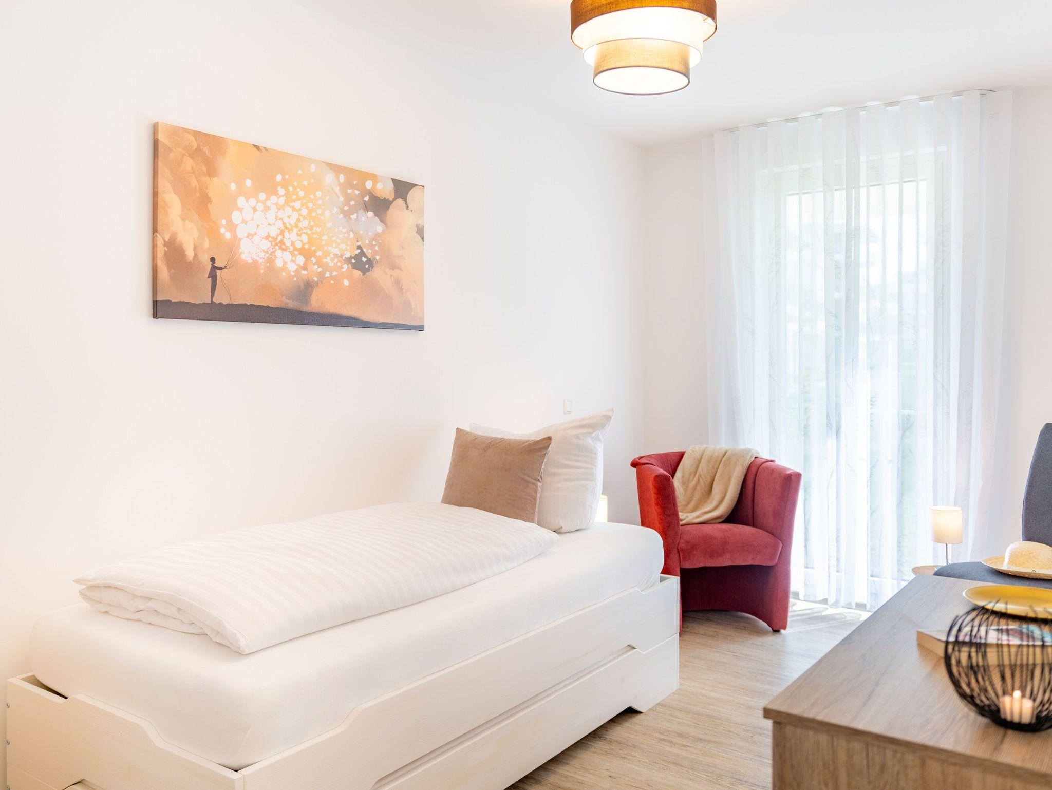 Dieses großzügige Ferienapartment befindet sich im Erdgeschoss (Aufzug vorhanden) des im Jahre 2023 erbauten Gebäudes Nummer 3a und weist viele barrierefreie Merkmale auf.