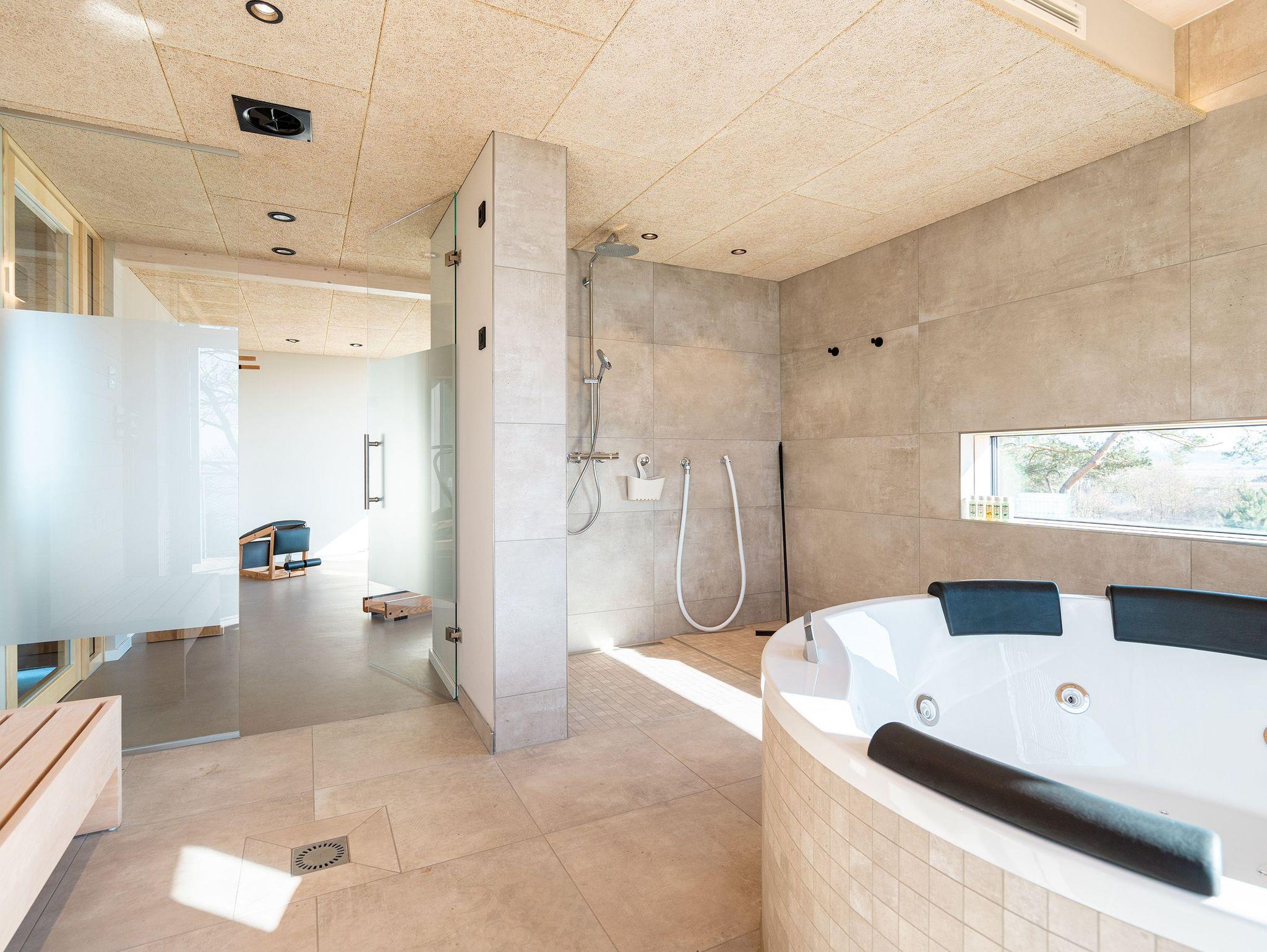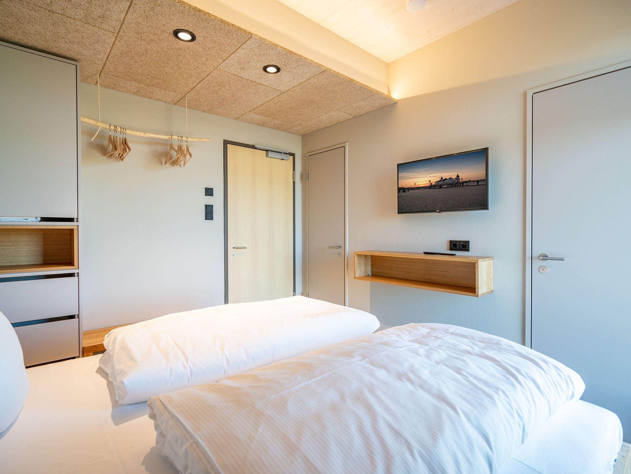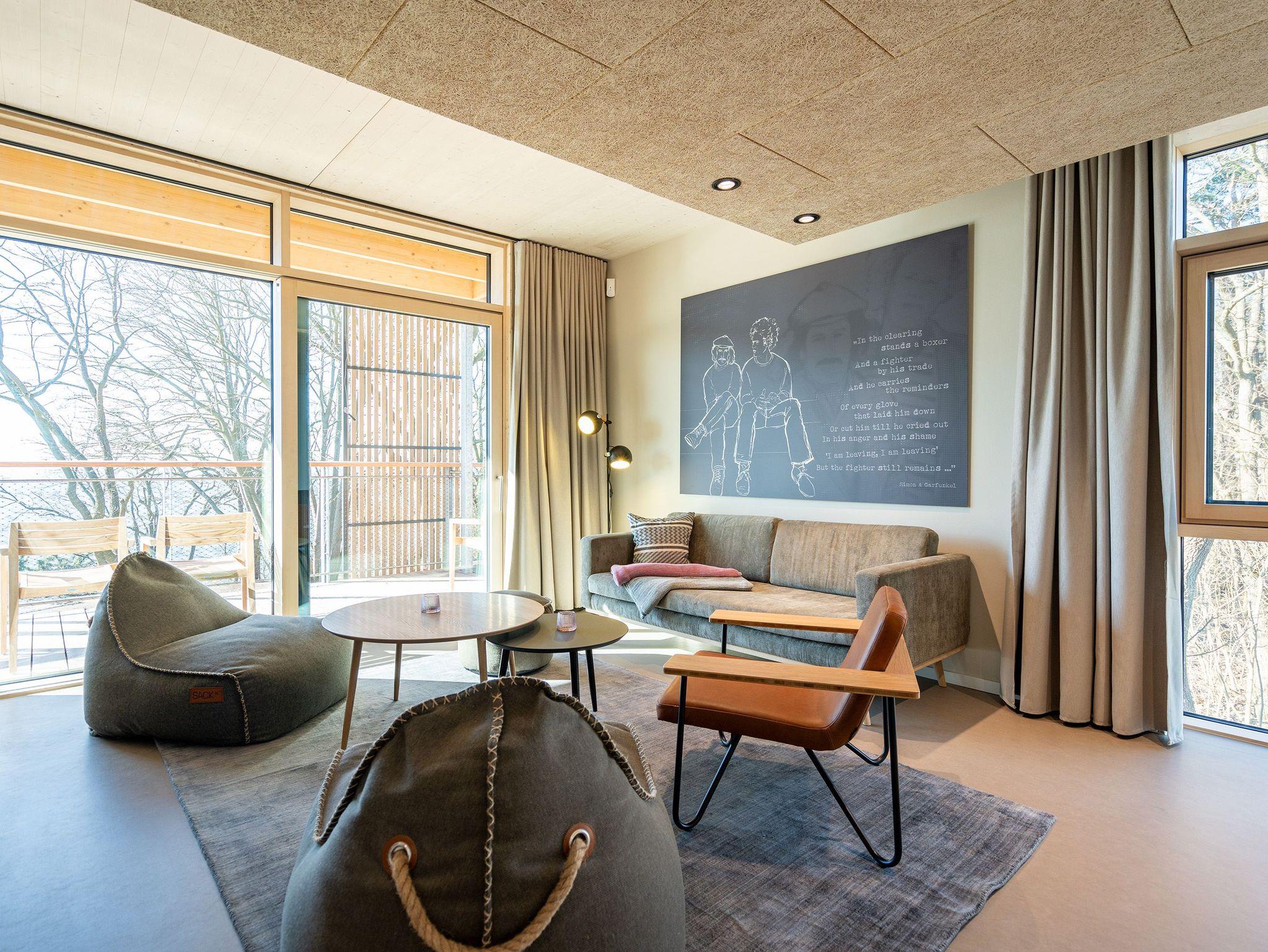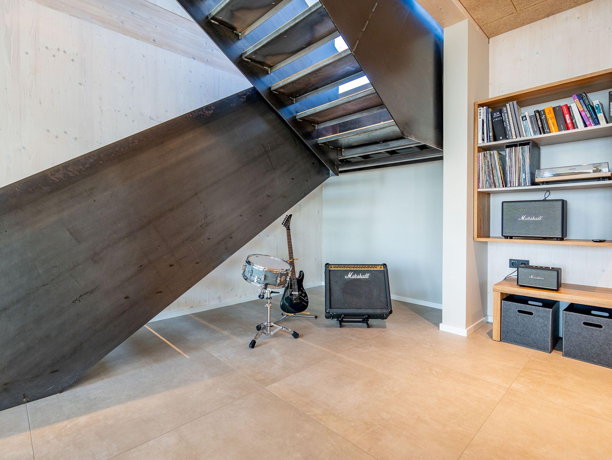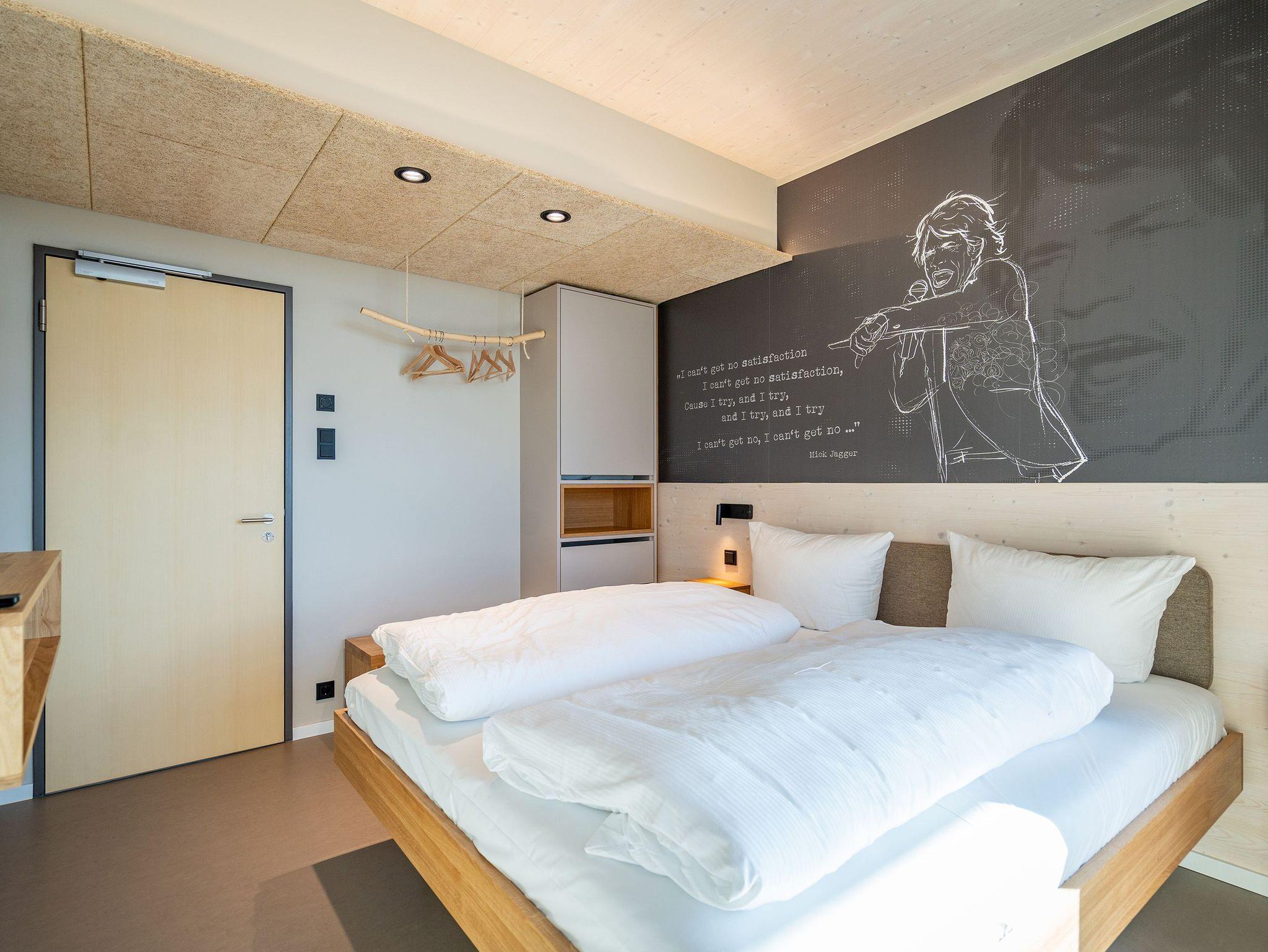 In dem 300 Quadratmeter großen Seminar- und Gästehaus mit großzügiger Außenanlage können bis zu 16 Personen nebst einem Kleinkind im Kinderreisebett beim Arbeiten oder Feiern, gemeinsam die Zeit genießen. In dieser besonderen Location kommen Bewohner nicht nur runter, sondern auf schöpferische Ideen voller Rhythm and Blues. Denn in der modernen Architektur des Hauses aus Stahl, Beton und Holz stecken jede Menge Reminiszenzen an die großen Künstler des Rock?n? Roll. Die Liebe zum musikalischen Detail steckt in vielen Kleinigkeiten. Wer mit offenen Augen durchs Haus schlendert, wird garantiert inspiriert. Legen Sie doch eine Platte auf dem Plattenspieler auf und träumen Sie sich in die Klänge großartiger Songs.Ein großer und offener Wohnbereich im Erdgeschoss ist perfekt dafür gemacht, Produktivität und Freizeit miteinander zu verbinden. Auch für große Familientreffen ist die Küstenkiste bestens geeignet. Im loftähnlichen Gemeinschaftsbereich lässt es sich wunderbar feiern, essen, gemeinsam kochen oder einfach nur zusammensitzen und das Leben genießen. Der Wohnbereich mit Ledersofas, Kamin und Klavier, der Essbereich mit riesiger Holztafel, die sich auch bestens zum Brainstormen, Diskutieren und Pläneschmieden eignet, und die supermoderne Küche sorgen für ein Gefühl von Freiheit und Nähe, von Unbeschwertheit und dem Fokus auf das Wesentliche. Auch im Innenhof und auf der Sonnenterrasse mit Grill laden zwei große Tafeln zum gemeinsamen Essen und Entspannen ein. Die Küche ist mit allem ausgestattet, was man sich für das Kochen in Gesellschaft nur wünschen kann. Sie verfügt über einen 6-Platten-Induktionsherd, einen Backofen sowie eine Mikrowelle-Backofen-Kombination. Auch mit 16 Mitbewohnern ist der Abwasch kein Problem. Denn den übernehmen zwei große Geschirrspüler. In den Schränken und in einem Serviceraum mit Waschmaschine, Trockner und zusätzlichem Kühl- und Gefrierschrank findet sich viel Stauraum für alle brauchbaren Utensilien, die dank Beschriftung, leicht zu finden sind. Die Gäste wohnen in acht Studios ? zwei im Erdgeschoss, sechs im 1. Obergeschoss ? mit Doppelbett, Kleiderschrank, Flat-TV, eigenem Tageslicht-Duschbad und separatem WC. Drei der Schlafzimmer verfügen über einen Zugang zum Balkon mit Haffblick. Aber auch alle anderen Zimmer haben aus dem Bett einen Blick ins Grüne. Jedes Zimmer ist einem anderen Musikgenie gewidmet. Entscheiden Sie selbst, ob Sie sich und ihre Träume lieber von Janis Joplin, Joni Mitchel oder von Bob Dylan beflügeln lassen wollen. Im Obergeschoss gibt es einen weiteren Loungebereich mit Flat-TV und Zugang zum Balkon. In einem Fitnessraum kann man sich an den hochwertigen Geräten der Firma Nohrd wunderbar auspowern, um anschließend in der Sauna oder im Whirlpool, die Energieakkus wieder aufzuladen. Doch das eigentliche Highlight des Anwesens ist der weitläufige Garten mit Beachvolleyballfeld auf echtem Strandsand, lauschigen Eckchen zum Sitzen, einem Hot Tub und einer großen Chillterrasse mit Haffblick. Parkplätze und eine Wallbox für Elektroautos (gegen Gebühr) gibt es vor dem Haus. Tierliebe Gäste können gegen Aufpreis bis zu zwei ihrer Lieblinge mitbringen.