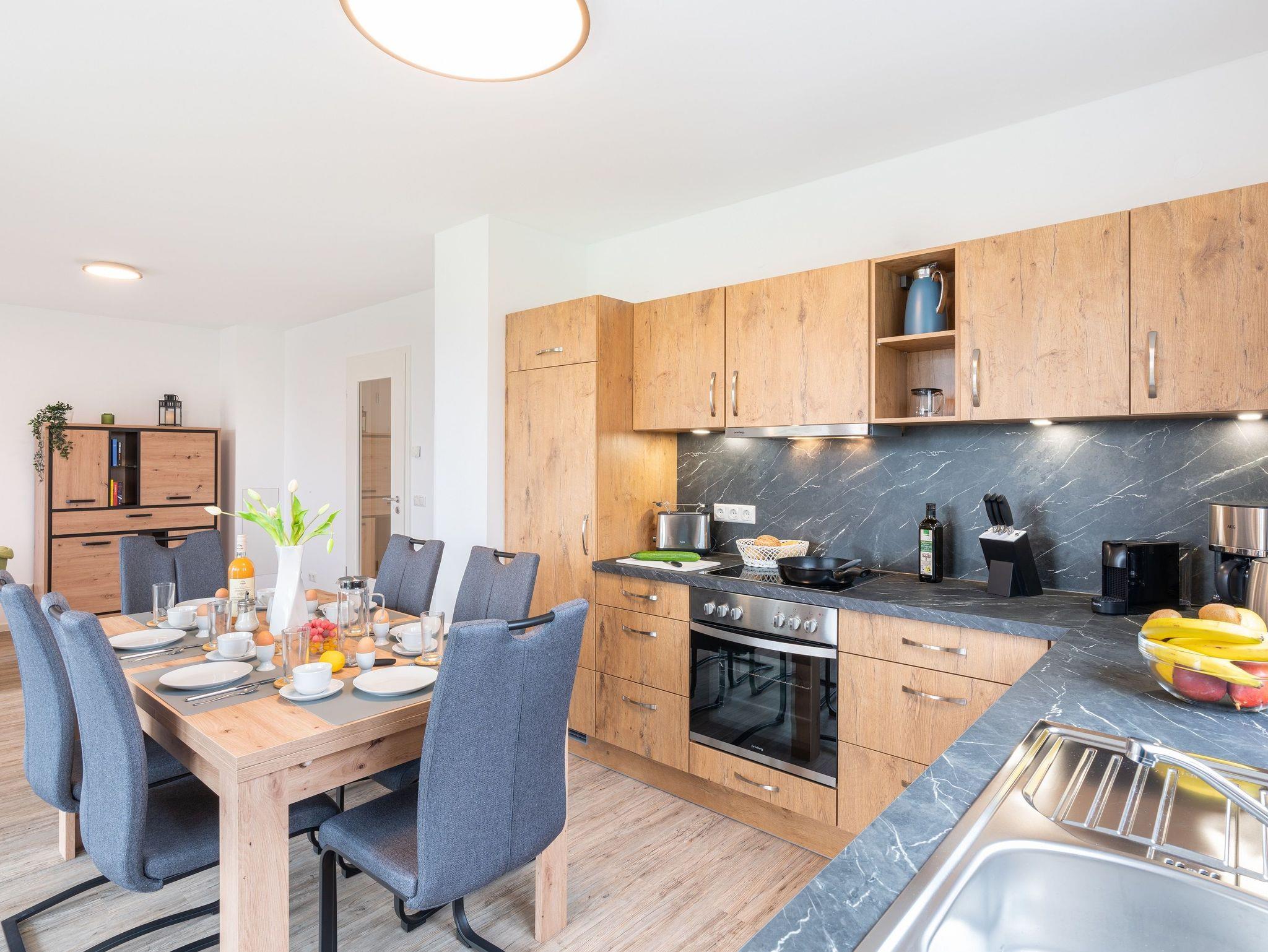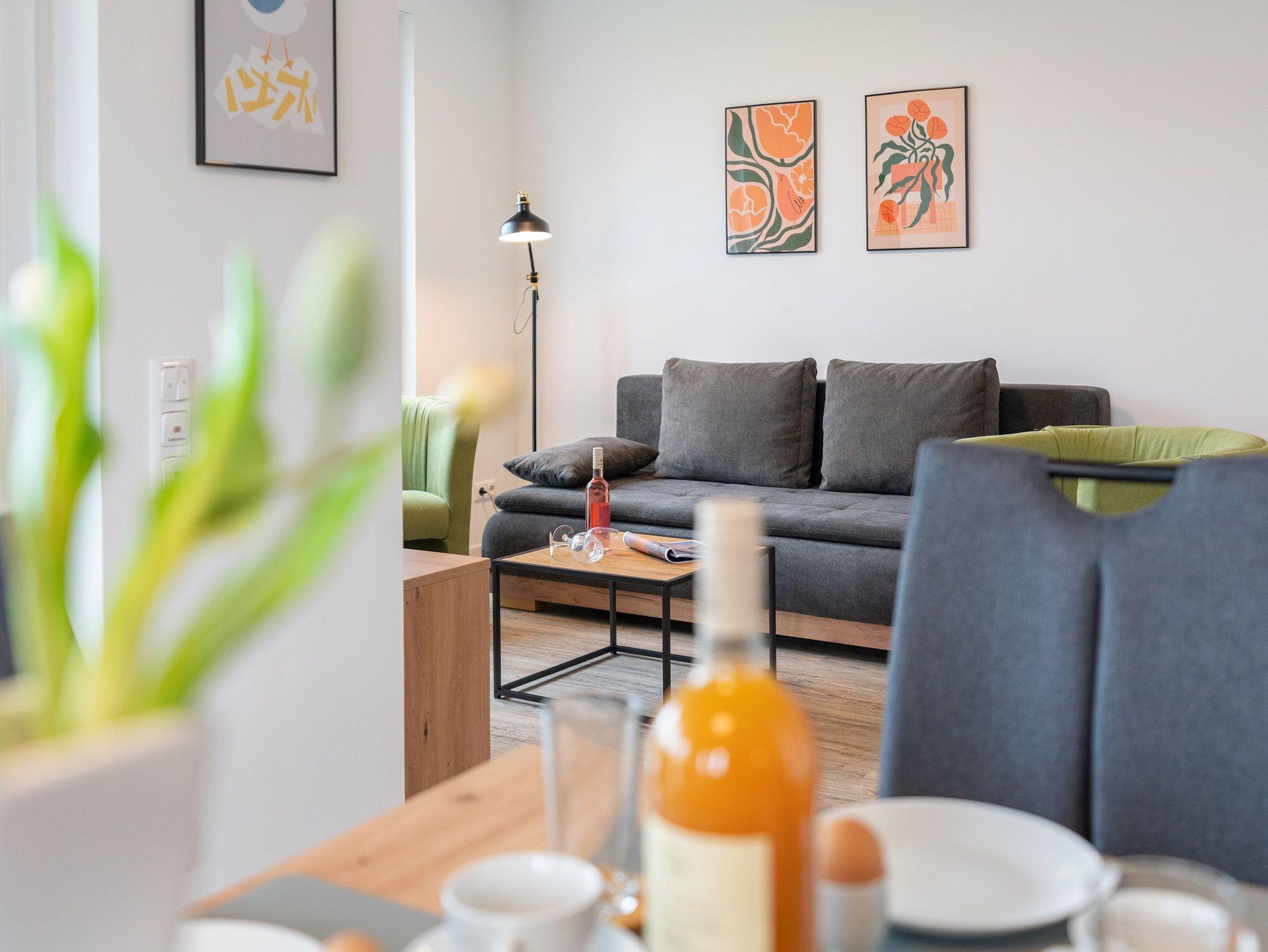 Auf einer Wohnfläche von 87 m² finden fünf Erwachsene und ein Kind bis 14 Jahre in dieser modern eingerichteten Ferienwohnung ausreichend Platz für einen entspannten Urlaub am Stettiner Haff auf Usedom.