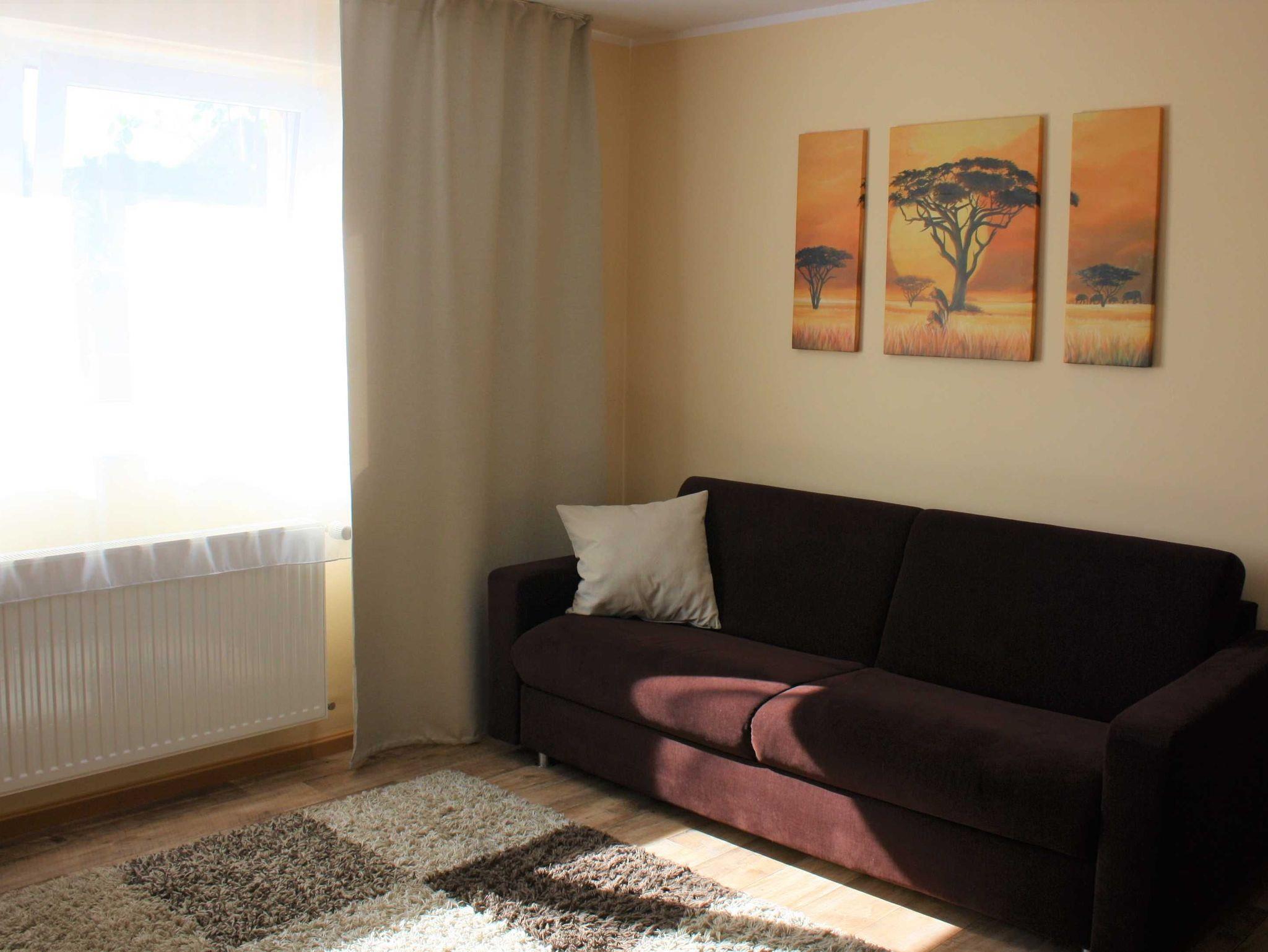 Die Wohnung besteht aus einer voll ausgestatteten Küche, einem Schlafzimmer mit einem großem Bett (200 x 200 cm) und einem neu renovierten Bad mit Dusche.