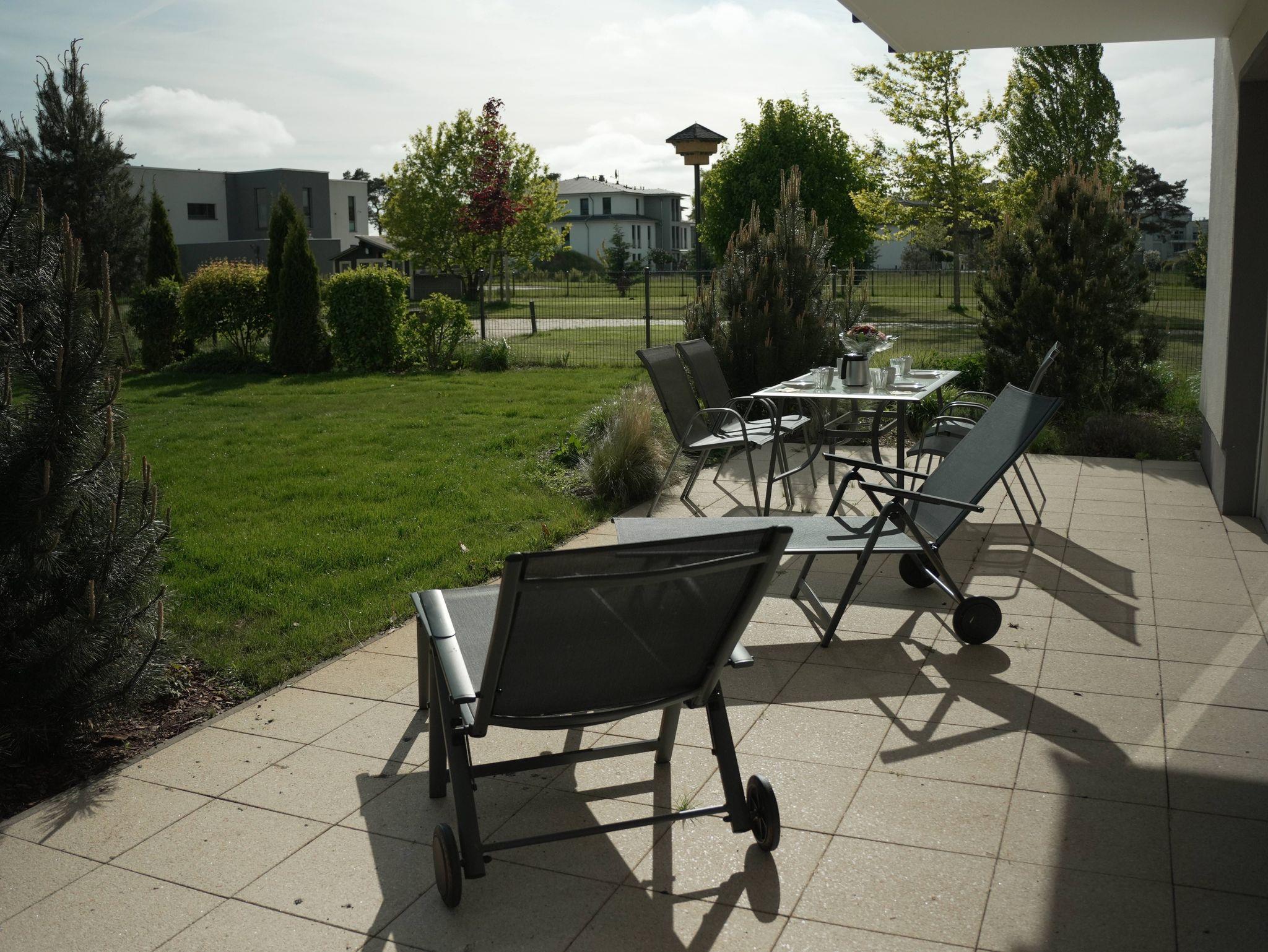 Großzügige Ferienwohnung am Stettiner Haff mit Seeblick, Terrasse und Greenfee-Ermäßigungen für Golfliebhaber.