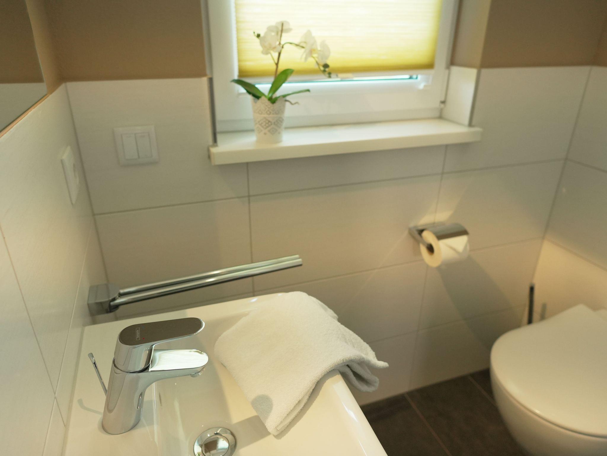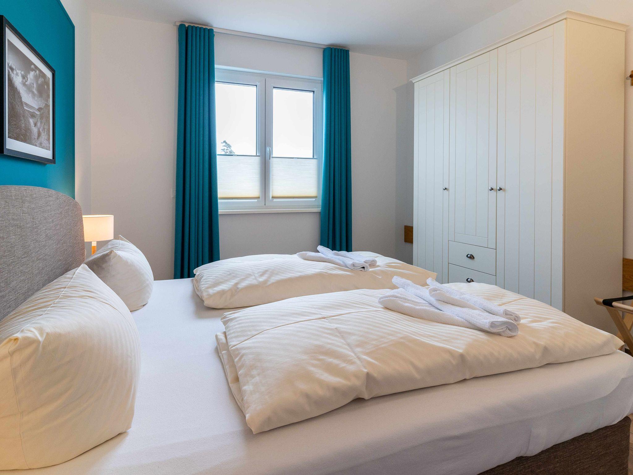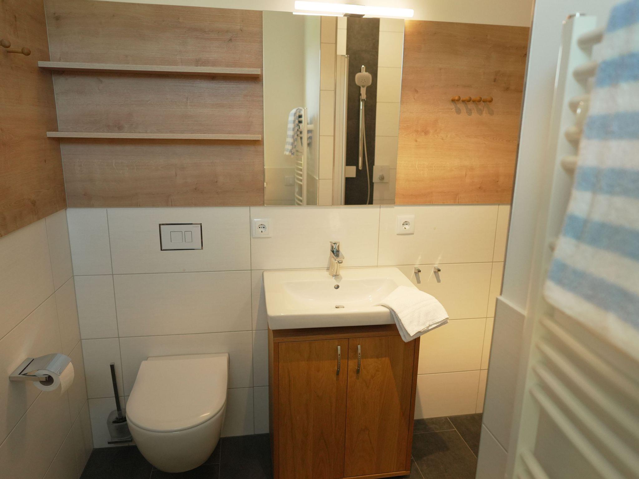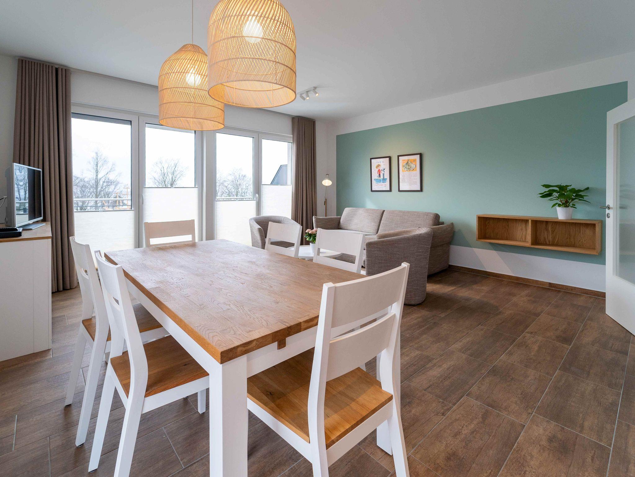 Unsere Ferienwohnung ist großzügig geschnitten und für bis zu 6 Personen geeignet, 1. OG, 80 qm, 2 Schlafzimmer zzgl. Schlafcoach im Wohnzimmer, 2 Balkone, 2 Bäder, Küche