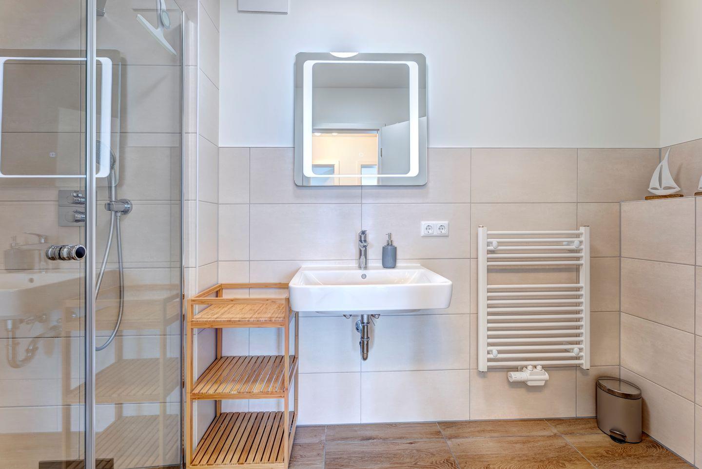 Beide Badezimmer sind modern und elegant gestaltet und bieten mit geräumigen Duschen sowie allen notwendigen Annehmlichkeiten höchsten Komfort.