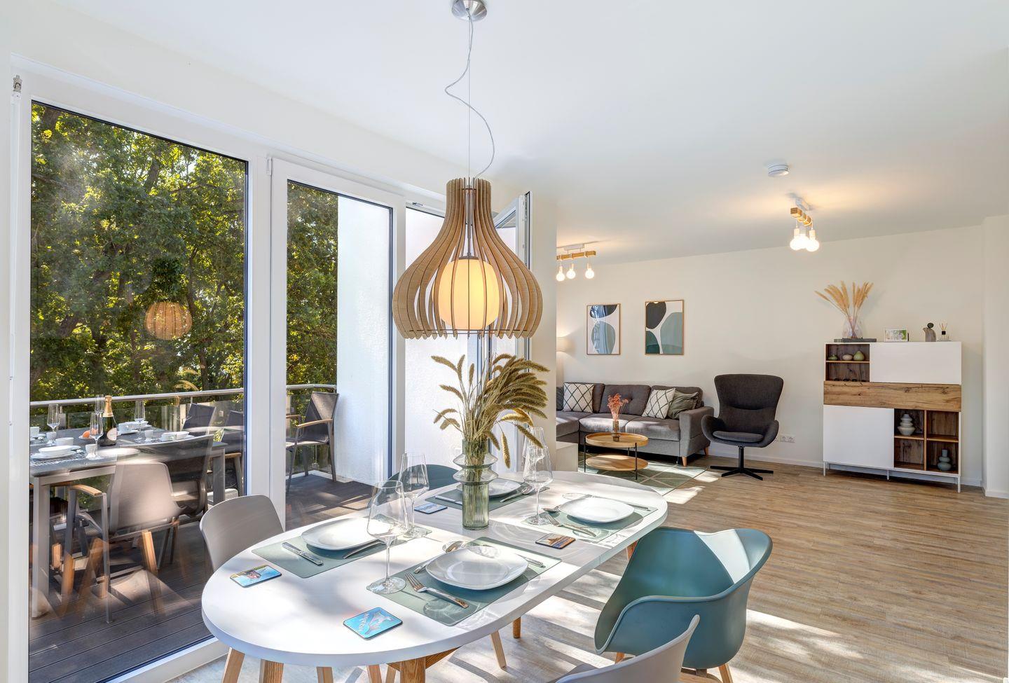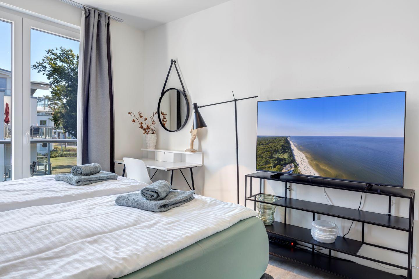 Moderne Ferienwohnung auf Usedom mit Sauna, Balkon und herrlichem Haffblick für erholsame Tage in der Natur.