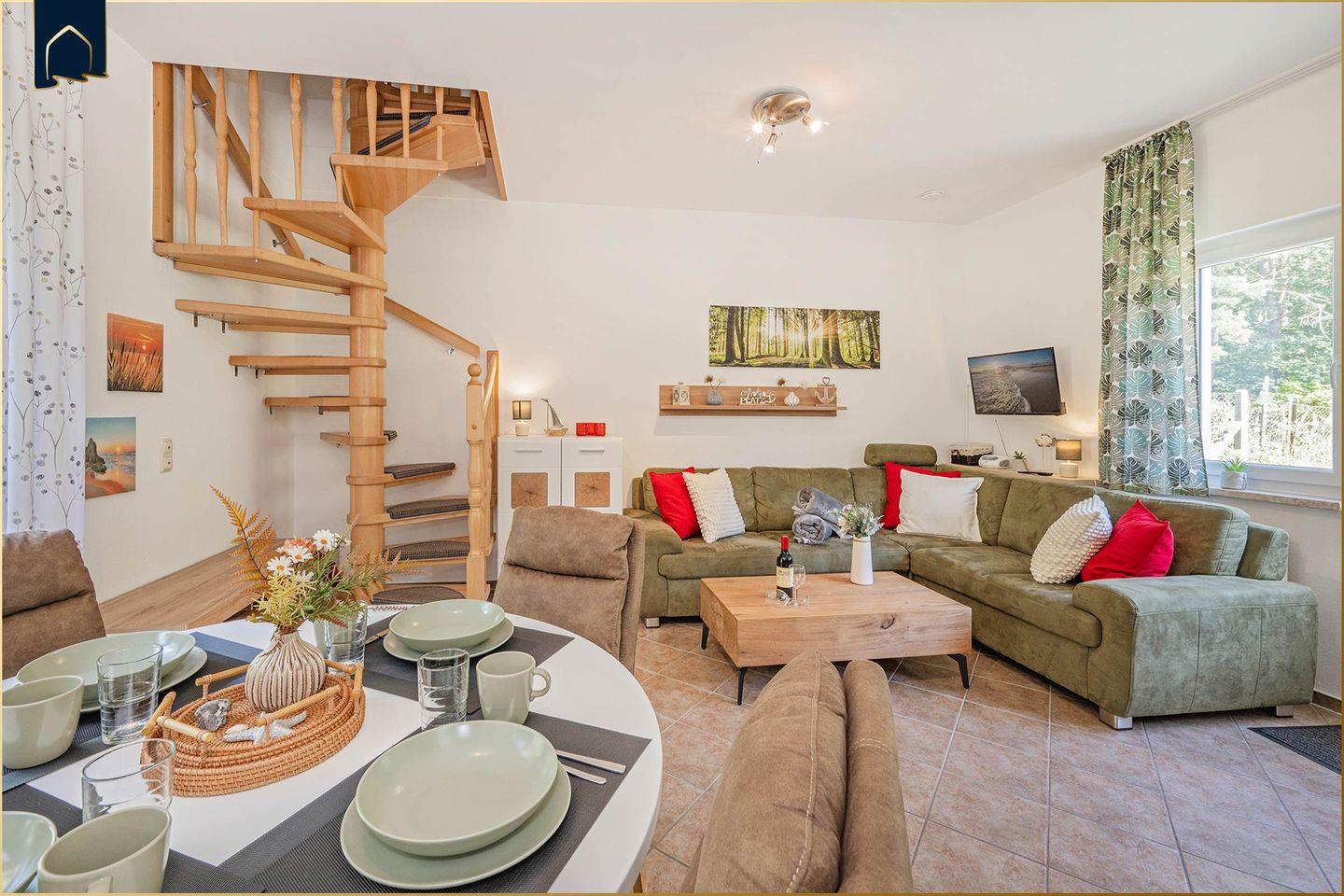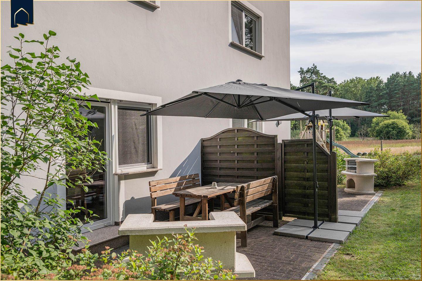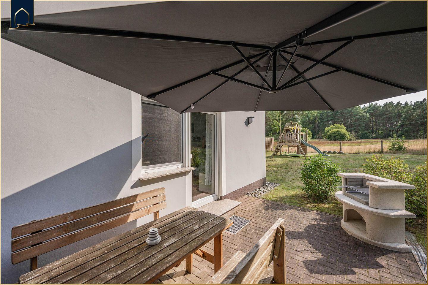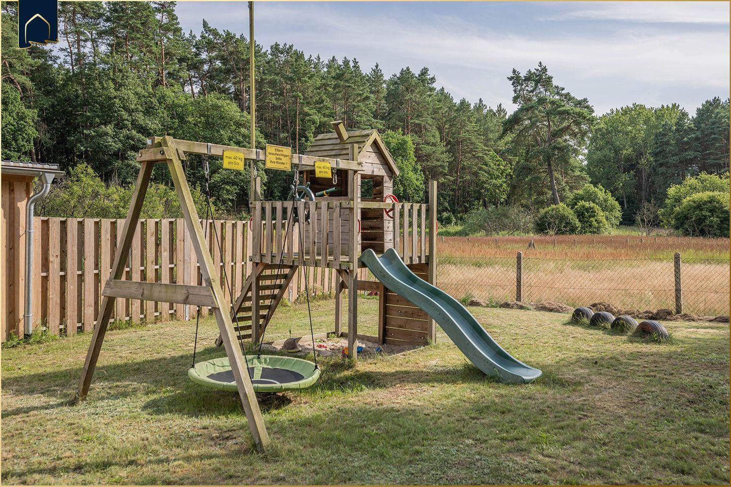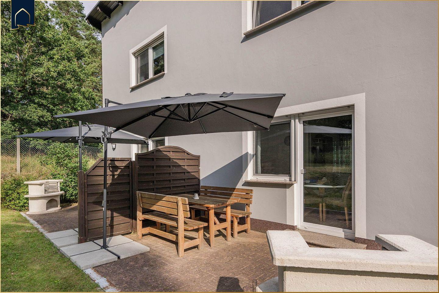 Diese charmante Ferienwohnung bietet auf 71 m² Wohnfläche Platz für bis zu vier Personen und ist ideal für Familien, Paare oder Urlaub mit Hund. Gelegen in einem abgeschlossenen Grundstück am Waldrand, genießen Gäste hier absolute Ruhe und naturnahe Erholung. Ein gepflegter Garten mit möblierter Terrasse, Liegewiese, Sonnenschirm und Grill lädt zu entspannten Stunden im Freien ein. Für Abwechslung sorgt ein Spielplatz direkt auf dem Grundstück – ideal für kleine Gäste.