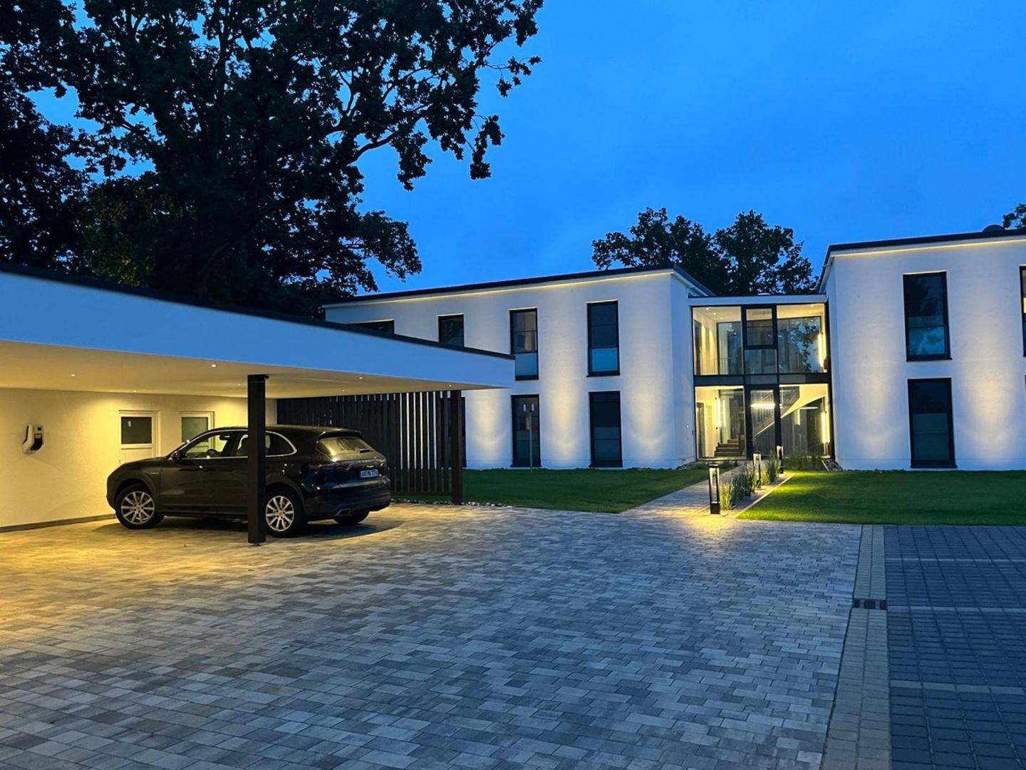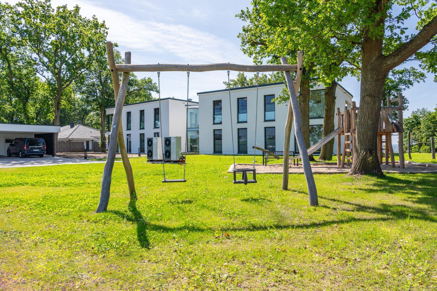 Die stilvoll eingerichtete Wohnung gehört zum "DECK9 am Haff", einem architektonisch markanten Ensemble mit nur vier Wohneinheiten – eingebettet in ein weitläufiges Naturgrundstück mit über 8.000?m² Fläche.