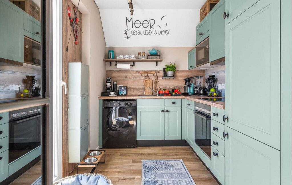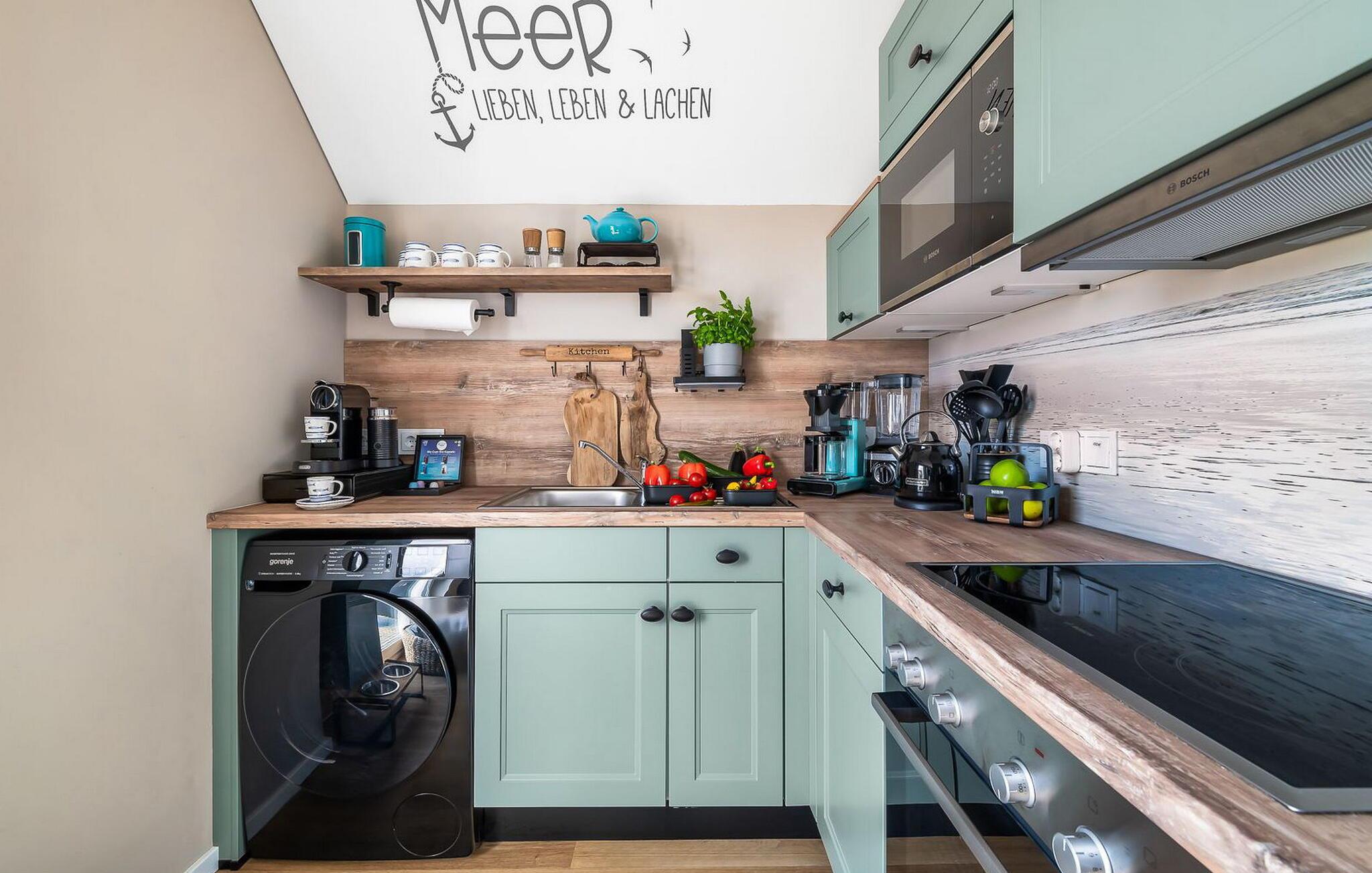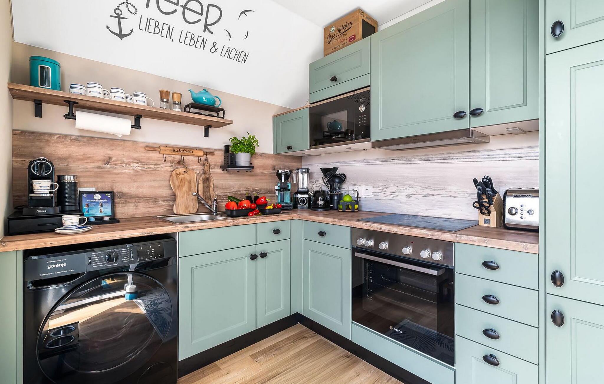 In der farblich abgestimmten Küche mit Markengeräten finden Hobbyköche alles, was ihr für kulinarische Ausflüge benötigt.