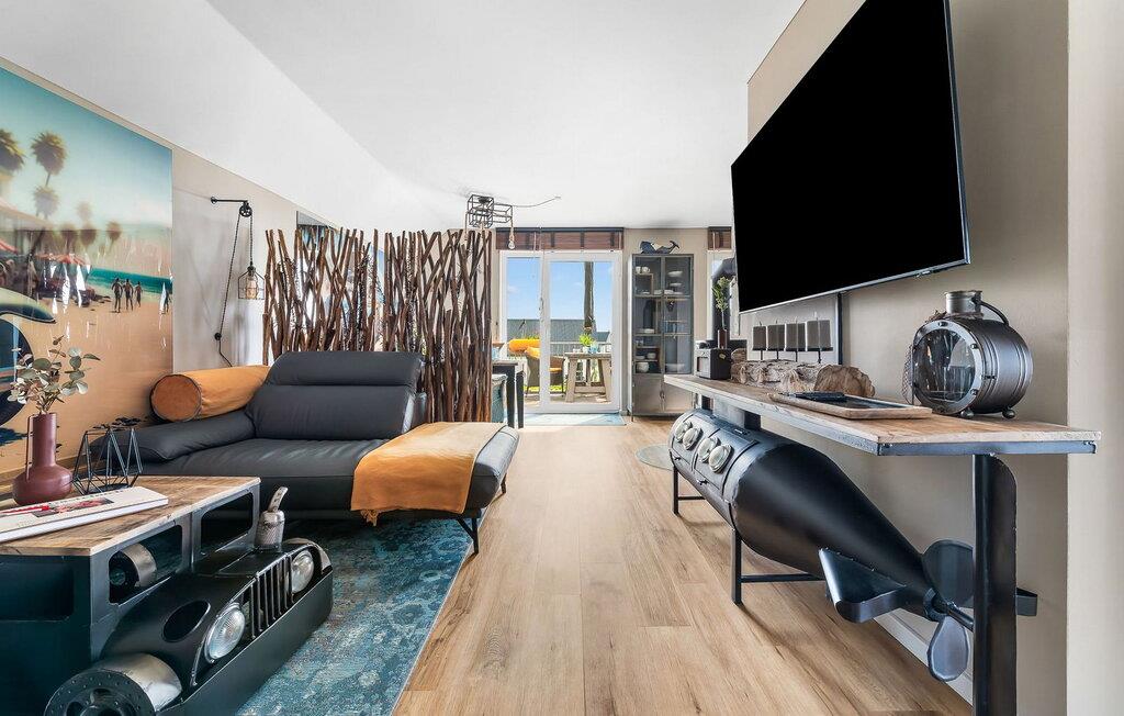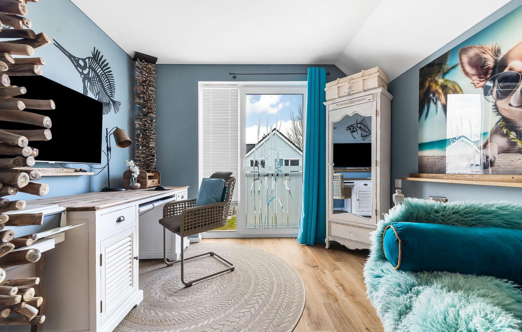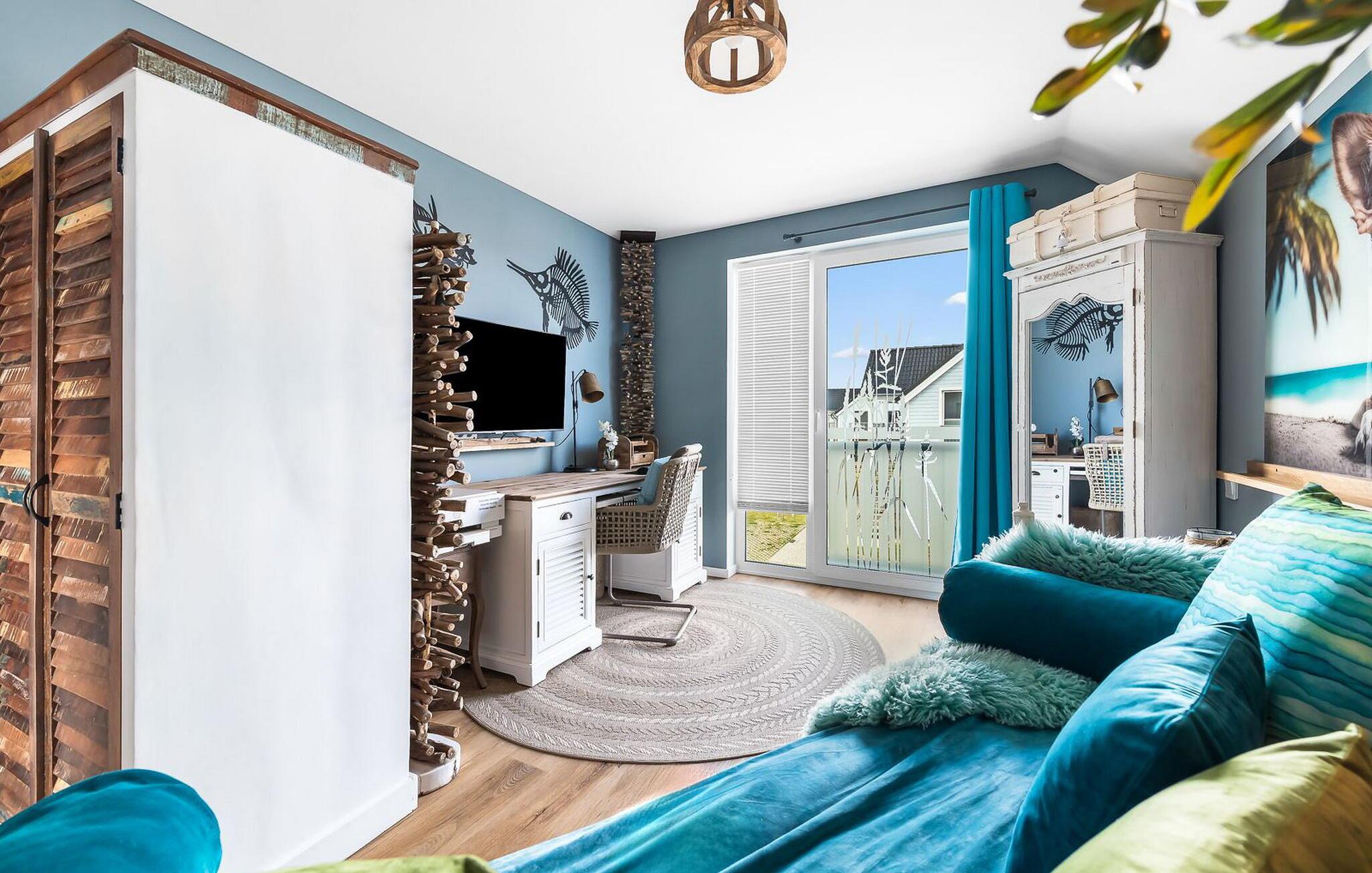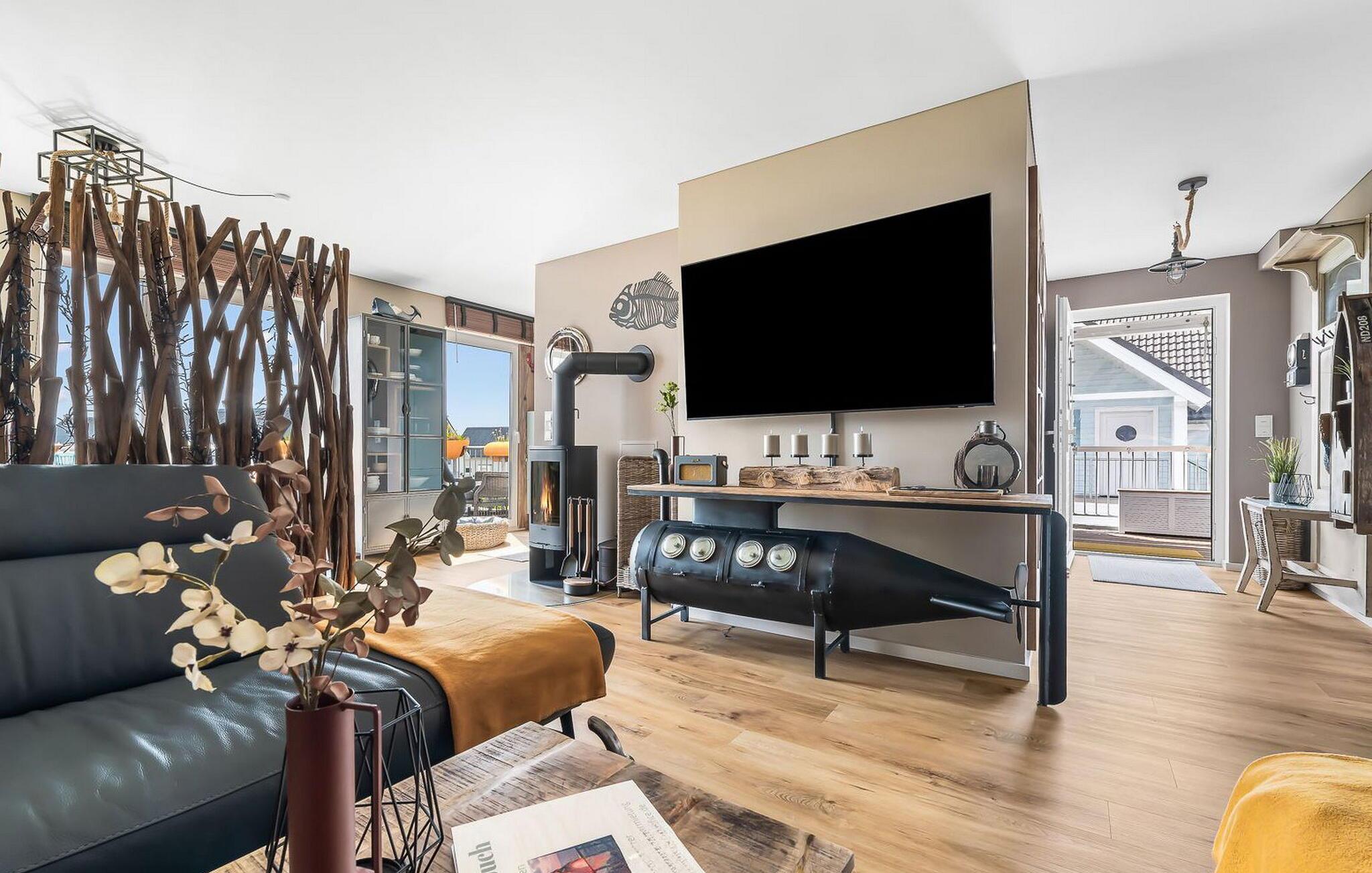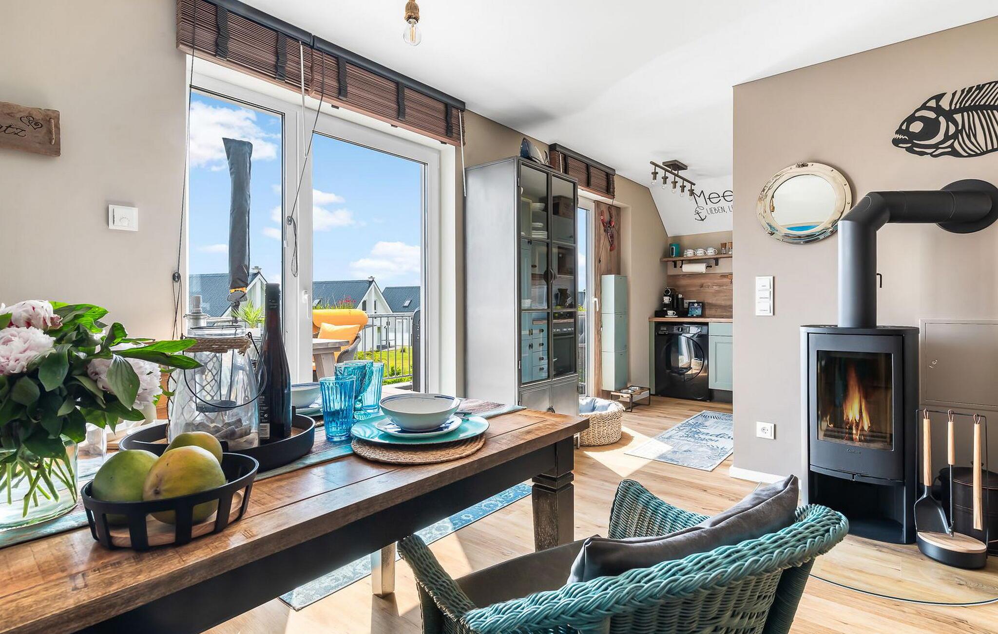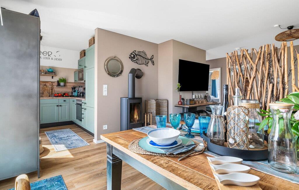 Moderne Ferienwohnung im OstseeResort Olpenitz mit Sauna, Kamin und Balkon, ideal für Workation und Urlaub am Meer.
