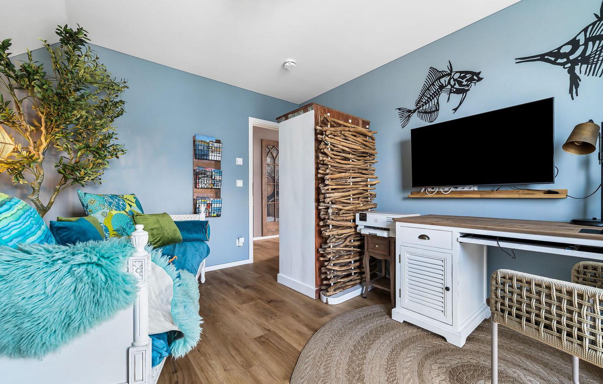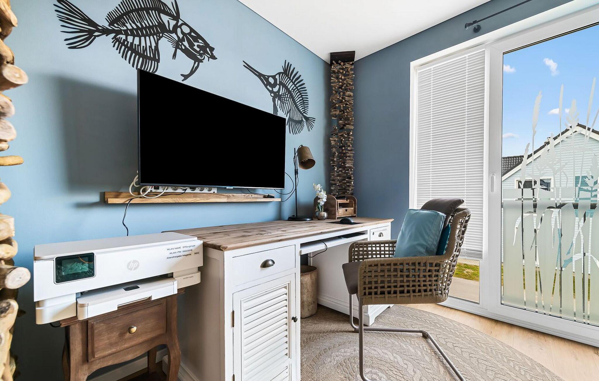 Genießt hier eine Workation, die perfekte Verbindung aus Arbeit und Urlaub. Es erwartet euch ein Zimmer, in dem die WORKLIFE Balance großgeschrieben wird. Hier findet ihr alles für effizientes Arbeiten: einen Schreibtisch mit Büroausstattung, schnelles WLAN und einen Drucker. Wenn ihr möchtet, wird der Fernseher zum zweiten Bildschirm für euren Laptop. So könnt ihr gemütlich von der Couch aus an euren Meetings teilnehmen.