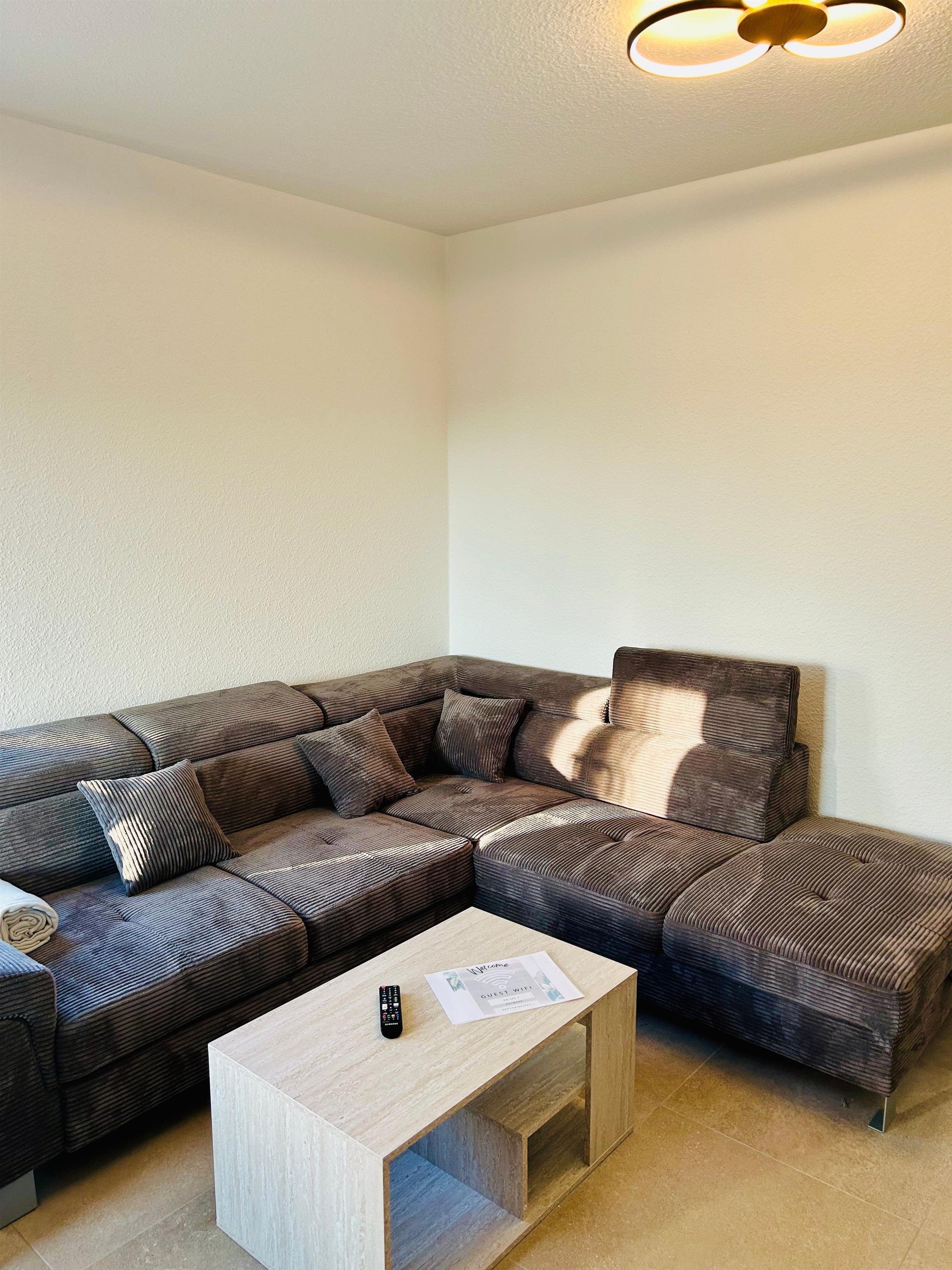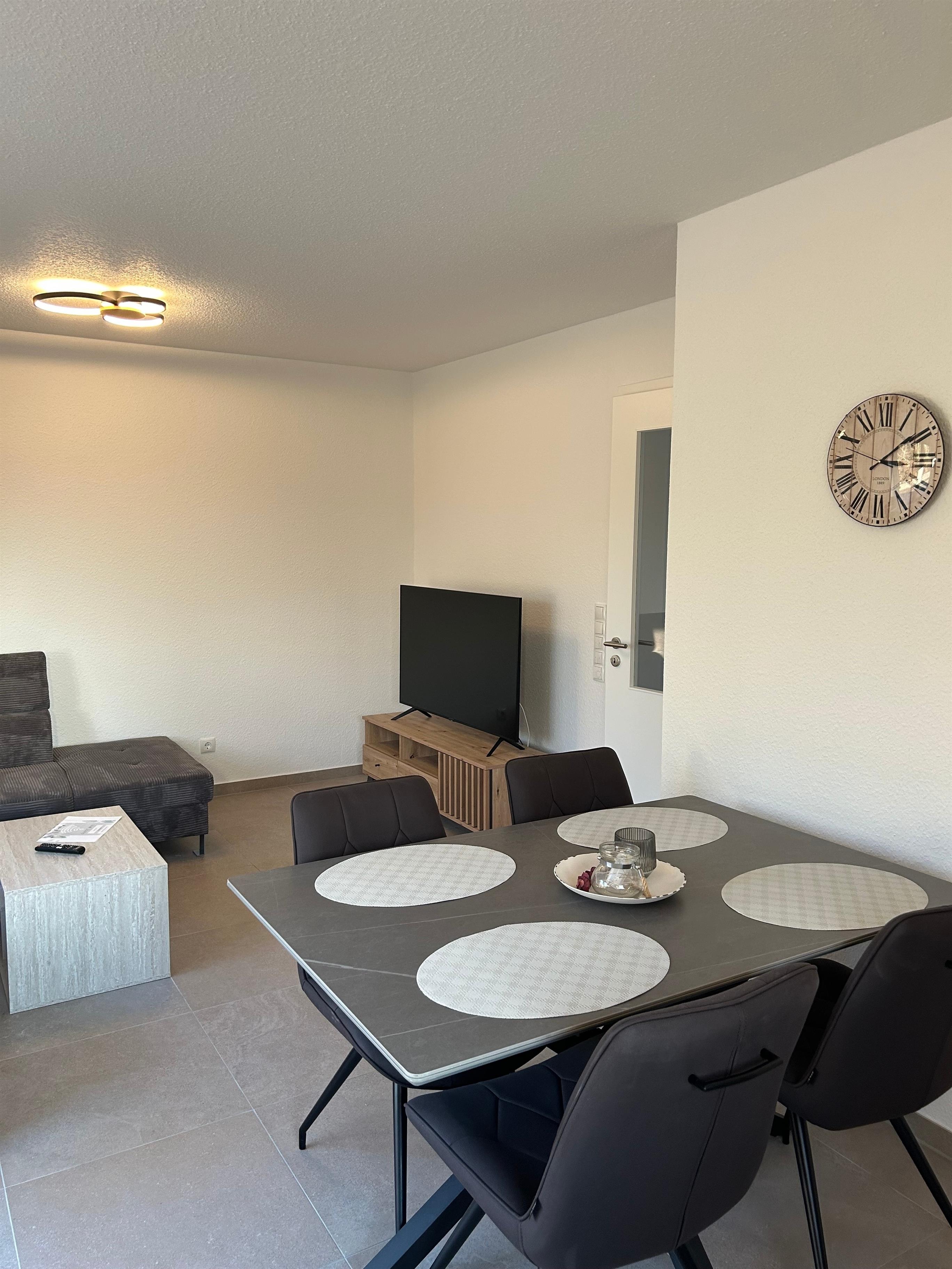 Dazu stehen großzügige ca. 90 m² mit viel Licht und Raum auf zwei Ebenen bereit. Ein Schlafraum mit Doppelbett, ein Schlafraum mit 2 Einzelbetten, zwei Schlafräume mit jeweils einem Einzelbett, zwei Bäder mit Duschbad, eine separate, vollständig ausgestattete Küche (Herd, Backofen, Spülmaschine, Mikrowellenherd), Wohn- und Esszimmer stehen zur Verfügung. Jedes der Schlafzimmer ist mit einem TV ausgestattet. Wenn es einmal frisch wird, sorgt die Fußbodenheizung im gesamten Wohnbereich und vor allem im Bad für angenehme Wärme.