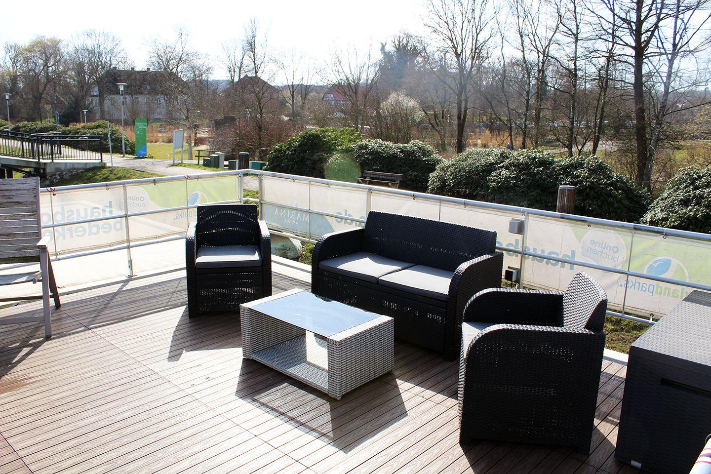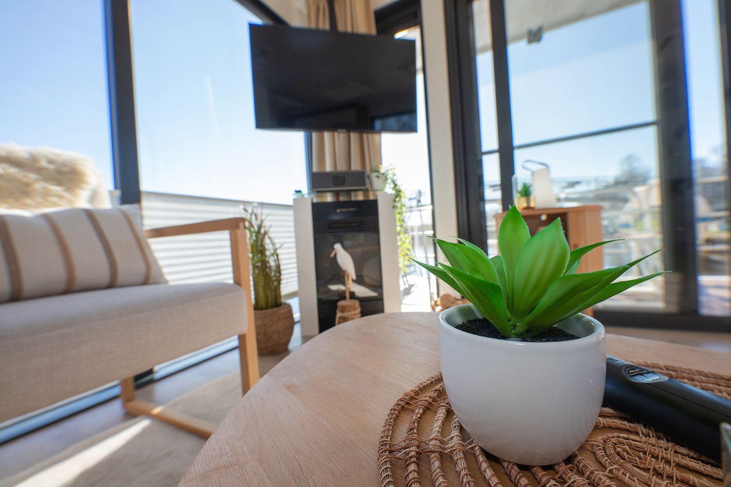 Hausboot 1 See-Treff. Festverankert und mit Panoramablick.