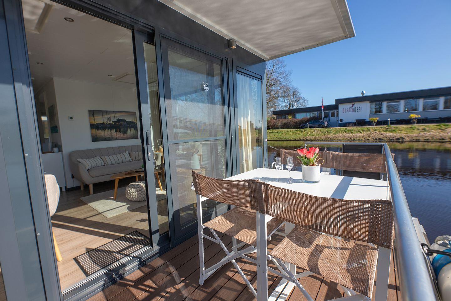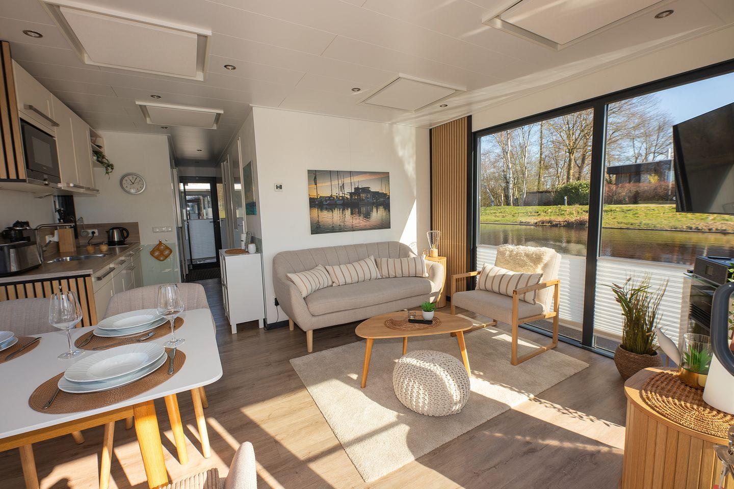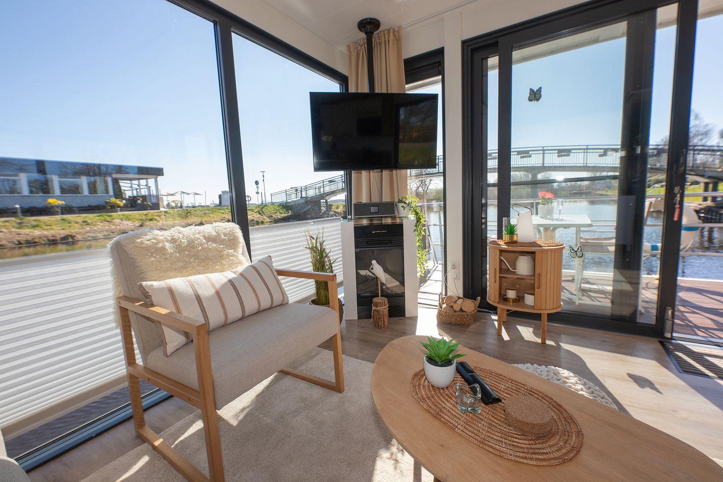 Erleben Sie erholsamen Urlaub auf dem fest verankerten Hausboot mit Panoramablick in Bad Bederkesa.