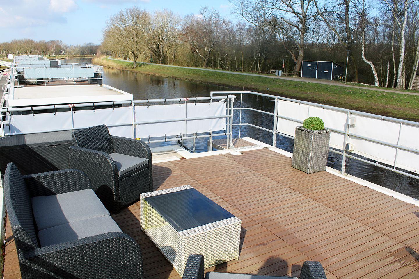 Urlaub auf dem festliegenden Hausboot, ganz ohne Bootsführerschein.