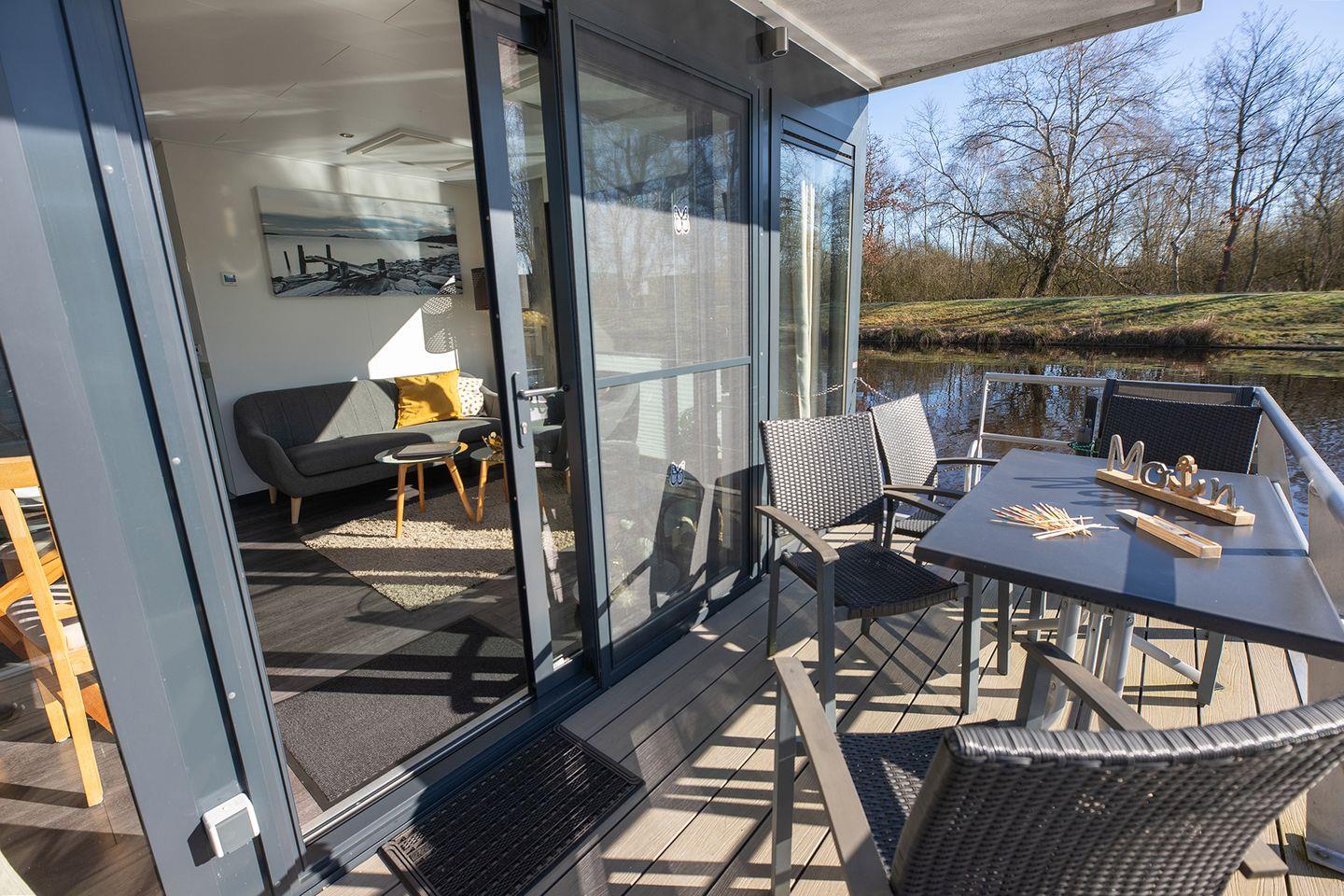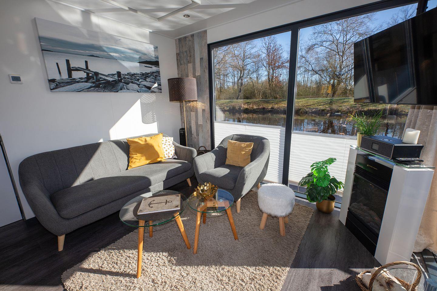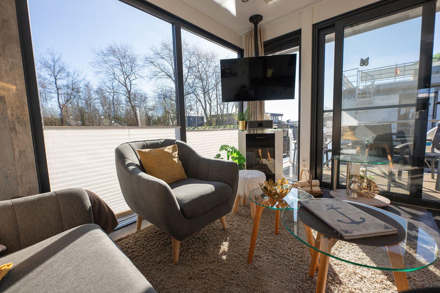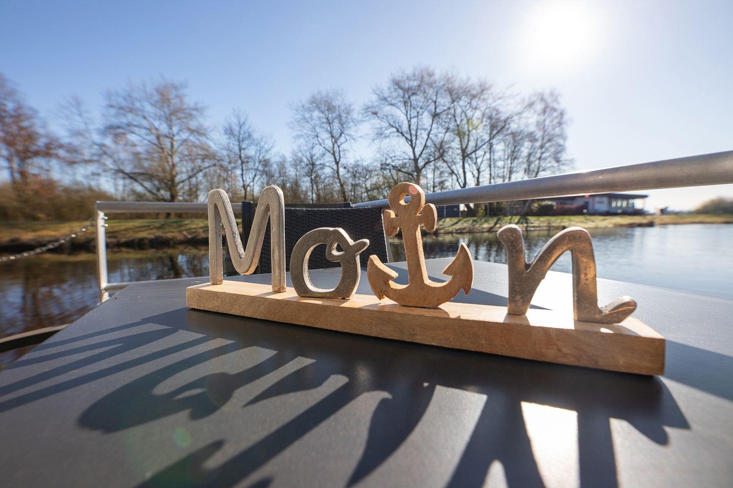 Erleben Sie erholsamen Urlaub auf dem ruhigen, komfortablen Hausboot 5 Seekönig in Bad Bederkesa mit Kamin und Dachterrasse.
