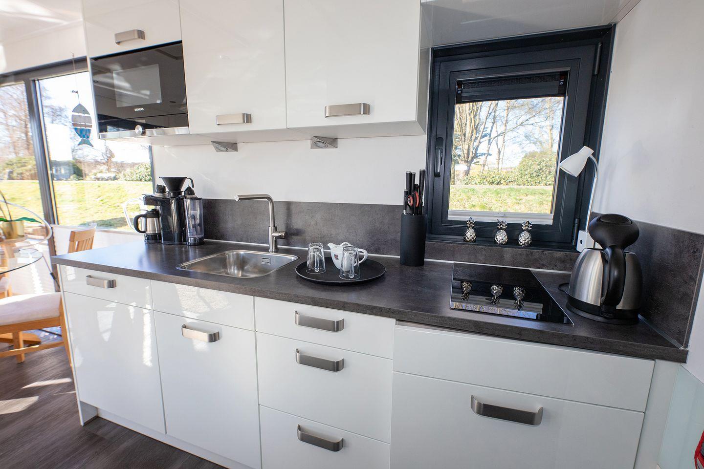 In Bad Bederkesa liegt unser schwimmendes Ferienhaus ruhig verankert in der Marina am See. Mit 50?m² Wohnfläche, zwei Schlafzimmern, voll ausgestatteter Küche, Kaminofen und großer Dachterrasse bietet es alles für einen entspannten Aufenthalt auf dem Wasser.