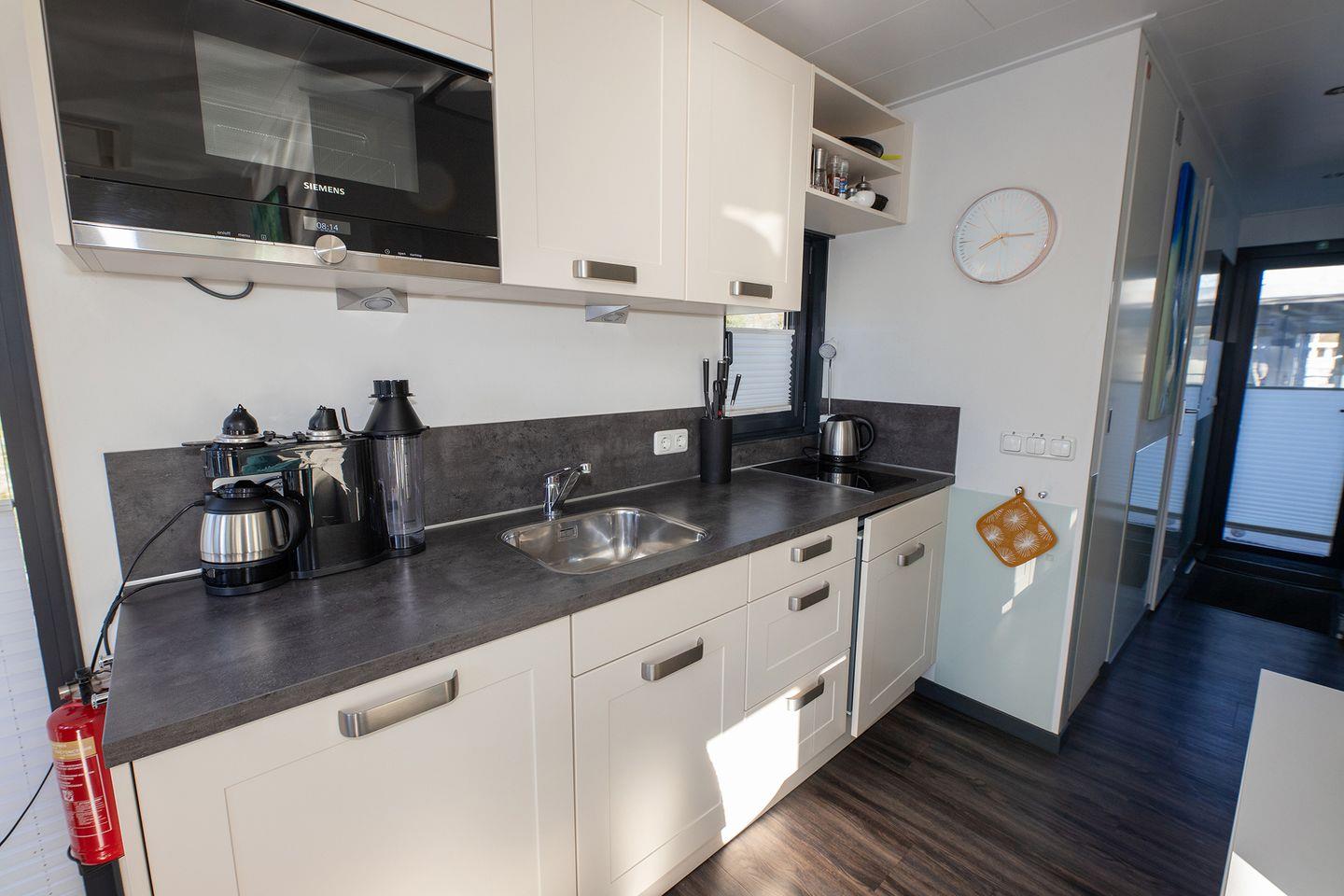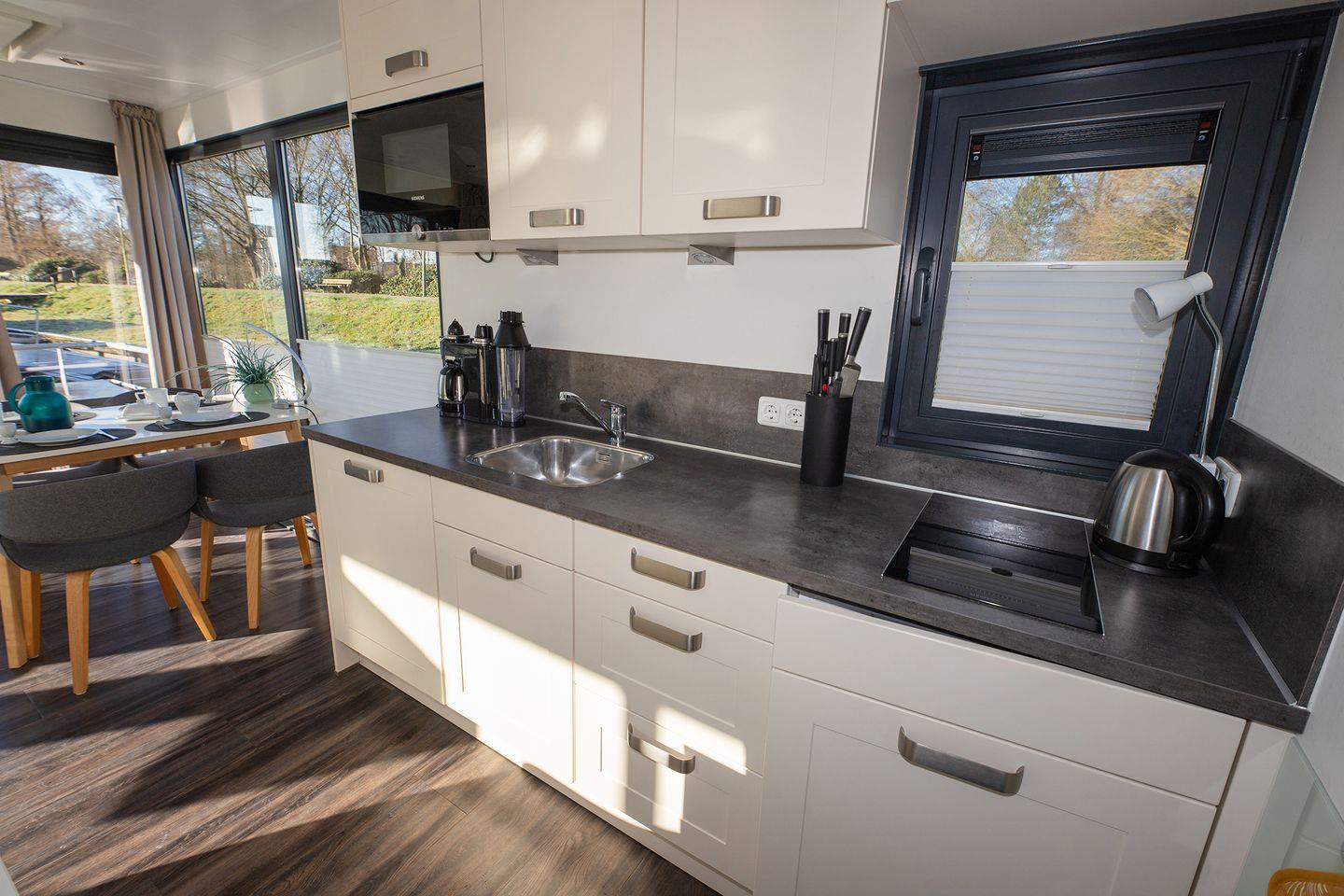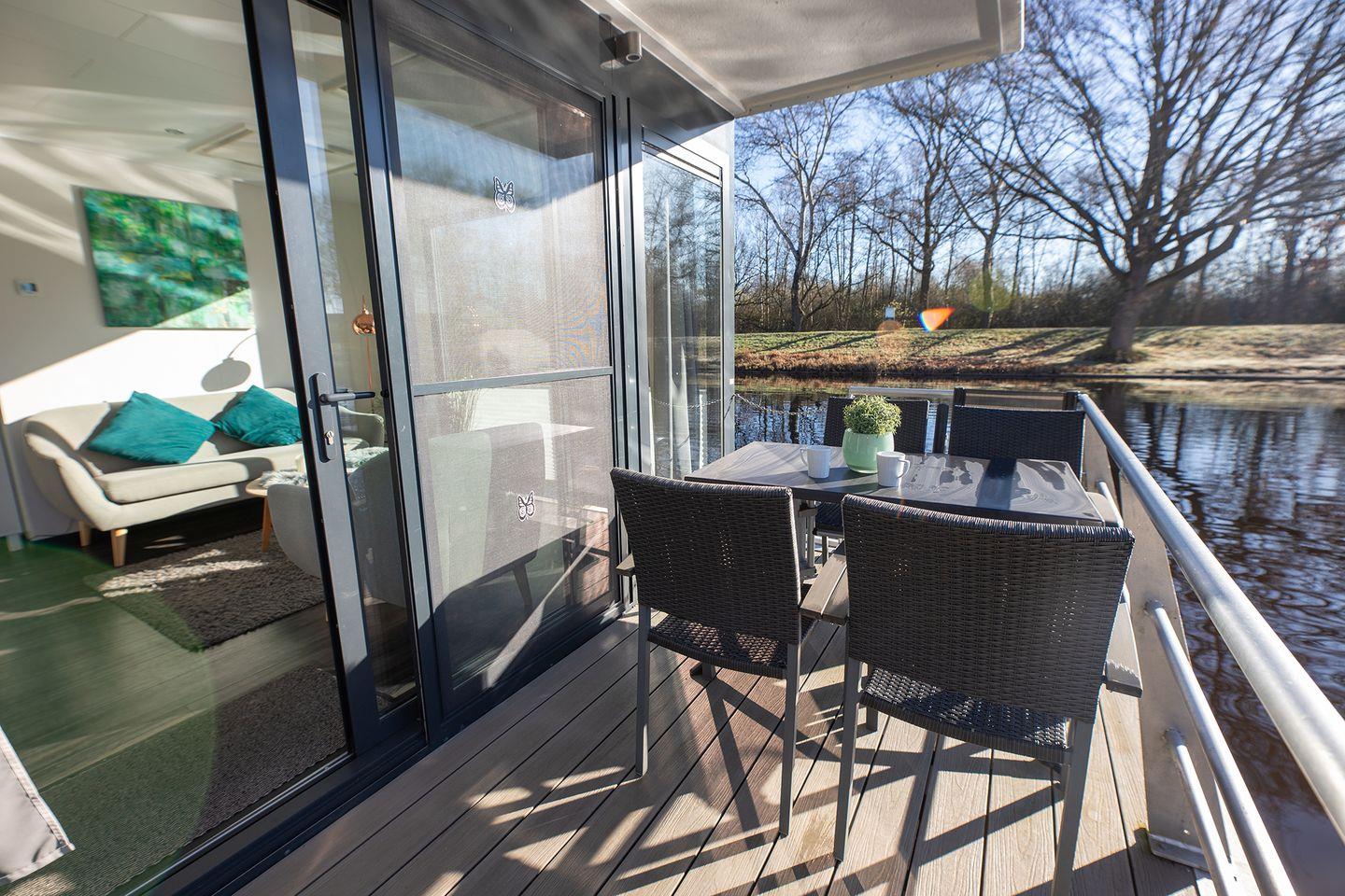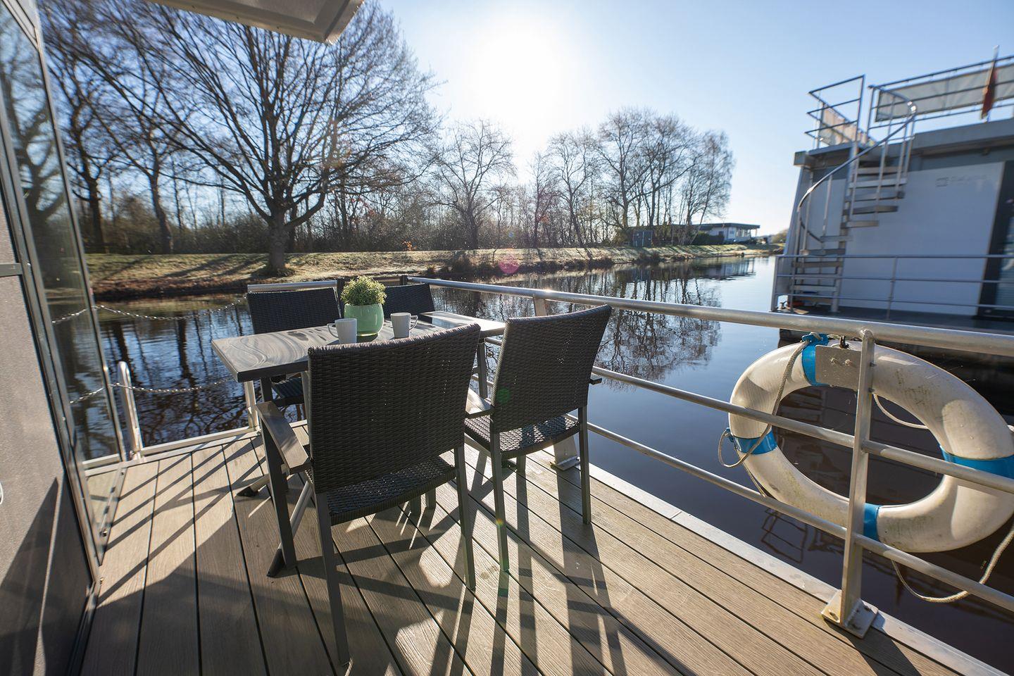 Entdecken Sie das charmante Hausboot 7 Seestern mit Kamin, Dachterrasse und Seeblick in ruhiger Marina in Bad Bederkesa.
