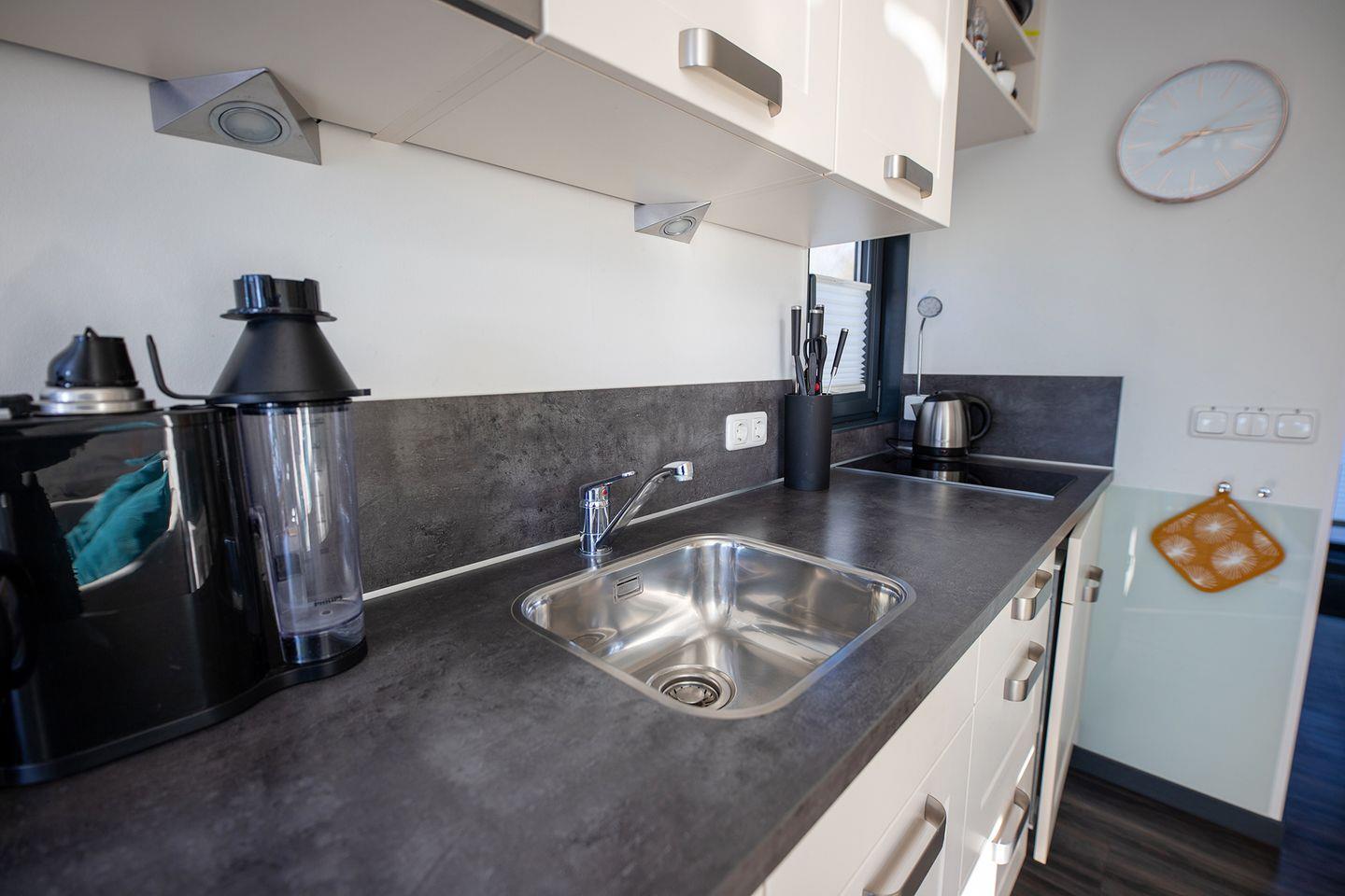In Bad Bederkesa liegt unser schwimmendes Ferienhaus ruhig verankert in der Marina am See. Mit 50?m² Wohnfläche, zwei Schlafzimmern, voll ausgestatteter Küche, Kaminofen und großer Dachterrasse bietet es alles für einen entspannten Aufenthalt auf dem Wasser.