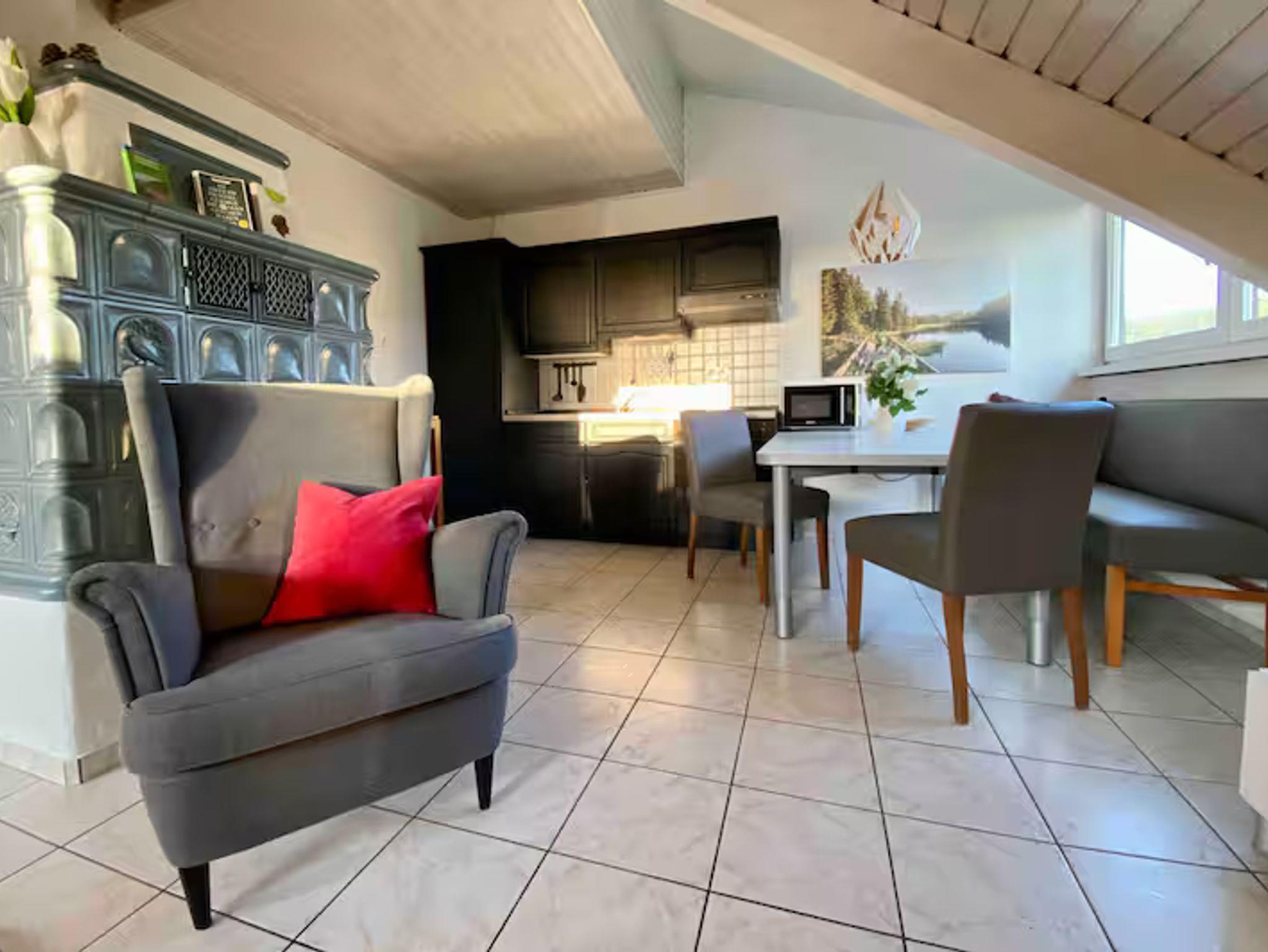 Euer Apartment Anni liegt idyllisch am Dorfesrand im Fichtelgebirge und bietet eine ruhige Auszeit inmitten der Natur. Von hier aus könnt ihr direkt mit dem Mountainbike starten oder die umliegenden Wanderwege erkunden. Der großzügige Südbalkon lädt mit Liegestühlen zum Entspannen und Träumen ein, während ihr den Blick über den schönen Garten und das weite Tal genießt. Das Apartment ist ideal für Paare, Freunde und Familien, die fernab vom Alltag gemeinsame Zeit verbringen möchten. Kuschelige Abende vor dem Kachelofen oder laue Sommernächte auf dem Balkon mit fantastischen Sonnenuntergängen machen euren Aufenthalt unvergesslich. Die Ausstattung umfasst ein Schlafzimmer mit Doppelbett (inkl. frische Bettwäsche und Handtücher), einen Wohnbereich mit zwei Schlafcouches und einem Smart TV, eine kleine Wohnküche sowie ein kleines Badezimmer mit Dusche und WC. Die Fußbodenheizung sorgt für Gemütlichkeit und schnelles WLAN ist ebenfalls verfügbar.