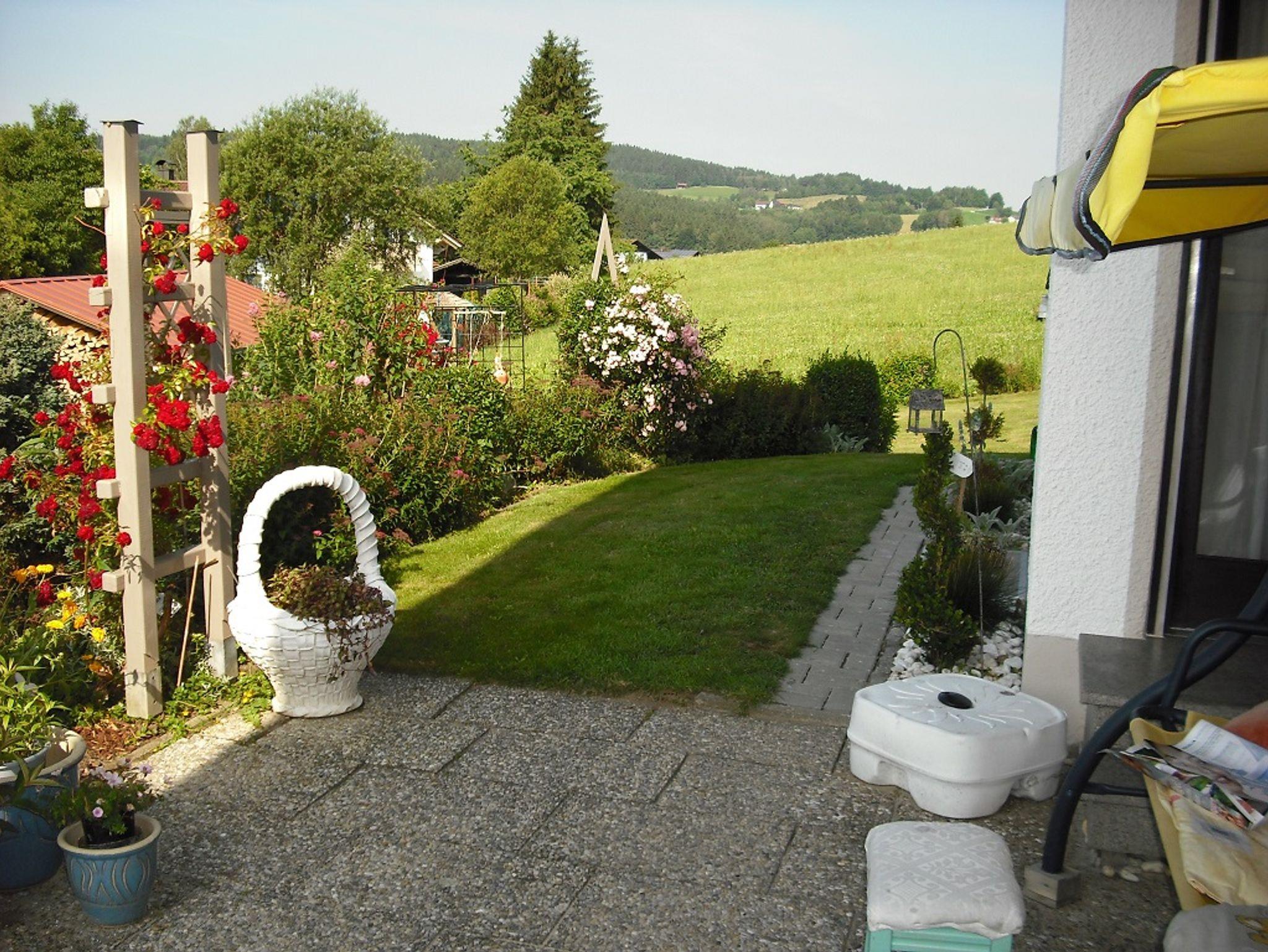 Die Lage in der ersten Etage und ein Balkon bieten einen herrlichen Blick über unseren schönen Bayerischen Wald.