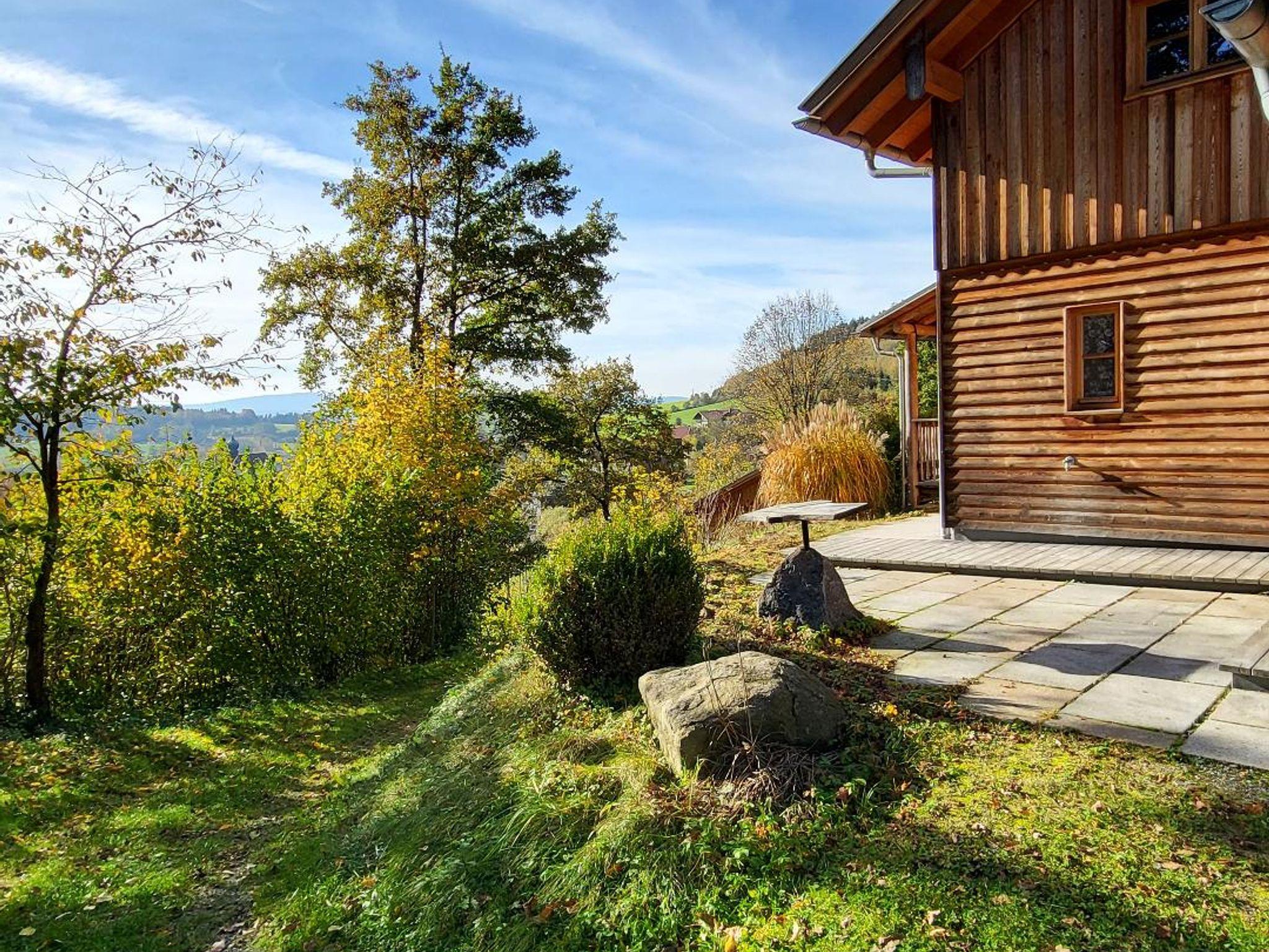 Das Chalet am Wald bietet Platz für fünf Personen. In dem 85 qm großen Ferienhaus mit eigener Sauna genießen Sie den Panoramablick über unser kleines Dorf hinweg in die Berge und den Sonnenuntergang.